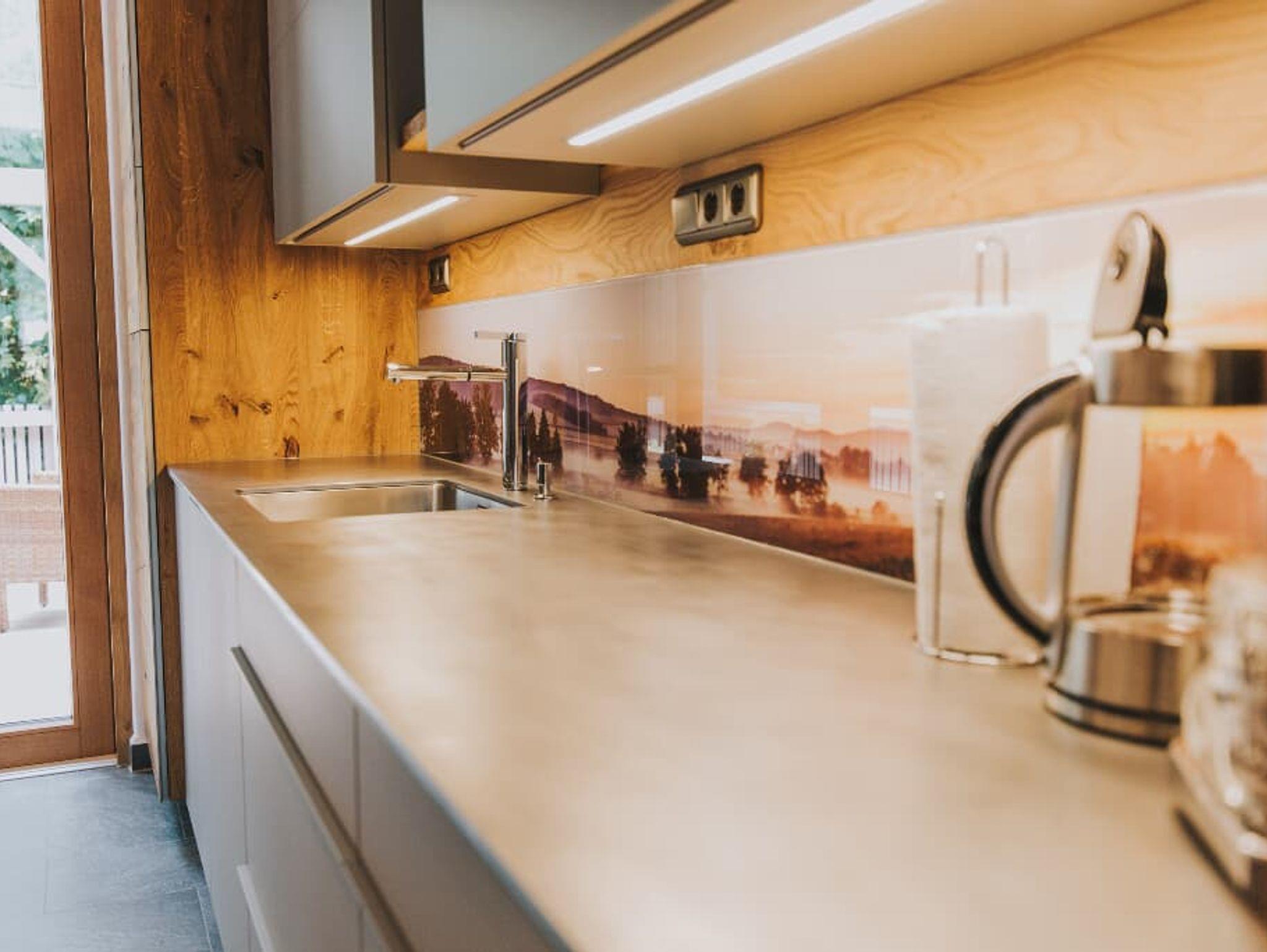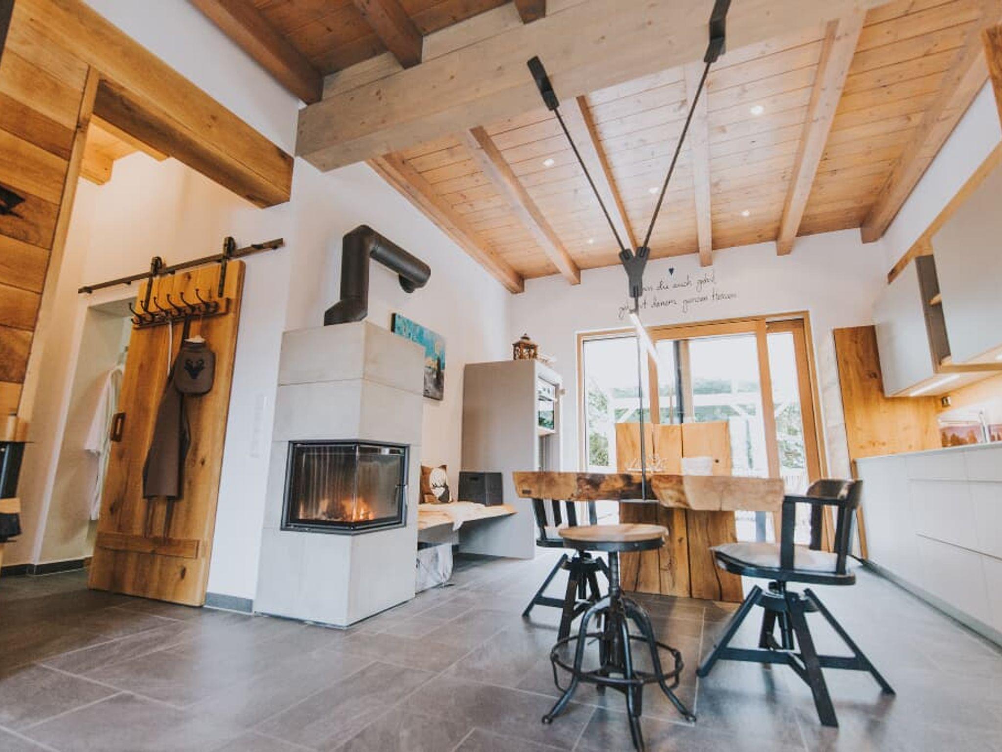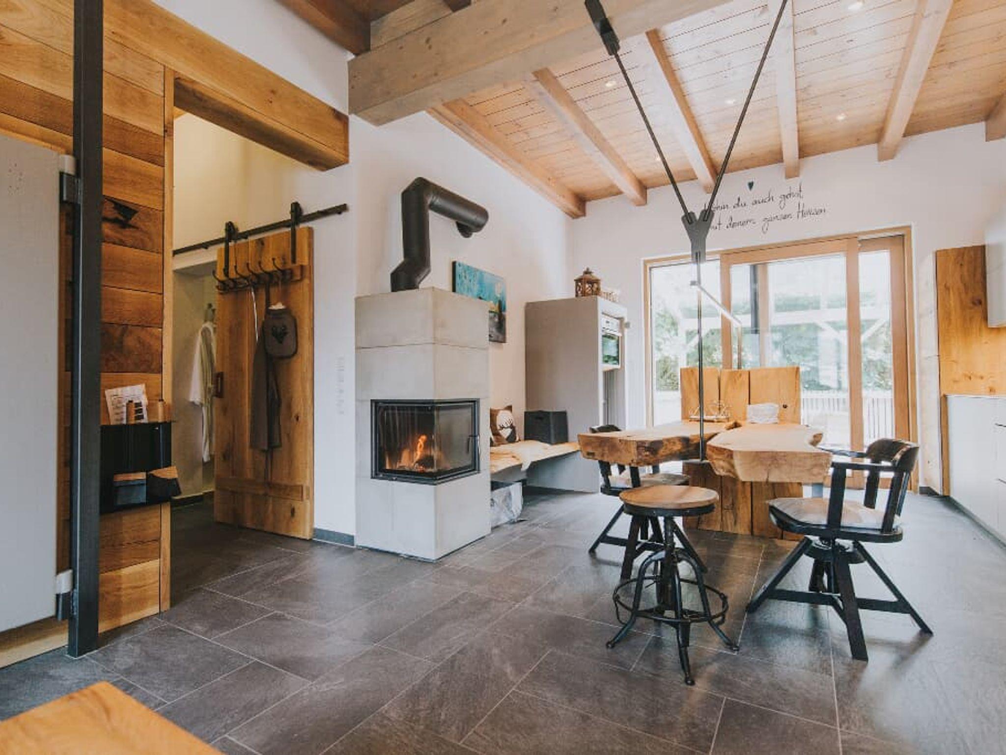 Luxus-Chalet am Fluss mit ca. 75 qm Wohlfühlfläche ganz für Ihre Zweisamkeit. Das Chalet bietet Platz für 2 Personen (+ Kleinkind). Das gemütliche Wohnzimmer mit Flachbild-TV und Kaminofen lädt zum Verweilen ein. Die komplett ausgestattete Küche mit Geschirrspüler, Kühlschrank incl. Gefrierfach, Induktionsherd mit Bora-Dunstabzug (Kochinsel), hocheingebautem Backofen, Mikrowelle, Wasserkocher, Eierkocher, Toaster, Pürierstab, Küchenwaage, Senseo-Pad-Maschine lässt keine Wünsche offen.