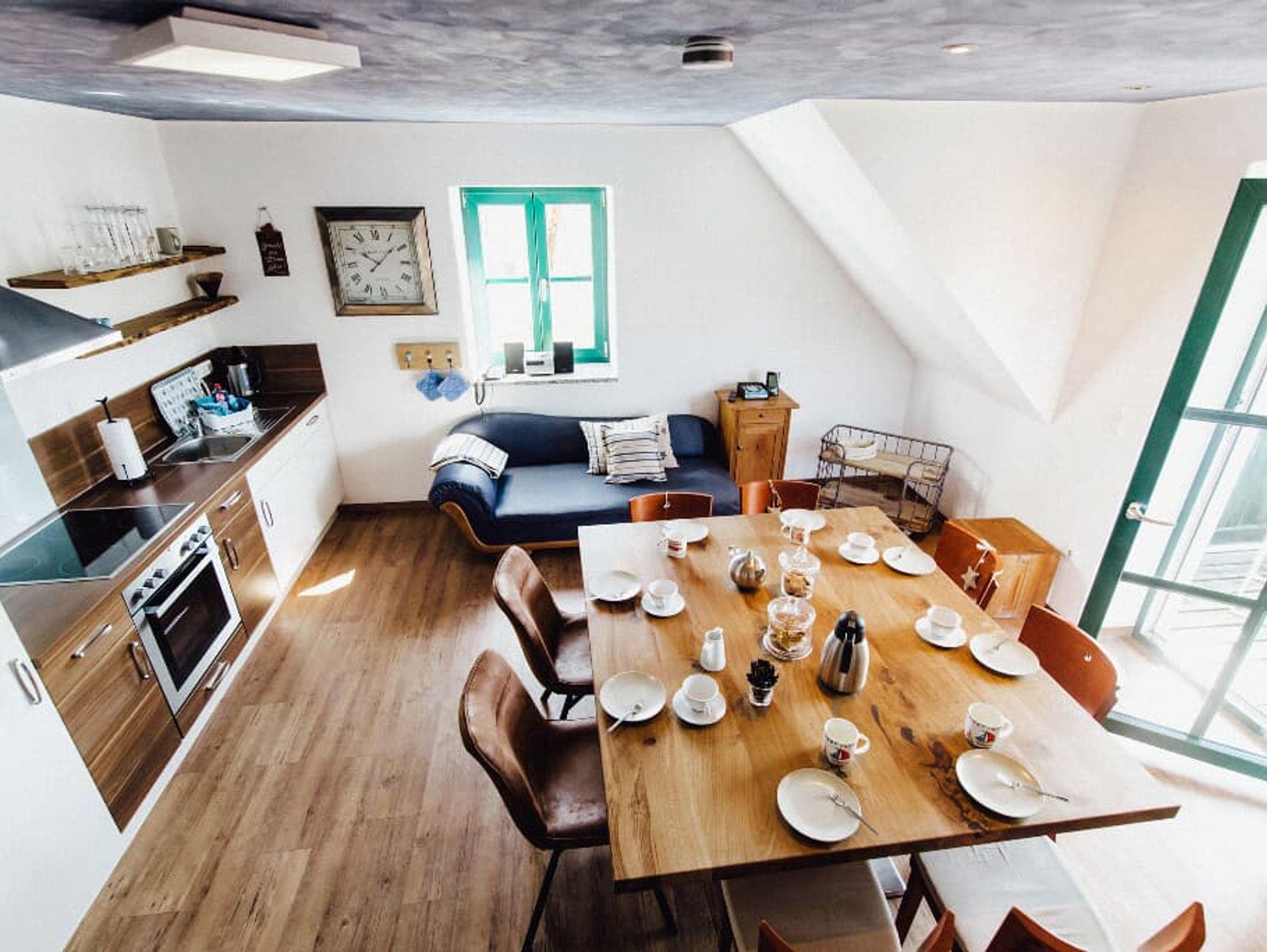 Das WLAN und den Parkplatz vor dem Haus können Sie kostenfrei nutzen. Die Wohnung befindet sich im 2. Obergeschoß. Sie ist hochwertig eingerichtet mit heimischen Hölzern und auf das alte Mühlenanwesen abgestimmt. Die teilweise moderne Einrichtung harmonisiert mit dem Charm des alten Bauernhauses.