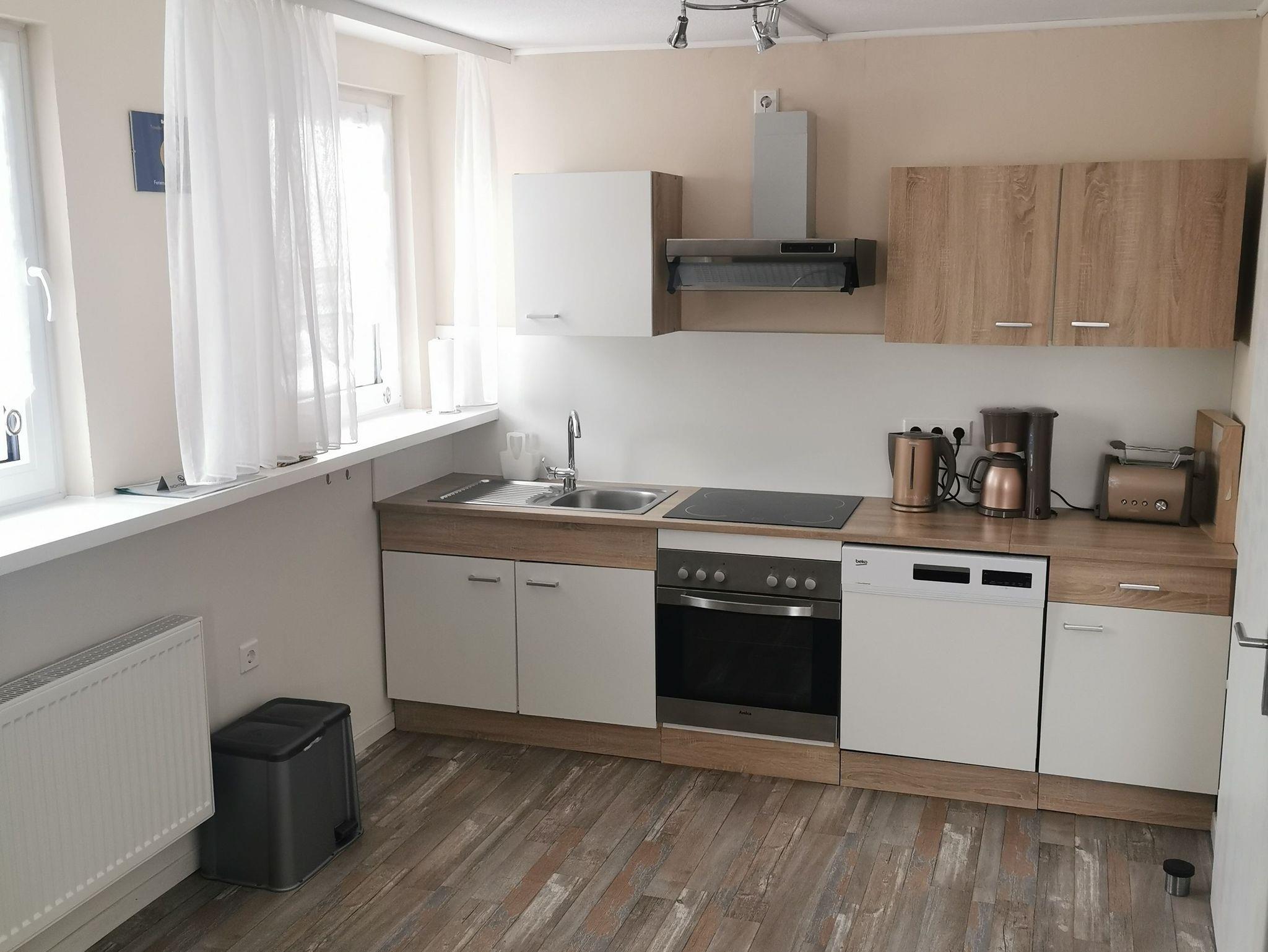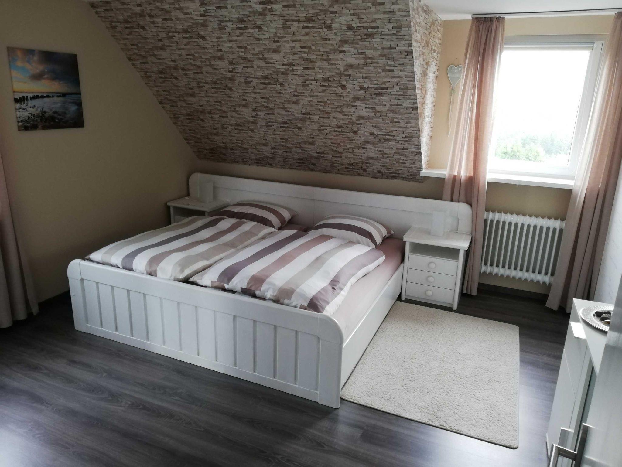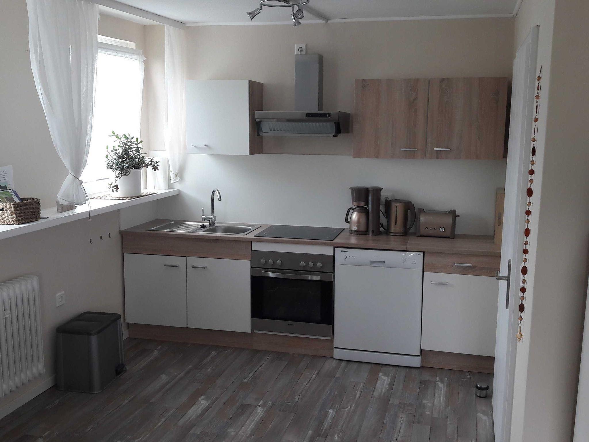 modern und komfortabel eingerichtet, ca. 80qm groß, max. bis 5 Personen, in ruhiger Ortsrandlage, Wohnzimmer, 1 Schlafzimmer mit Doppelbett (2,00x2,00m), 1 Kinderzimmer mit zwei Einzelbetten (0,90x2m), Küche mit Spülmaschine, Cerankochfeld, Wasserkocher, Mikrowelle, Toaster und Kaffeemaschine, Bad mit Dusche, Fön, separatem WC, Garderobe, Bettwäsche und Handtücher inklusive,