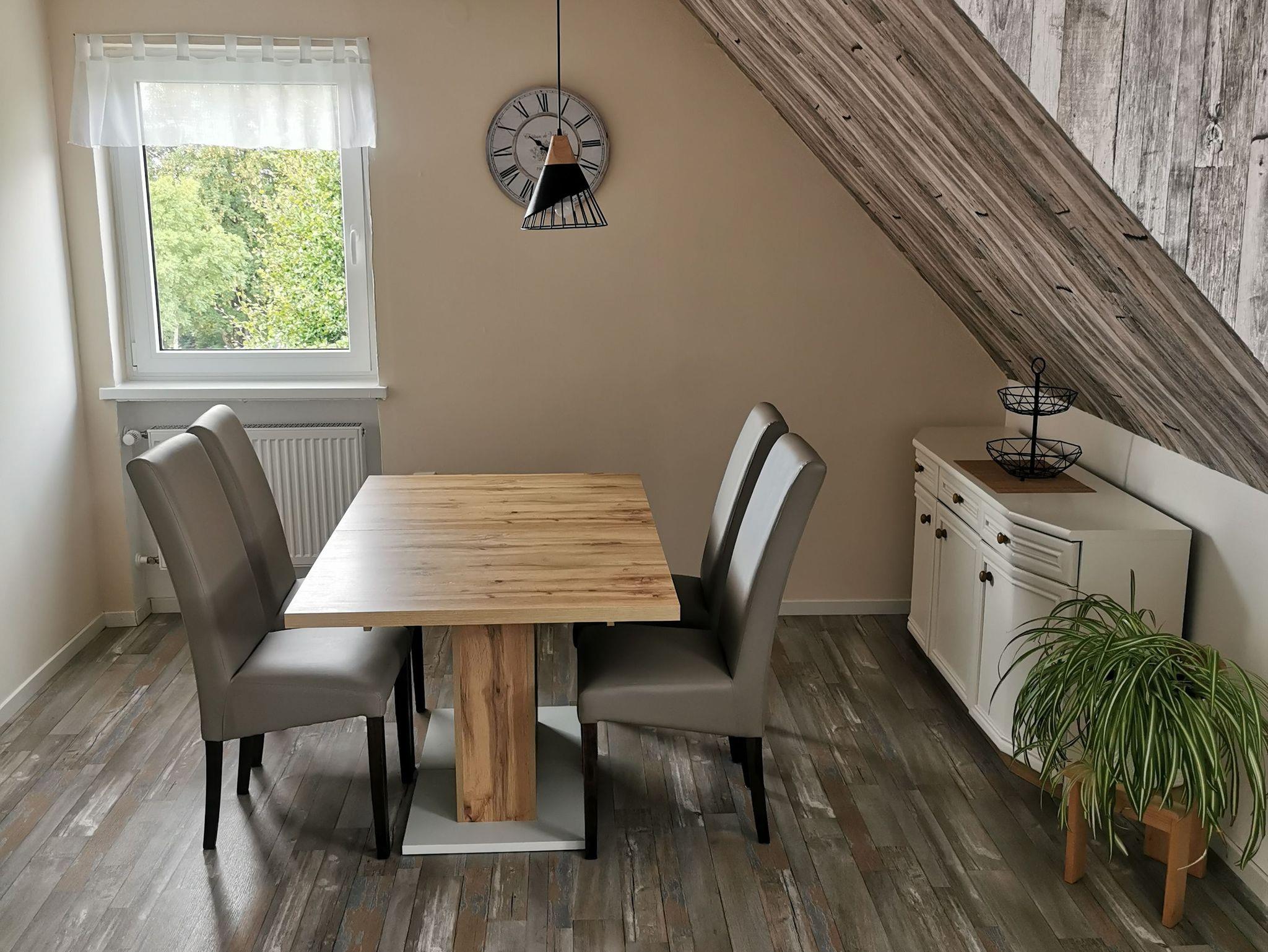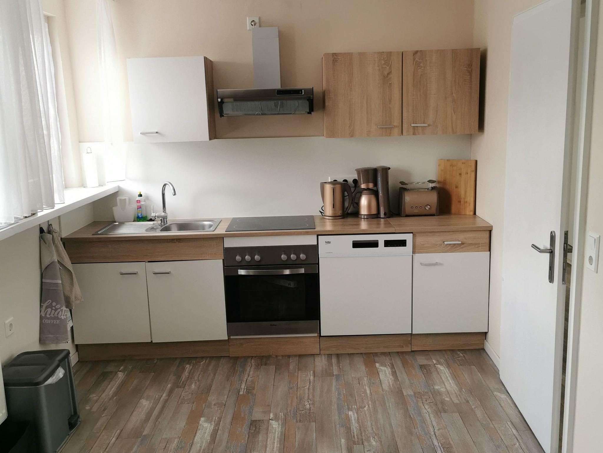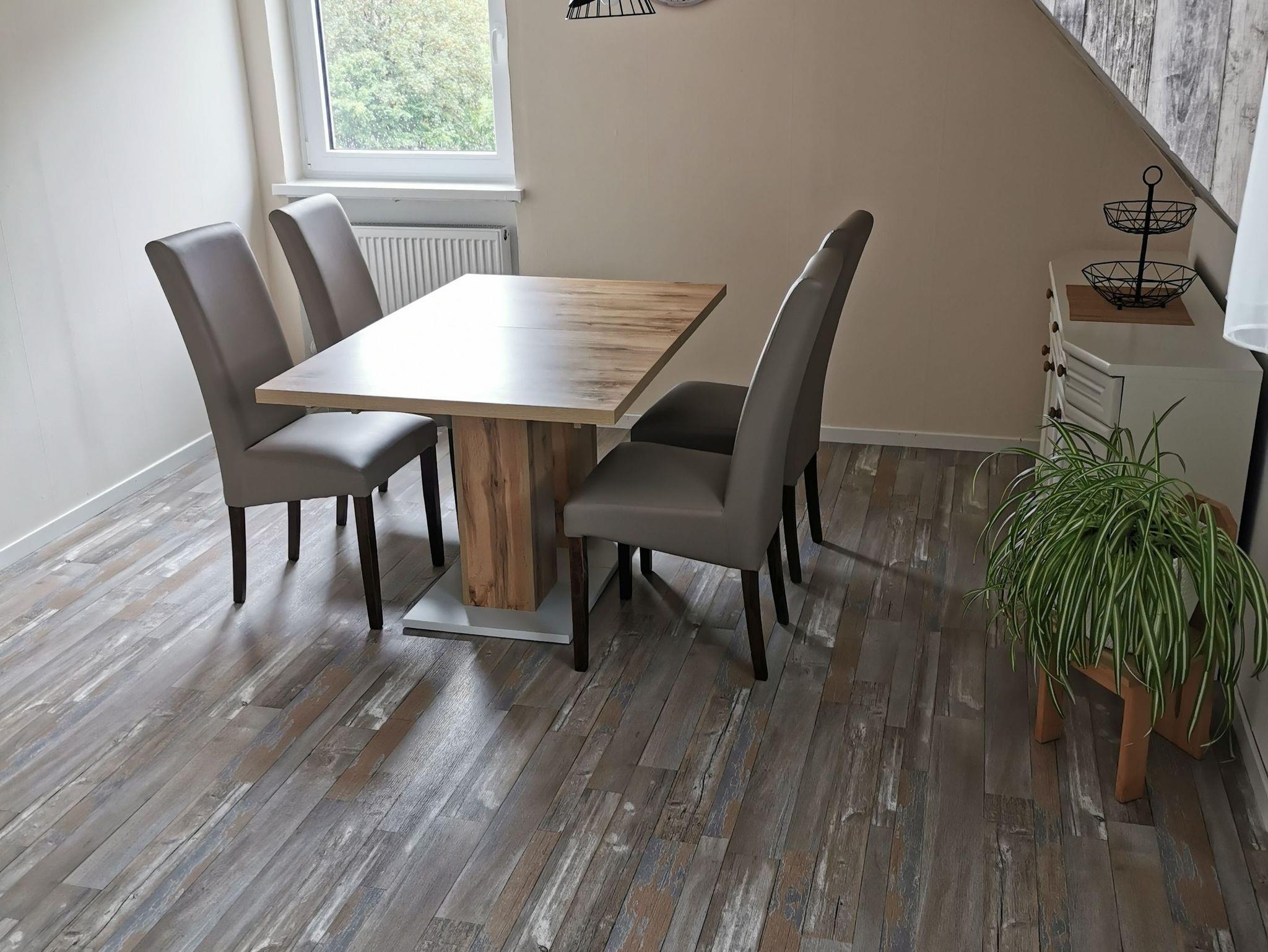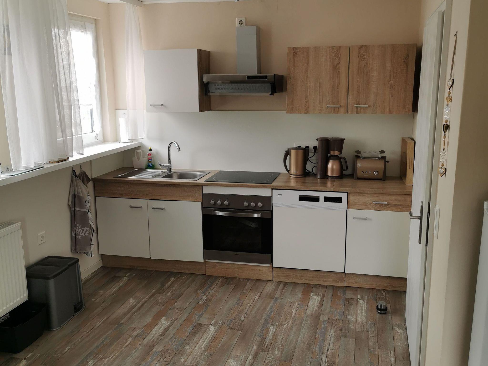 modern und komfortabel eingerichtet, ca. 80qm groß, max. bis 5 Personen, in ruhiger Ortsrandlage, Wohnzimmer, 1 Schlafzimmer mit Doppelbett (2,00x2,00m), 1 Kinderzimmer mit zwei Einzelbetten (0,90x2m), Küche mit Spülmaschine, Cerankochfeld, Wasserkocher, Mikrowelle, Toaster und Kaffeemaschine, Bad mit Dusche, Fön, separatem WC, Garderobe, Bettwäsche und Handtücher inklusive,