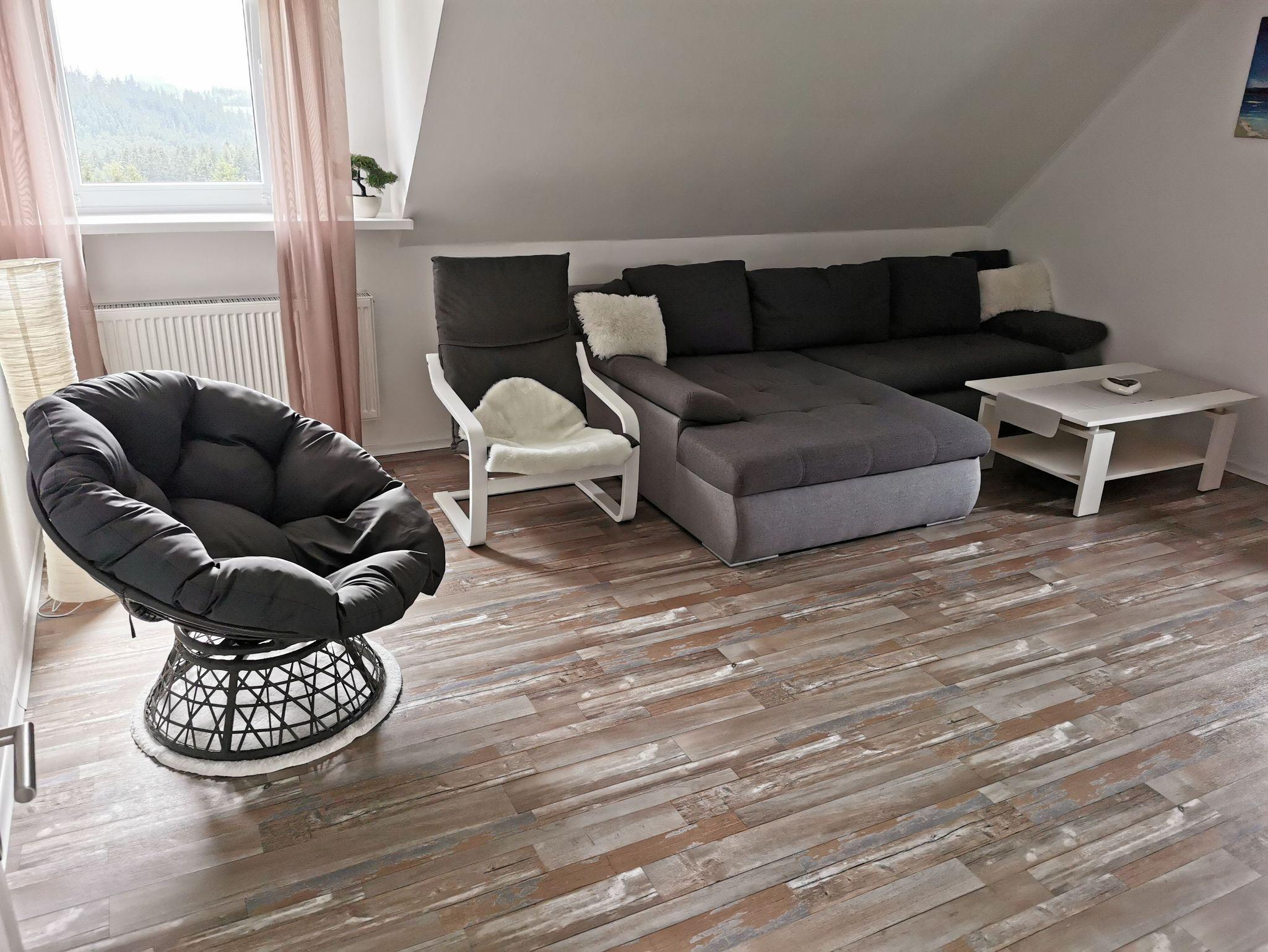 Unsere schöne 4 Sterne Ferienwohnung ist komfortabel und modern eingerichtet, liegt mitten im schönen Frankenwald, 85 qm groß, für 4 Personen, 1 Wohnzimmer, Einbauküche (Geschirrspüler, Ceran-Kochfeld, Mikrowelle, Wasserkocher, Toaster, Kaffeemaschine) 1 Schlafzimmer, 1 Kinderzimmer, bzw zusätzliches Schlafzimmer, Bad mit Dusche, Fön, separatem WC, auf der Terasse genießen Sie den direkten Blick auf die Bergwiese und dem Döbraberg, WLAN und TV mit Kabelanschluss, Handtücher und Bettwäsche inklusive, Brötchenservice am Wochenende möglich. Auf Wunsch können auch zwei Fahrräder zur Verfügung gestellt werden. Nutzung unserer wunderschönen Garten Lounge.