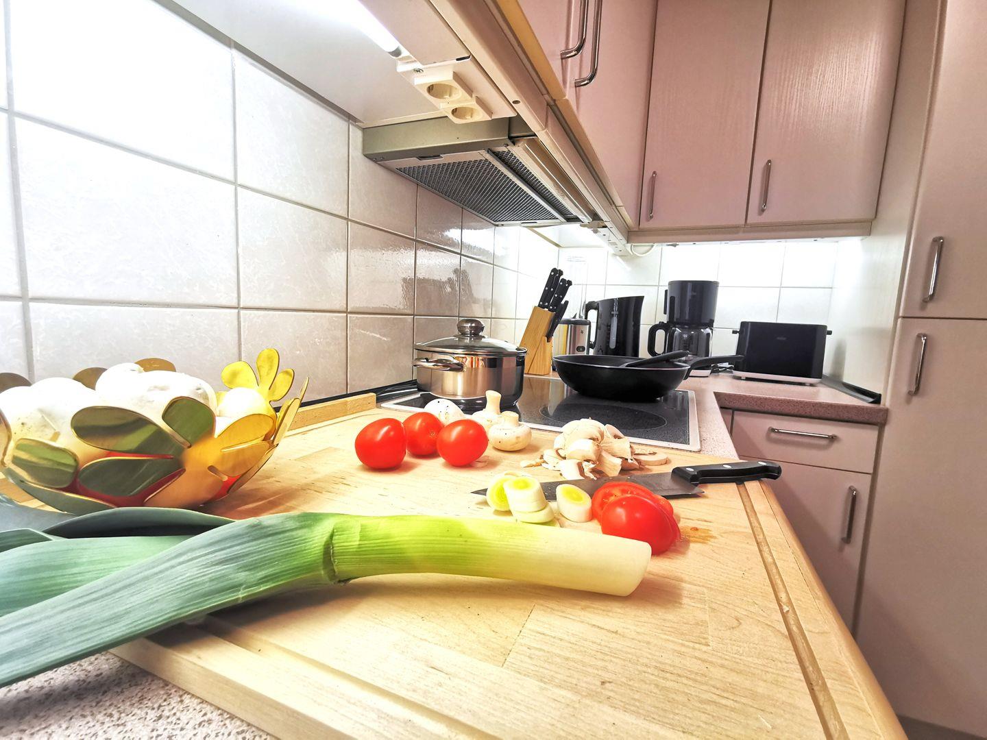 In der Küche findet man alles, was zum Kochen und Essen benötigt wird. Ceranfeld und Herd, sowie Kühlschrank mit Gefrierfach, Kaffeemaschine, Mikrowelle, Wasserkocher, Toaster und Smoothie-Maker sind vorhanden.