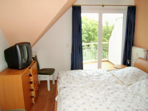 Die zwei separaten Schlafzimmer sind entweder mit einem Doppelbett und zweitem TV-Gerät oder zwei Einzelbetten möbliert. Eine weitere Schlafmöglichkeit befindet sich auf der Schlafcouch im Wohnzimmer.