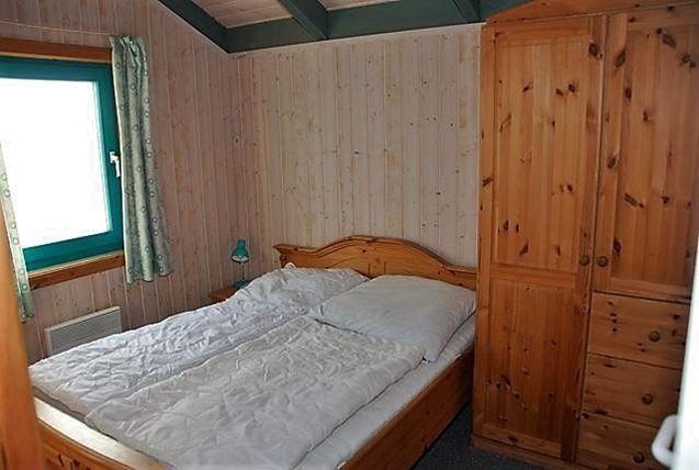 Zwei weitere separate Schlafzimmer sind entweder mit einem kleinen Doppelbett (durchgehende Matratze) oder mit einem Etagenbett und jeweils einem Kleiderschrank möbliert.