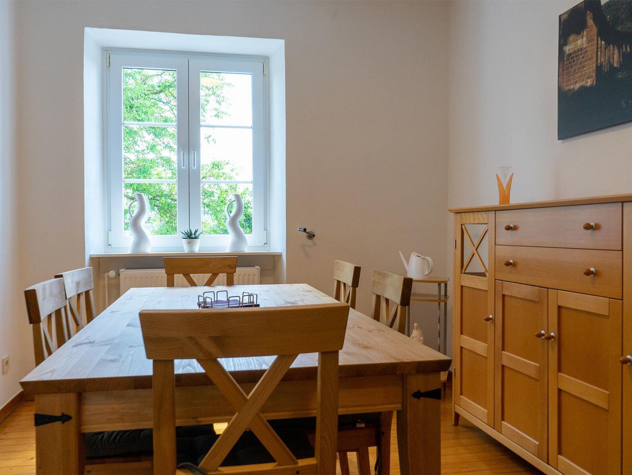 Die voll ausgestattete Küche, Wohn-/Esszimmer und Bad befinden sich in der 1. Etage.