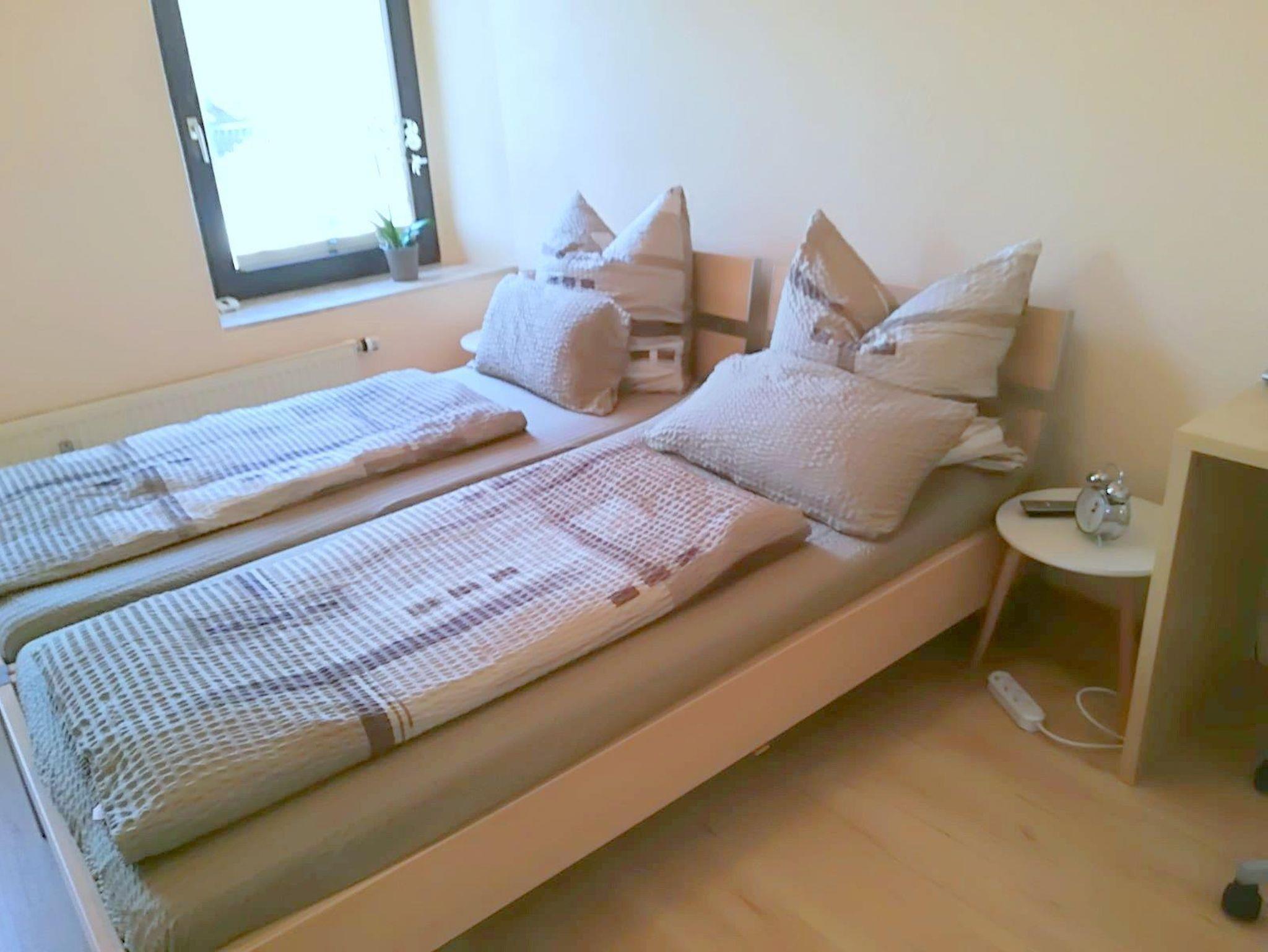 Die Ferienwohnung Herrenberg besteht aus einem Wohnzimmer mit Schlafcouch und einem Essbereich für 4 Personen. Außerdem stehen Ihnen 2 Schlafzimmer mit je 2 Einzelbetten zur Verfügung, wobei im großen Schlafzimmer die Betten bei Bedarf zusammengeschoben werden können. Alle drei Zimmer sind jeweils mit einem Fernseher ausgestattet.In der Küche befinden sich Kühlschrank, Spüle, ein Elektroherd mit Backofen, Mikrowelle, Kaffee- bzw. Padmaschine und weitere elektrische Kleingeräte. Das Bad ist ausgestattet mit einer Dusche, Toilette und Waschbecken. Bei Buchung der Ferienwohnung Herrenberg für 2 Personen steht den Gästen ein Doppelschlafzimmer zur Verfügung. Auf Wunsch kann das zweite Doppelzimmer gegen Aufpreis zugebucht werden.
