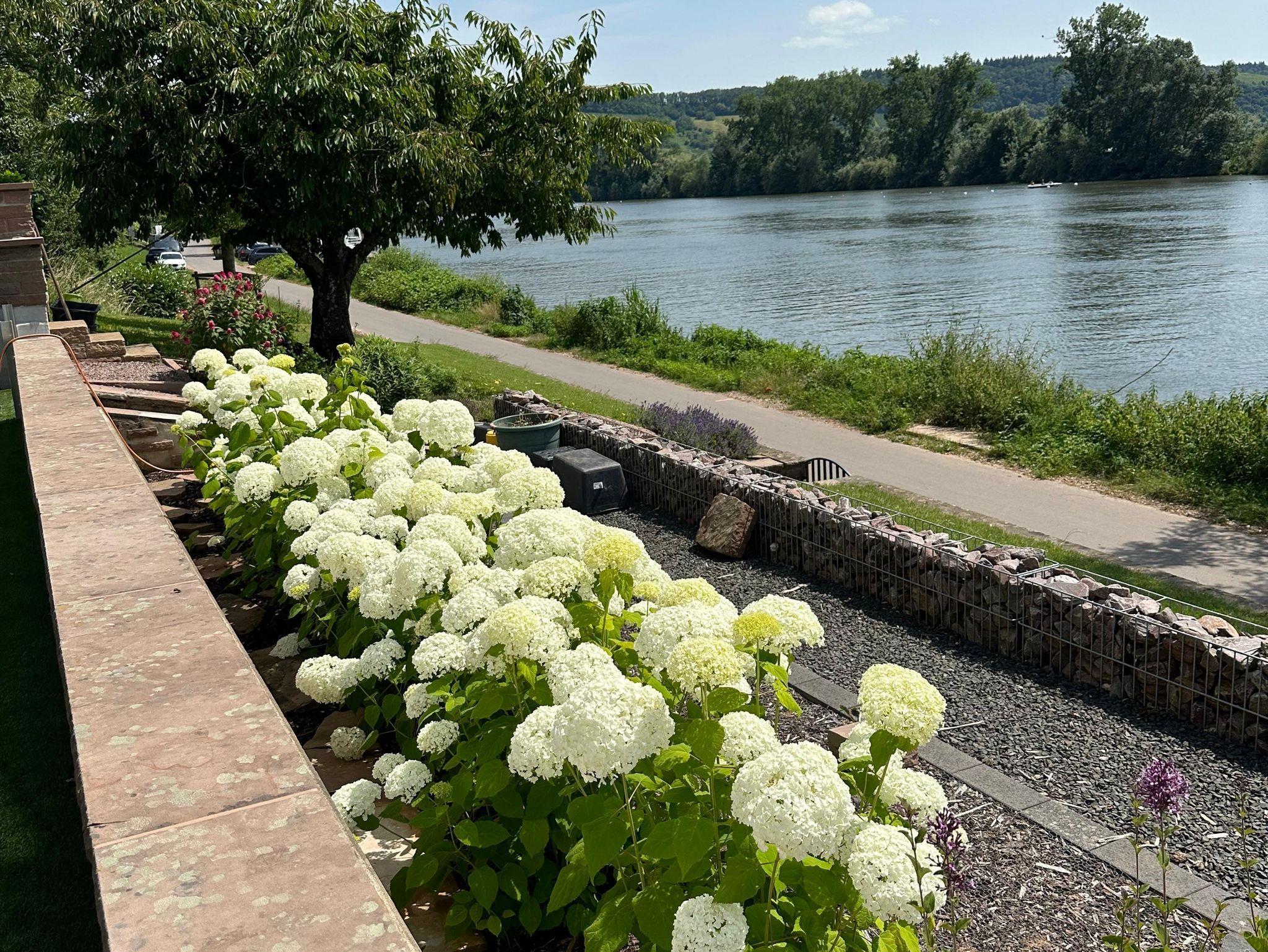 Sie haben die Möglichkeit über den zugehörigen Gartenanteil direkt zum Moselradweg zu gelangen. Zur Parterre-Wohnung gehört ebenfalls eine überdachte Terrasse inkl. Terrassenmöbel. Genießen Sie den idyllischen Ausblick zur Mosel direkt vom Wohn/Essbereich oder auch aus der Küche
