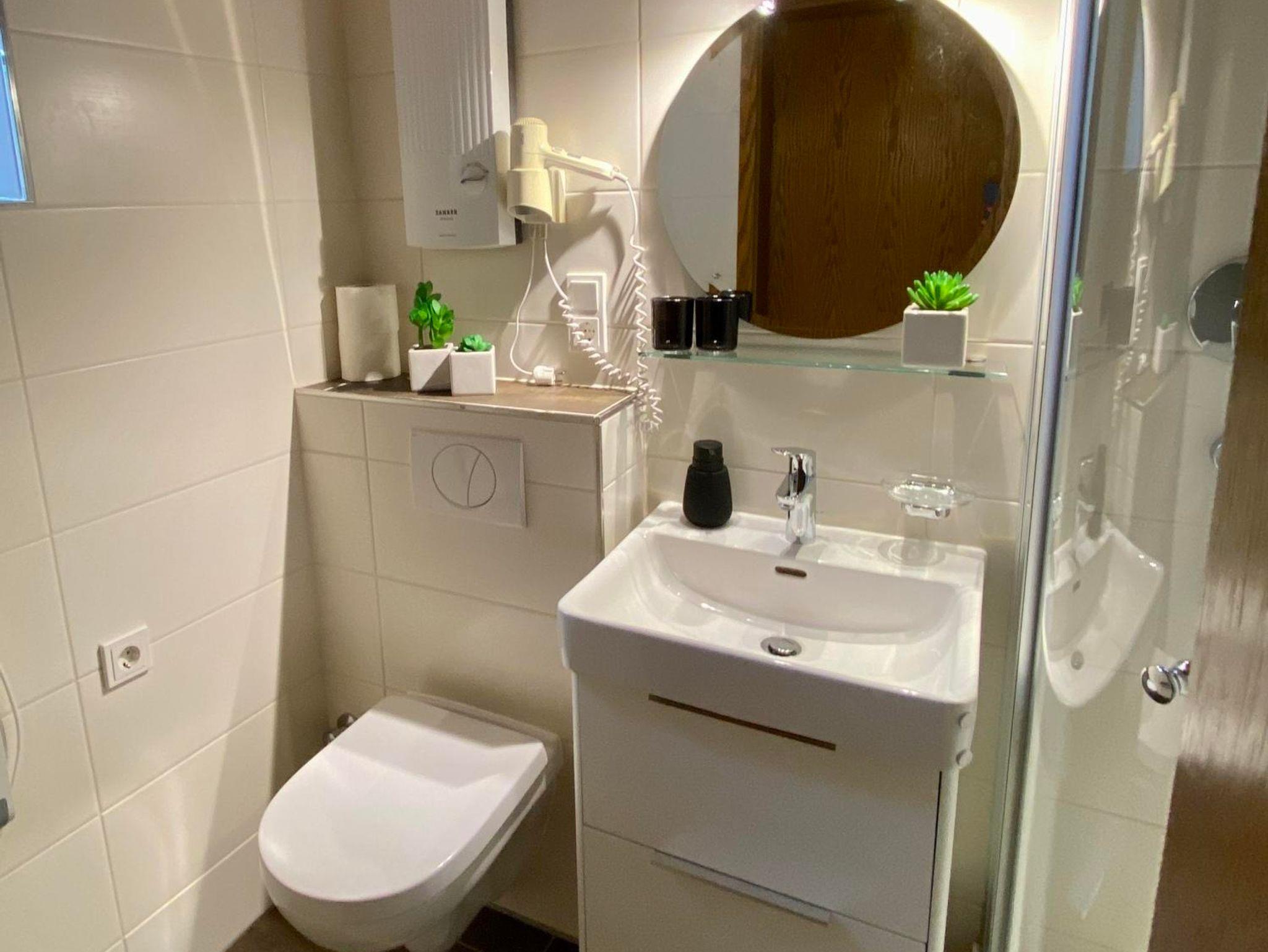 Das moderne Badezimmer bietet neben einer Dusche auch alle Annehmlichkeiten, die Sie für einen angenehmen Aufenthalt benötigen.