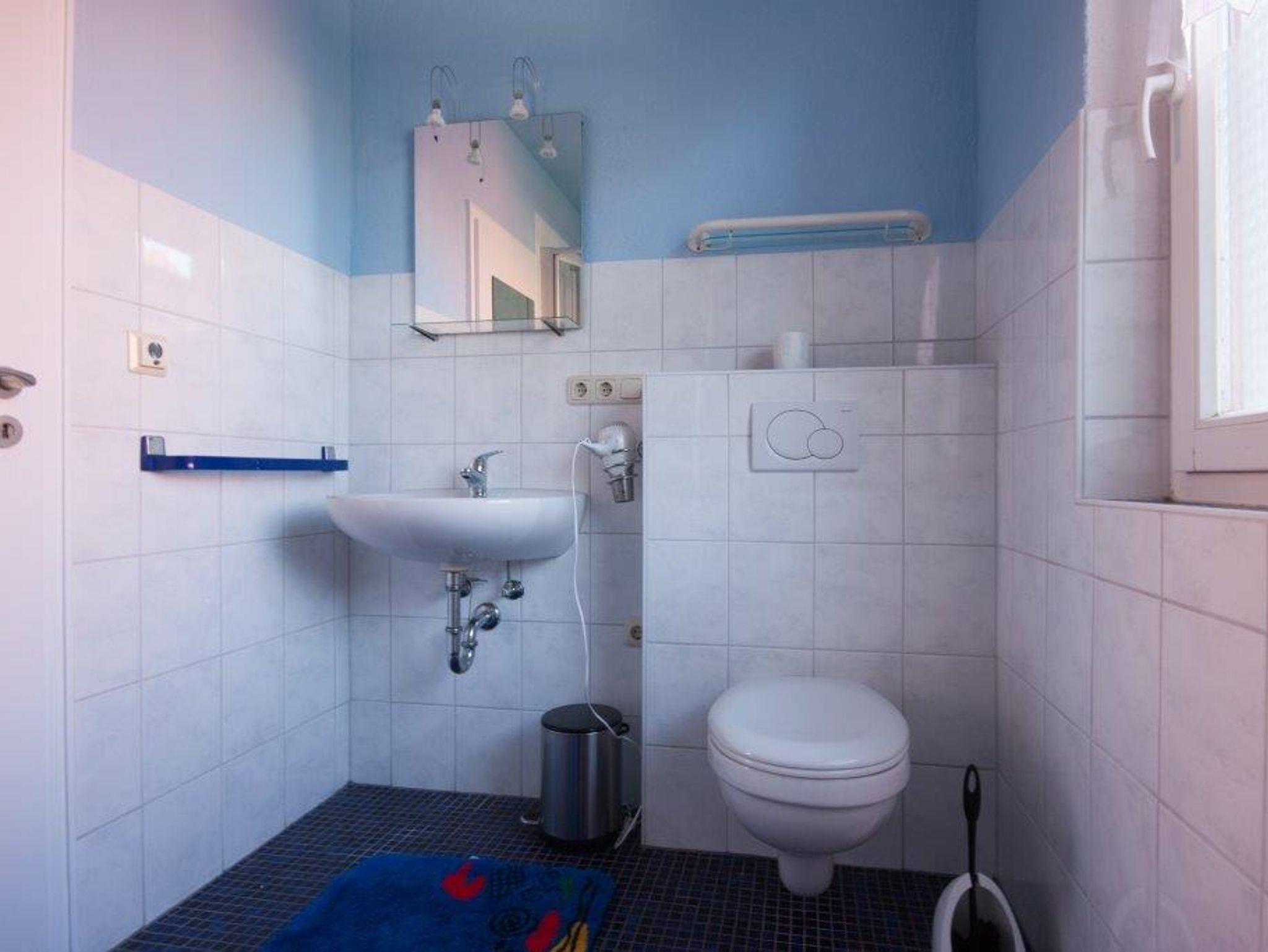 Das Bad ist mit Dusche, Fön und Waschmaschine ausgestattet.