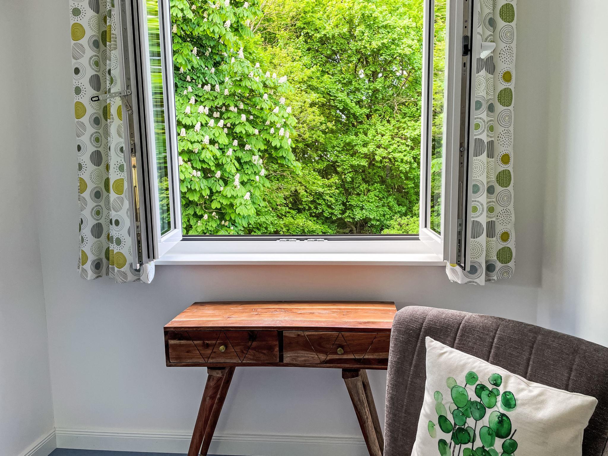 3-room house 110 m2 on 2 levels. Spacious and bright, stylish and cosy furnishings: living/dining room with dining table and satellite TV (flat screen). Exit to the terrace. Open kitchen (oven, dishwasher, 4 ceramic glass hob hotplates, toaster, kettle, microwave, electric coffee machine). Shower/WC. Upper floor: 1 room with 1 double bed (180 cm, length 200 cm). 1 room with 1 double bed (180 cm, length 200 cm), 1 folding bed (90 cm, length 200 cm). Shower/WC. Heating. Wooden floors, parquet floors. Terrace 16 m2 partly roofed. Terrace furniture. Beautiful view of the garden and the forest. Facilities: children's high chair, baby cot, hair dryer. Internet (WiFi, free). Parking (1 car) at the house. Please note: suitable for families. Non-smoking house. Smoke alarm.