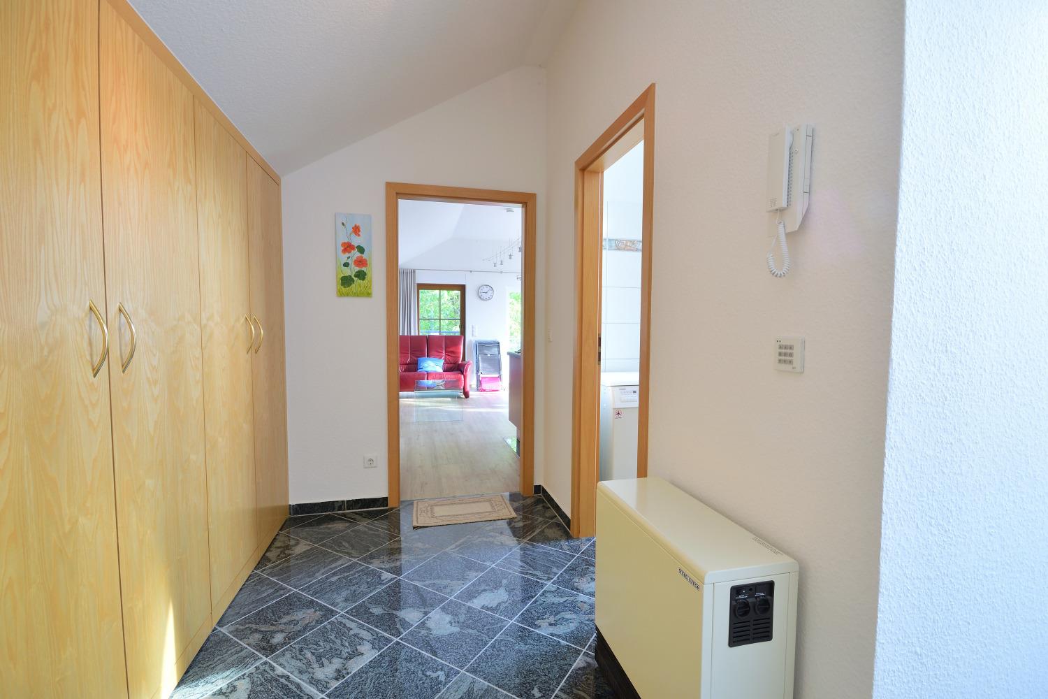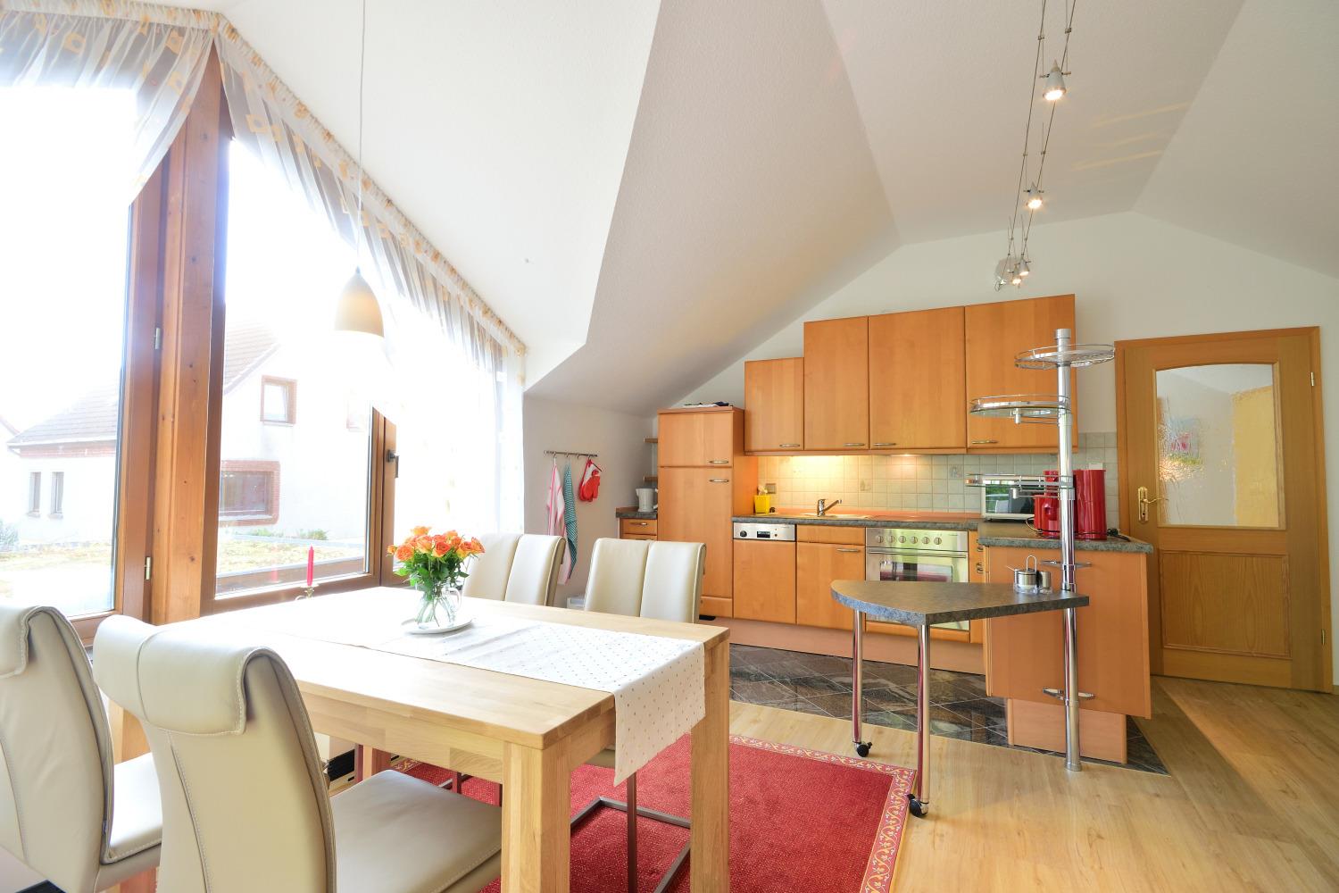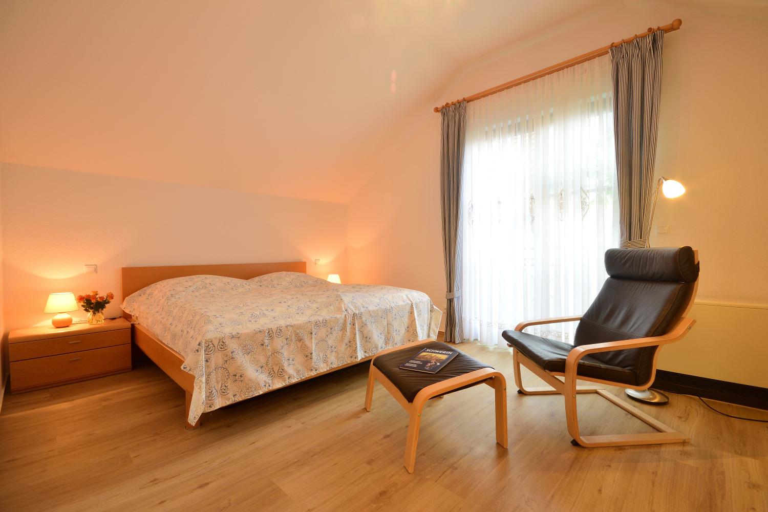 In der großzügig und hochwertig eingerichteten Ferienwohnung, im 1. OG des Hauses finden 2 Personen + Kleinkind ausreichend Platz für einen erholsamen Urlaub. Die Wohnung ist 80 m² groß und teilt sich in Flur, Schlafzimmer, Wohnküche, Bad und Balkon auf. Von der komplett ausgestatteten Wohnküche, mit Sitzbereich, haben Sie durch die große Fensterfront einen herrlichen Blick in den Garten und im Winter sogar zum See. Vom Wohnzimmer gelangen Sie auf den möblierten Balkon. Das Schlafzimmer ist mit einem hochwertigen Doppelbett und Leseecke ausgestattet. Vom Schlafzimmer gelangen Sie auf den kleineren 2. Balkon. Im großen hellen Bad, mit Badewanne, Waschmaschine und Fußbodenheizung, werden Sie sich wohlfühlen.