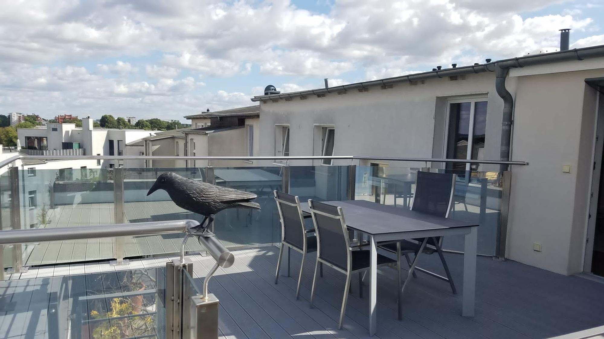 - Dachterrasse mit Traumblick auf die schönsten Sehenswürdigkeiten Schwerins, Stühle + Tisch