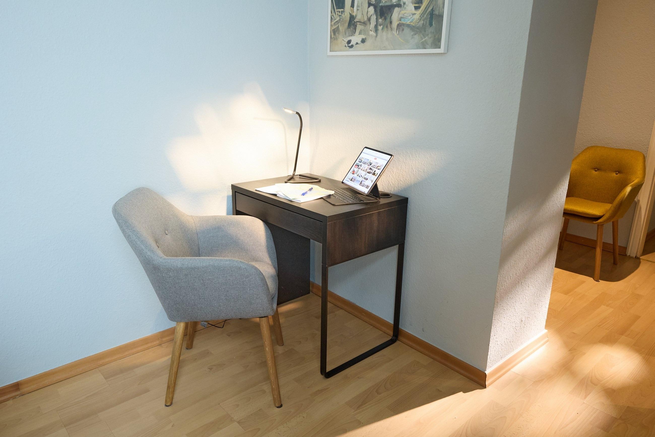 - separates Schlafzimmer Doppelbett (1,80 x 2,00m), Schreibtisch
