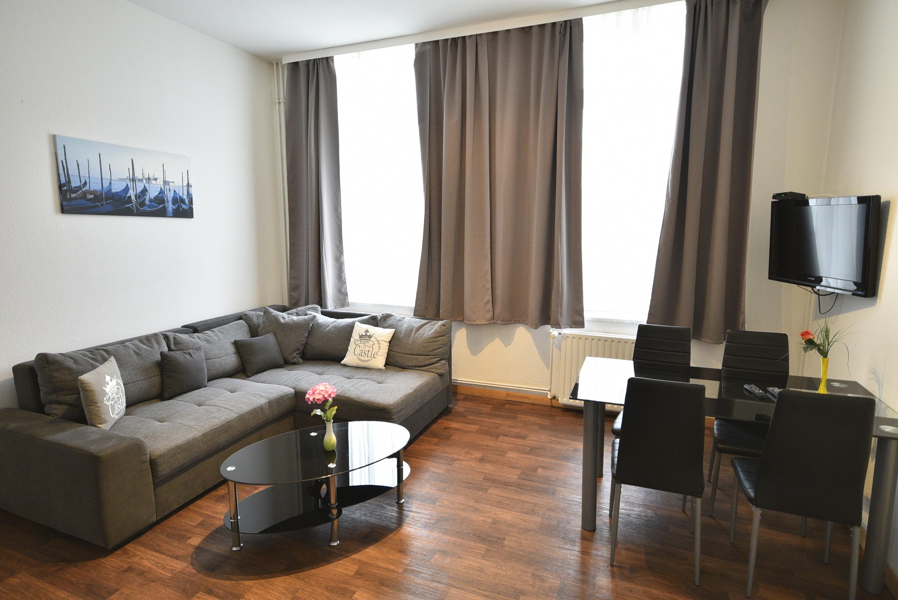 In der Wohn-Küche finden Sie: 4-Plattenherd, Backofen, Gefrierfach, Geschirrhandtücher, Küchenzeile, Kühlschrank, TV SAT/Kabel, Esstisch für bis zu 6 Personen und eine gemütliche Schlafcouch.