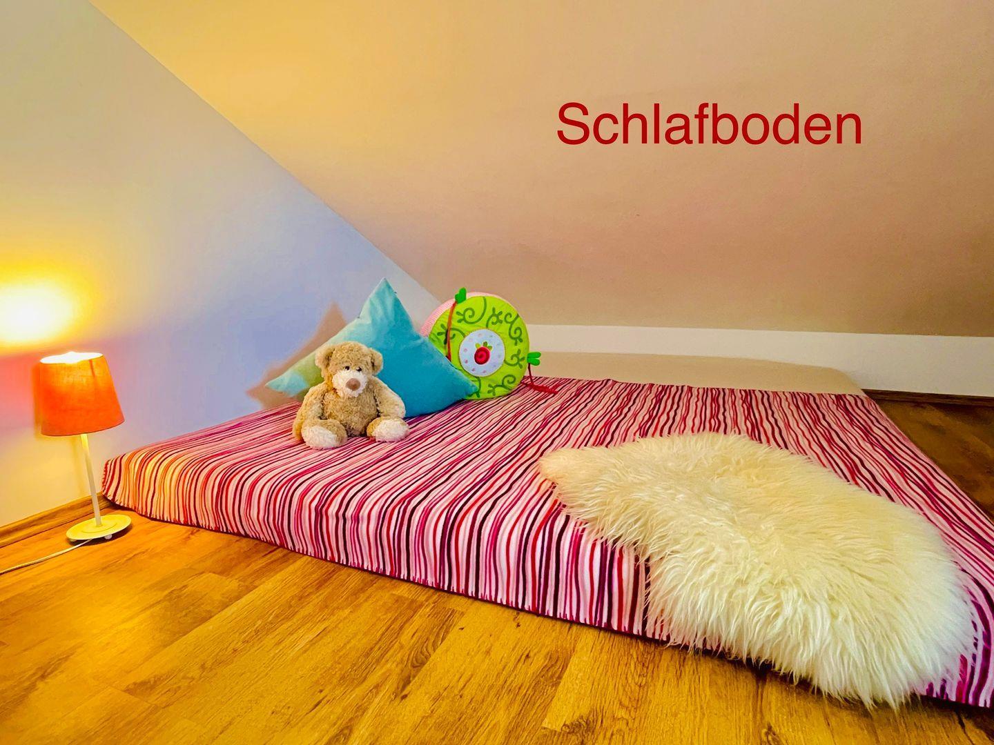 - Spielbereich im Obergeschoss, kindersicher mit Geländer und Treppengitter