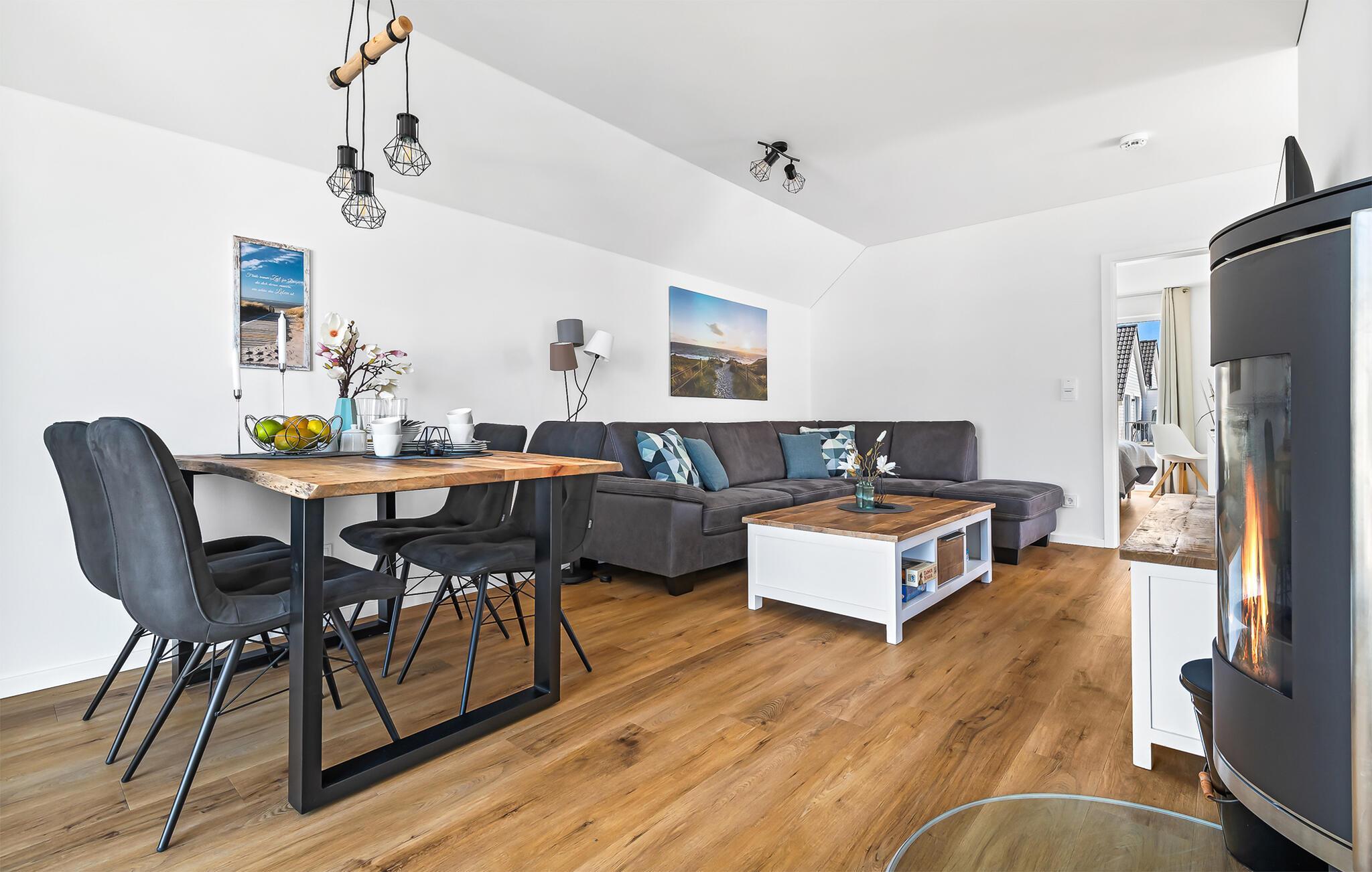 Velkommen til Seastar! Her venter jer moderne møbler i skandinavisk stil. Den rummelige ferielejlighed på øverste etage scorer med en rummelig følelse, to terrasser til solbadning og plads til op til 4 personer. jeres firbenede familiemedlem er også meget velkommen. Her kan I nyde jeres ferie og glemme hverdagen. Sandstranden Weidefelder med kiosk, restaurant og strandstole ligger i gåafstand og er et attraktivt rejsemål på alle tider af året. Minigolfbanen med maritimt tema ligger også i umiddelbar nærhed og glæder både store og små. Den livlige havnepromenade med indkøbsmuligheder og lystbådehavnen ligger også tæt på ferielejligheden - alt det gør Seastar til det perfekte udgangspunkt for en Østersøferie. Med sine gulv-til-loft vinduer og den store tilstødende terrasse er den åbne stue/alrum lejlighedens hjerte. At slappe af i den hyggelige opholdsstue med en god bog foran den knitrende pejs eller tilbringe en aften sammen med at se tv er ren afslapning og afslapning! Hvis I keder jer om aftenen, kan I bruge forskellige samlinger af spil til at fordrive tiden. Skulle vejret tage en drejning for den nordiske side, sikrer den infrarøde sauna (varmekabinen) en meget privat wellness-følelse. Men selv når solen skinner, venter de to terrasser allerede på jer. Nyd dagen her i den friske Østersøluft eller ring ind til en grillaften sammen. Den ene af de to terrasser ligger med garanti i solen og indbyder til at blive hængende. Det tilstødende åbne køkken er ideelt udstyret og vil få amatørkokkenes hjerter til at slå hurtigere. To soveværelser er tilgængelige til afslapning om natten. Det ene soveværelse er indrettet med dobbeltseng, mens det andet soveværelse har to enkeltsenge. Begge soveværelser er også udstyret med et fjernsyn til hyggelige filmaftener. Efter en travl feriedag giver badeværelset med bruser i gulvniveau og en infrarød sauna beroligende øjeblikke. En feriedag kunne ikke ende bedre. For at give en hel feriekomfort finder I jeres egen parkeringsplads og opbevaringsplads til jeres cykler i et aflåseligt skur foran ferielejligheden. Vores favoritsted: At tilbringe en hyggelig grillaften på terrassen efter en dag på stranden... Bemærk venligst: OstseeResort Olpenitz er meget populært, og der bygges fortsat i parken. Ikke desto mindre kan I se frem til en 5-stjernet standard og et førsteklasses ophold. Byggeaktiviteterne kommer ikke til at forstyrre jer på ferien, og derfor gives der ikke yderligere afslag i prisen.
