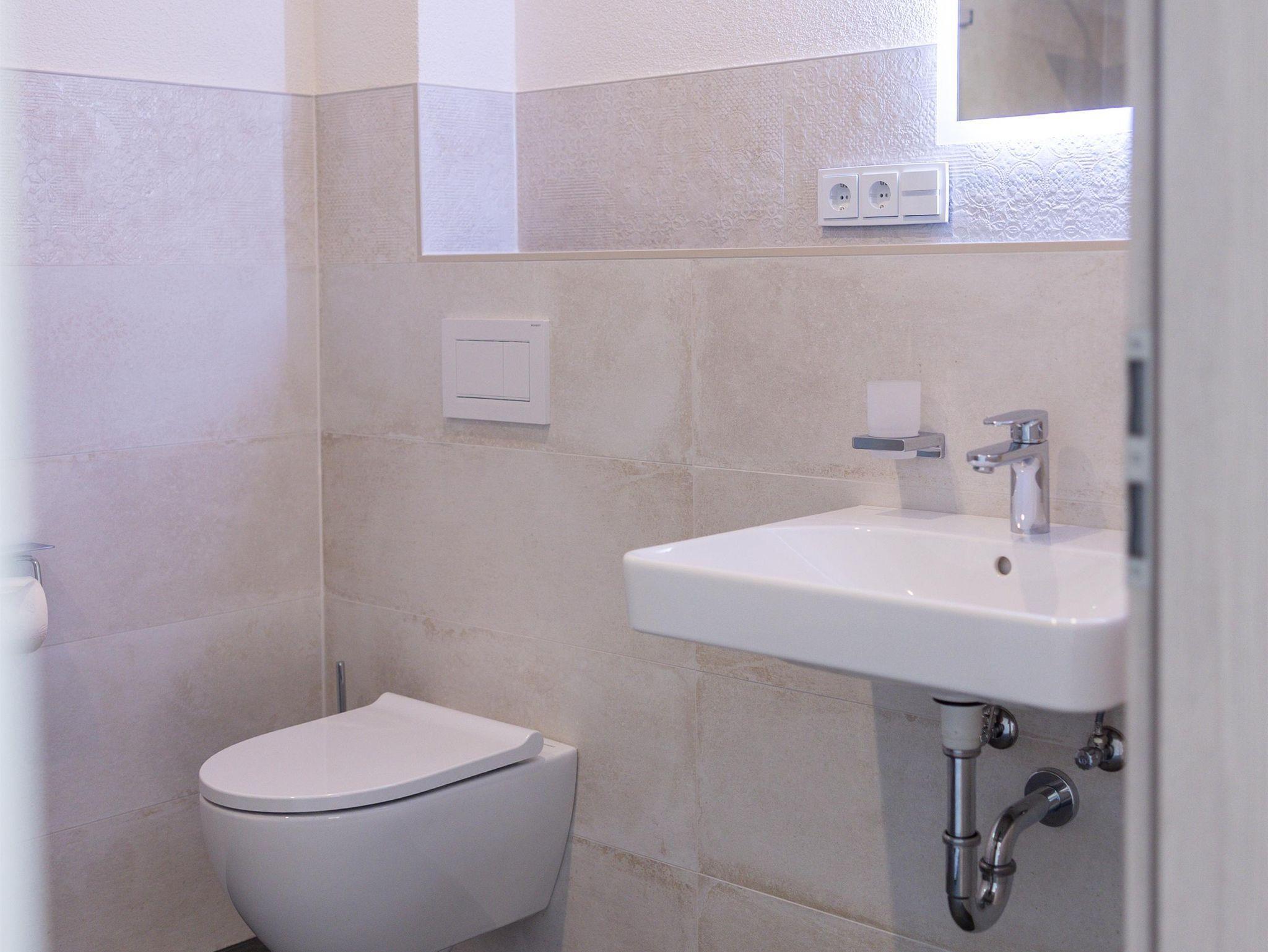 Die Wohnung verfügt über ein ruhiges Schlafzimmer mit einem komfortablen Doppelbett und einem praktischen Kleiderschrank. Das moderne Tageslicht-Badezimmer ist mit einer Dusche, WC und Waschbecken ausgestattet (inkl. Wandtrockner und Fön).