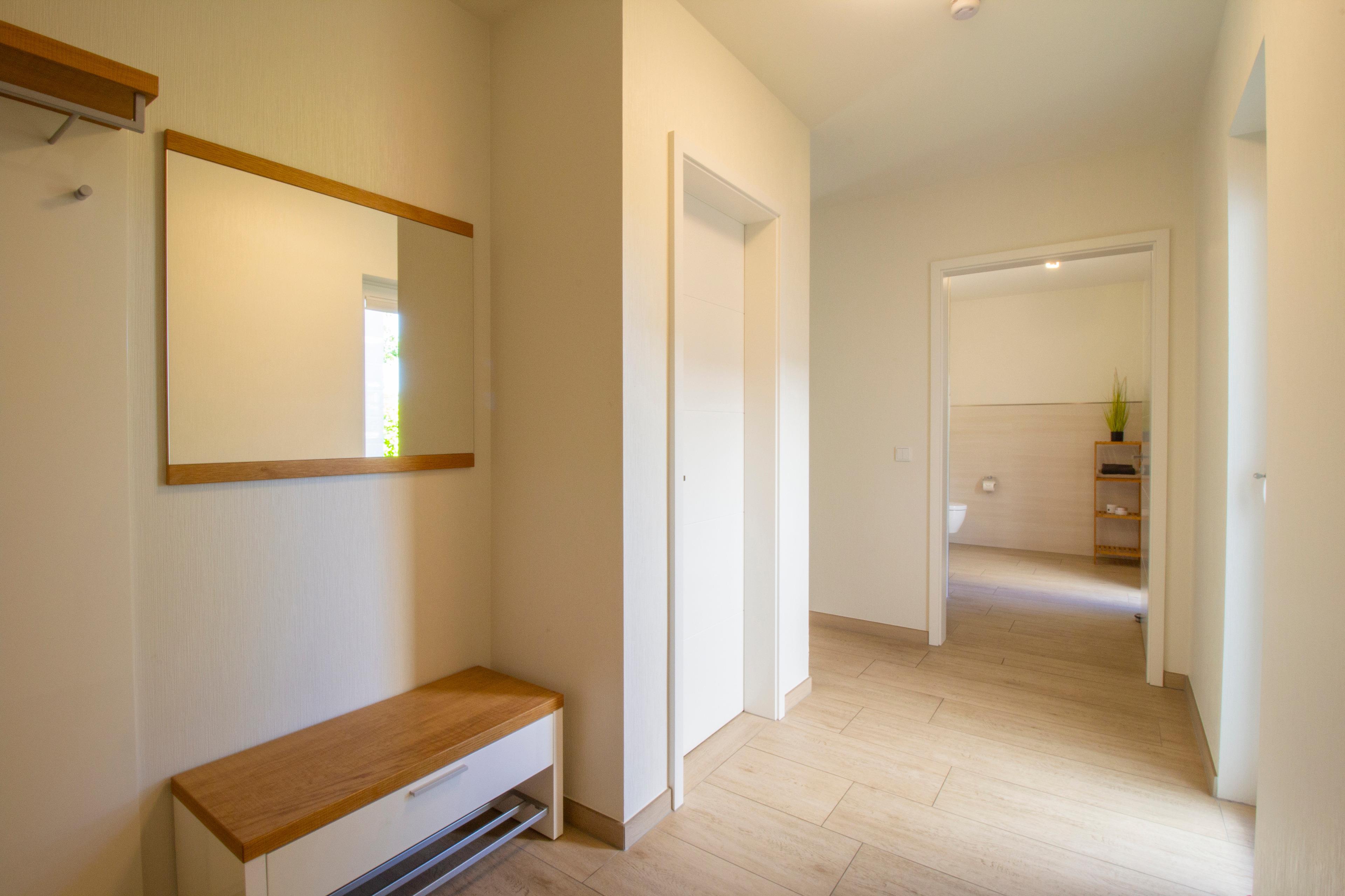 Dieses hochwertig und moderne 2-Zimmer Appartement ist 56 qm groß und befindet sich im Erdgeschoss der 2016 neu erbauten Ahlbecker Suiten. Die Wohnung ist für 2 Personen perfekt geeignet. Im hell eingerichteten Wohnbereich erwartet sie eine behagliche Lederpolstergarnitur zum Relaxen, ein moderner Couchtisch sowie ein Esstisch. Flat- TV und Radio sind selbstverständlich enthalten. Die im Wohnraum integrierte Küchenzeile ist mit Cerankochfeld, Backofen, Geschirrspülmaschine und Kühlschrank inkl. Gefrierfach ausgestattet. Das helle Schlafzimmer verfügt über ein komfortables Doppelbett mit getrennten Matratzen und einem großzügigen Kleiderschrank. Das modern ausgestattete Badezimmer verfügt über eine ebenerdige Dusche, einen komfortablen Waschtisch sowie ein WC. Für eine behagliche Wärme an kälteren Tagen sorgt in der kompletten Wohnung die Fußbodenheizung. Über den Wohnbereich erreichen Sie die nach Süden ausgerichtete überdachte Terrasse mit einem Blick ins Grüne.