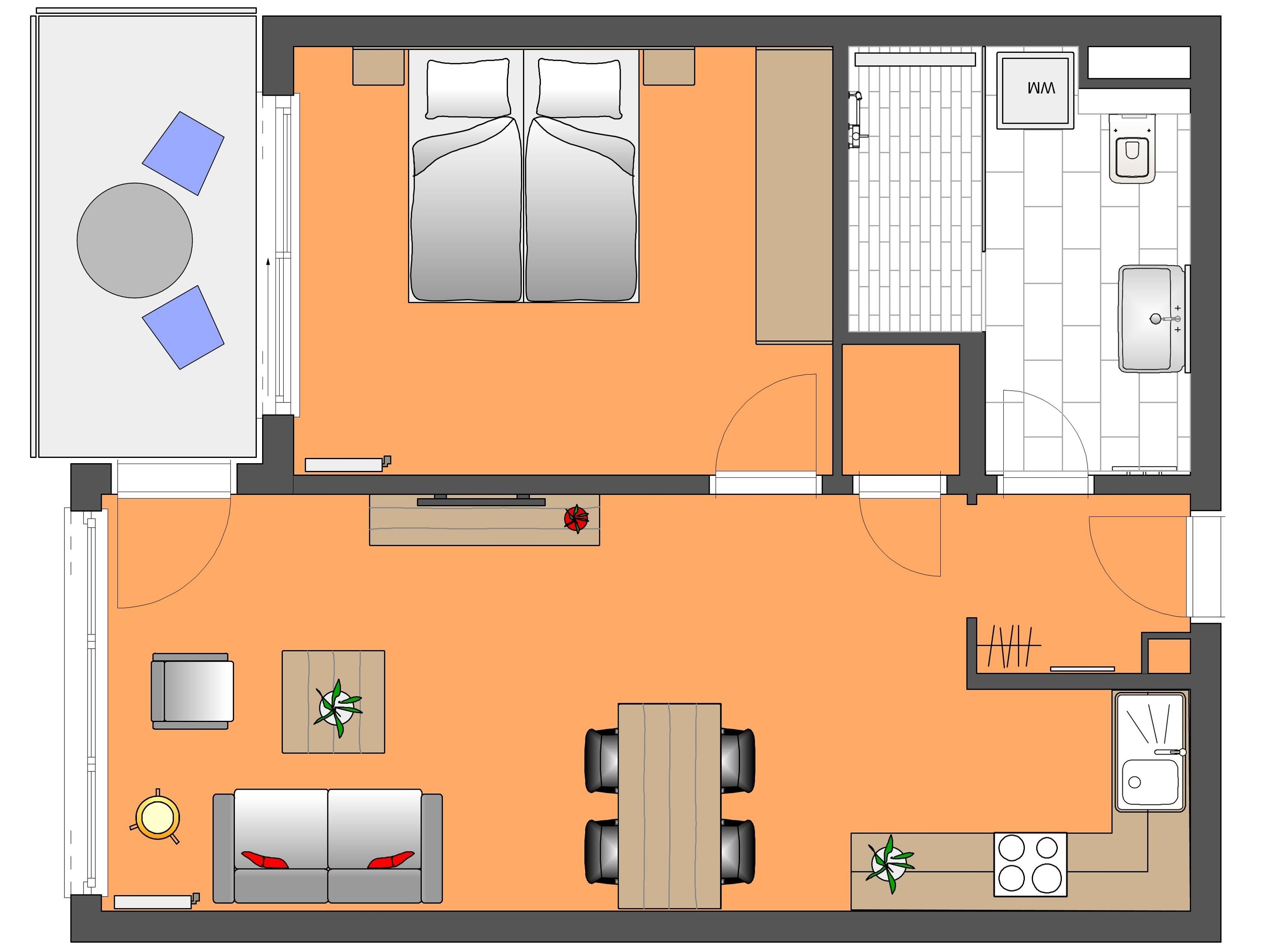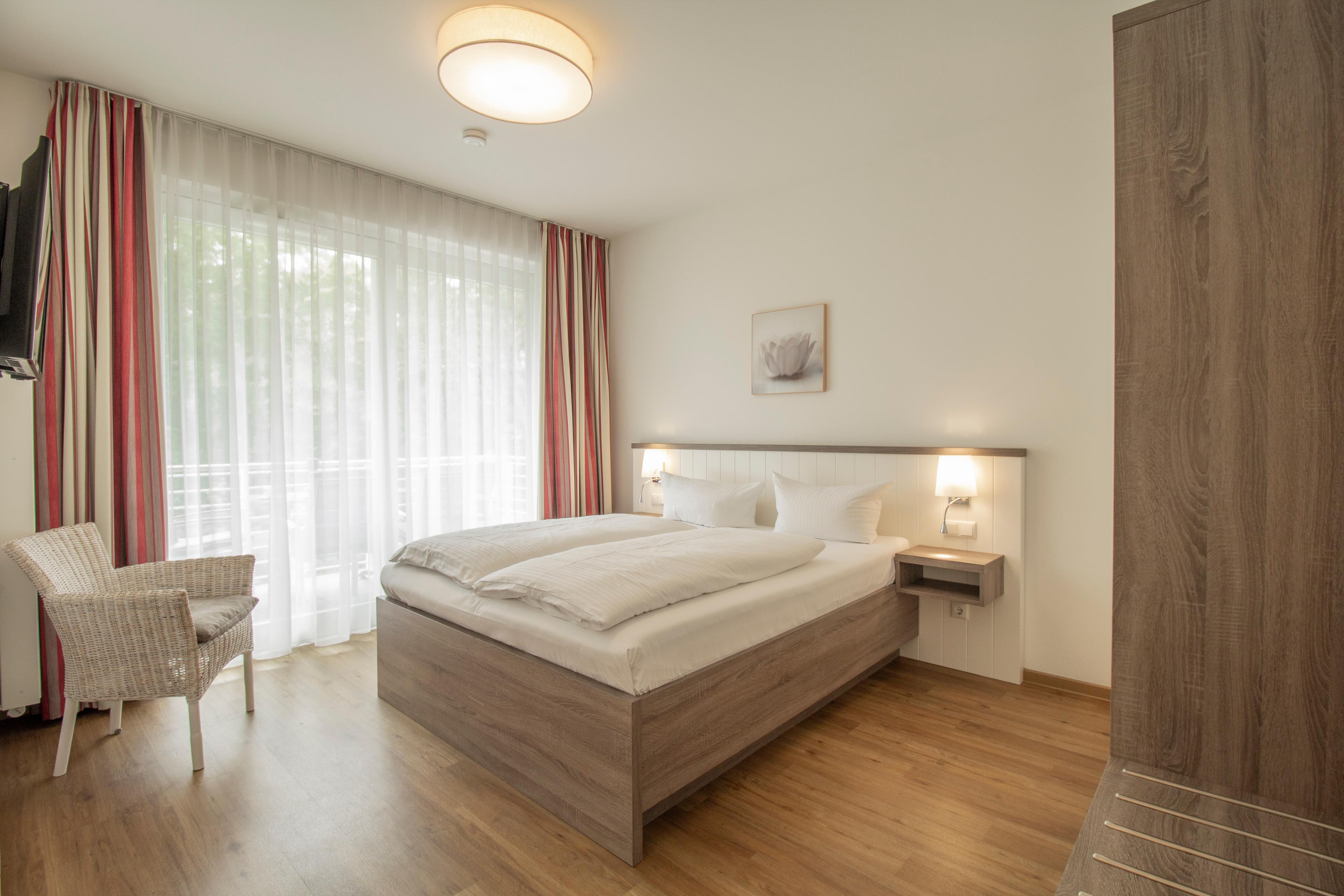Die komfortable und modern eingerichtete Ferienwohnung mit 52 m² Wohnfläche befindet sich im 1. Obergeschoss der Strandresidenz. Die sonnige südliche Ausrichtung der Wohnung garantiert viele Sonnenstunden. Die Wohnung bietet 2-4 Personen Platz für einen erholsamen Urlaub am Meer. Der offene Wohnraum bietet Ihnen eine gemütliche Sitzgruppe, bestehend aus einem Sofa mit Schlaffunktion (Matratze 160 x 200) und Sessel mit Couchtisch und Flat TV. Die Küchenzeile incl. Backofen, Ceranfeld, Kühlschrank, Geschirrspüler etc. sowie der Essplatz sind ebenfalls offen im Wohnraum integriert. Das Schlafzimmer ist mit einem Doppelbett mit getrennten Matratzen (80 x 200) und einem Kleiderschrank eingerichtet. Der Balkon lässt sich sowohl vom Wohn- als auch vom Schlafzimmer betreten. Das großzügige, moderne Bad ist mit einer ebenerdigen Dusche und Waschtisch/WC ausgestattet.