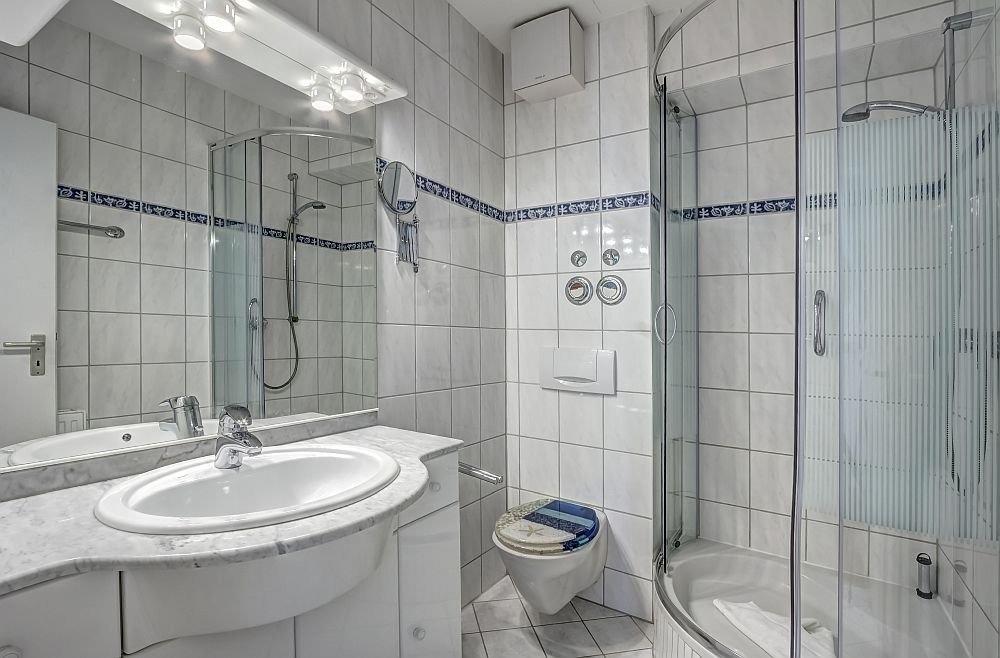Im hellen Wohnzimmer (mit einer möglichen Aufklapp-Aufbettung 200 x 90 cm) und im Essbereich sind ausreichend Sitzgelegenheiten vorhanden, um das in der gut ausgestatteten Küchenzeile (Backofen, Spülmaschine, Kaffeemaschine) zubereitete Essen zu sich zu nehmen. Auf dem Balkon mit Südost-Ausrichtung haben Sie genügend Platz, um es sich am Tisch mit Stühlen gemütlich zu machen.