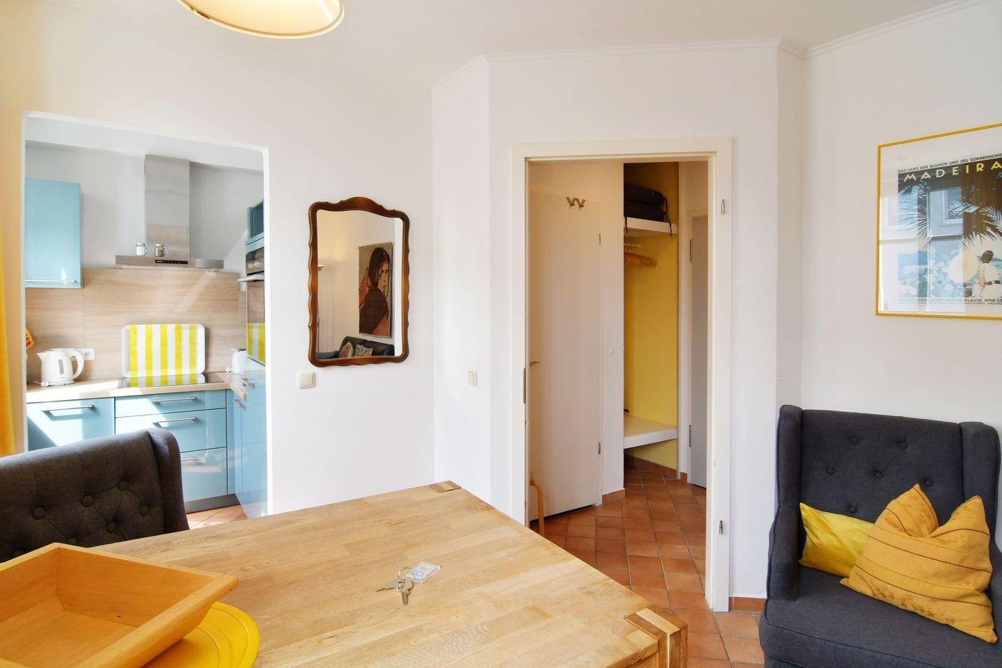 Die kleine, gemütliche 35 m² große Ferienwohnung 05 befindet sich im 2.OG des Hauses. Zwei Zimmer mit separatem Schlafraum (Doppelbett), Duschbad und Südbalkon. Abgetrennter voll ausgestatteter Küchenbereich. Kostenfreies Wlan und ein PKW-Stellplatz stehen zur Verfügung. Haustiere sind auf Anfrage gestattet.