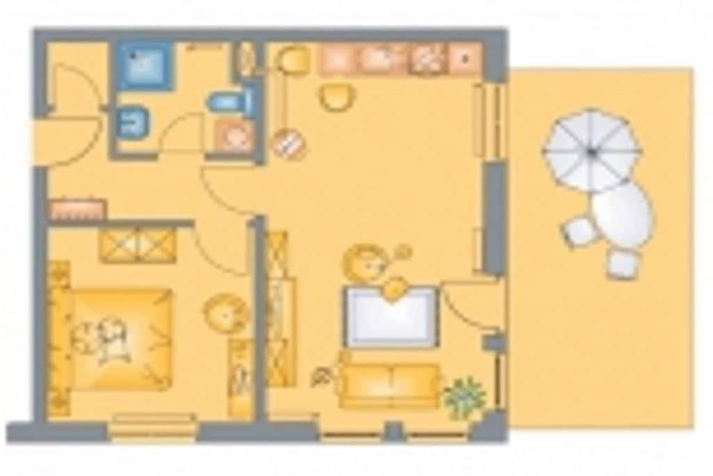Wohnung 01 Der hell eingerichtete Wohnraum im Erdgeschoss verfügt über eine gemütliche Sitzecke (mit Schlaffunktion) und einen separaten Essplatz. Eine im Wohnbereich integrierte Küchenzeile mit Geschirrspüler, Backofen, Mikrowelle p.p läßt auch für den Hobbykoch keine Wünsche offen. Das Schlafzimmer ist mit Doppelbett und genügend Schrankraum ausgestattet. Ein Duschbad sowie eine Terrasse runden diese Wohnung ab. TV und Radio stehen zur Nutzung bereit. Der Pkw-Stellplatz befindet sich vor der Terrasse und ist der Wohnung zugeordnet. Fahrräder können im Keller untergestellt werden.