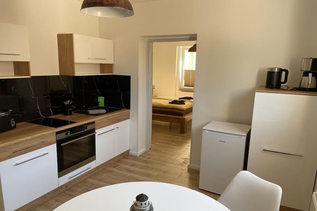 Two people can enjoy a pleasant holiday in a cozy 35 m² space. The fully equipped kitchen allows you to prepare many dishes. You have the option of sitting in the garden house or being in the beautiful pine forest in 2 minutes. You are welcome to use a small but nice fitness studio.