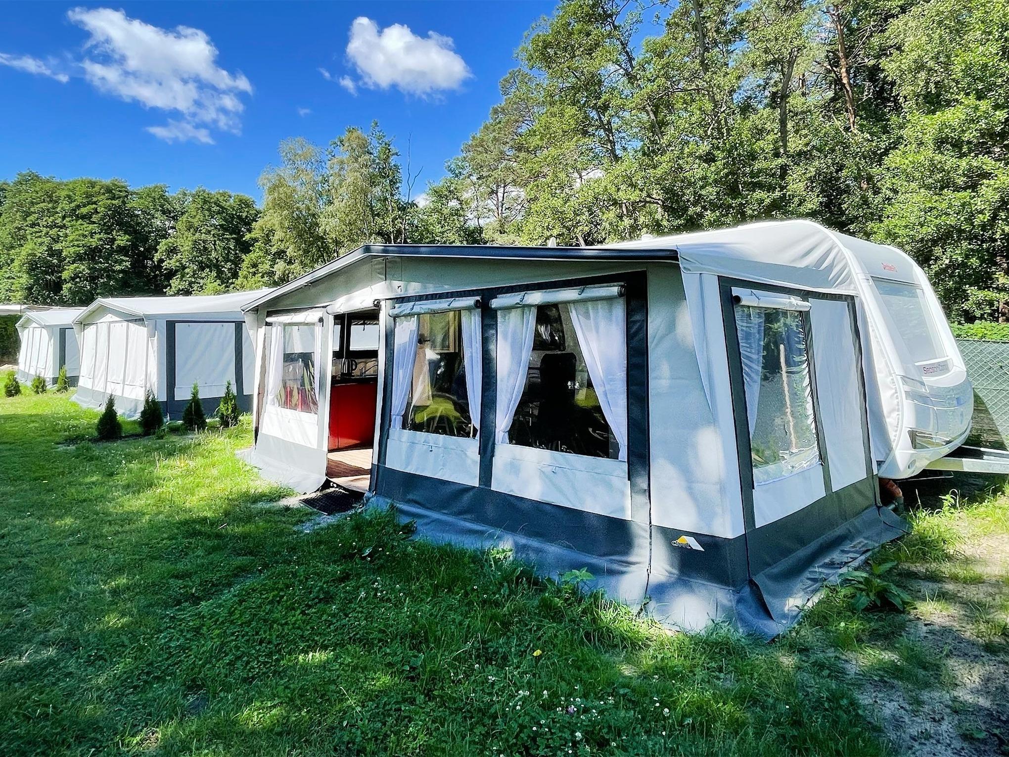 Die Mietwohnwagen sind an das Wassernetz angeschlossen, dadurch ersparen Sie sich das Füllen des Wassertanks sowie das Entleeren des Abwassertanks beziehungsweise der Campingtoilette. Ihr PKW kann direkt neben dem Wohnwagen geparkt werden. Die Parkfläche dafür ist im Übernachtungspreis inbegriffen.