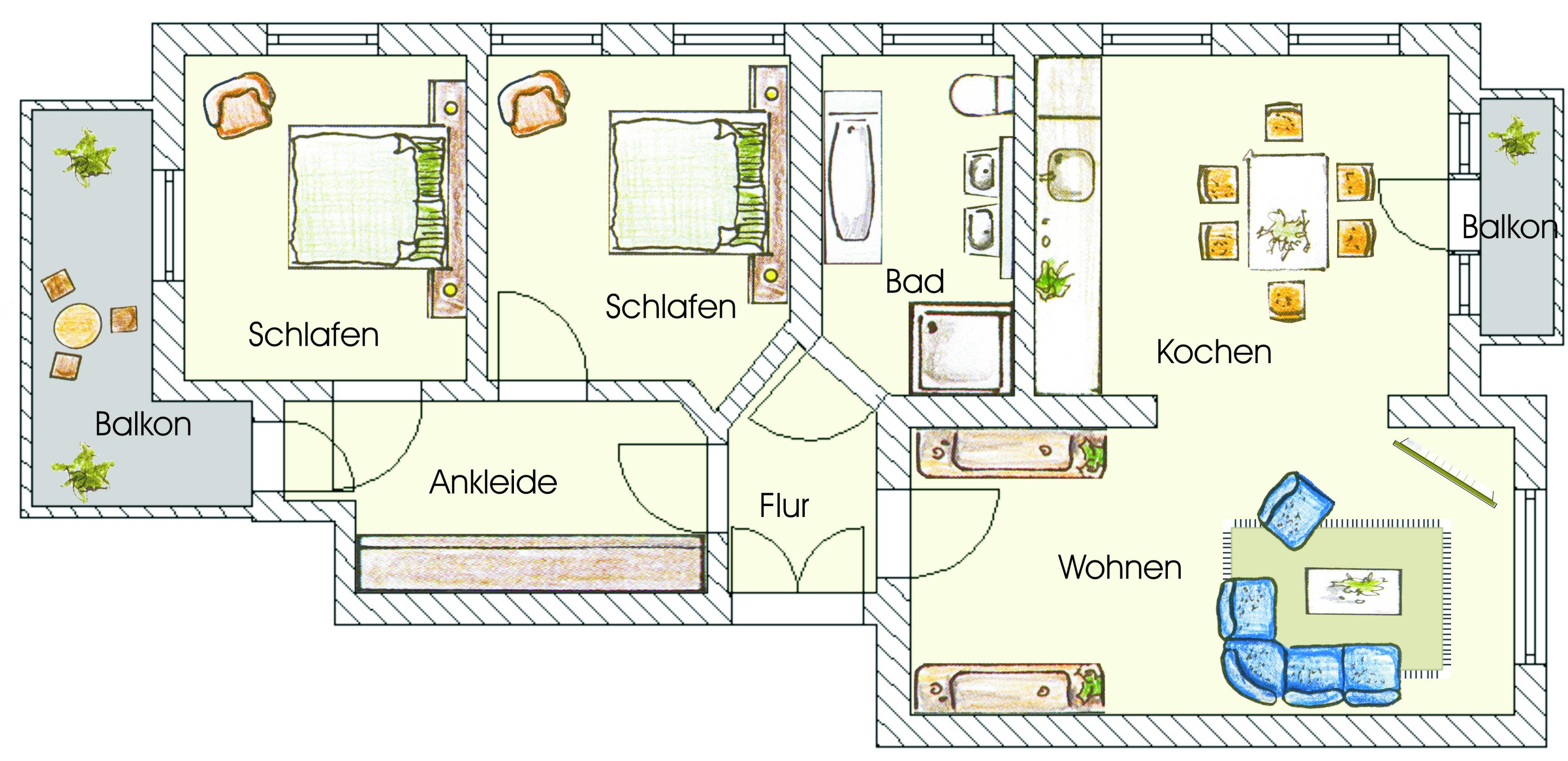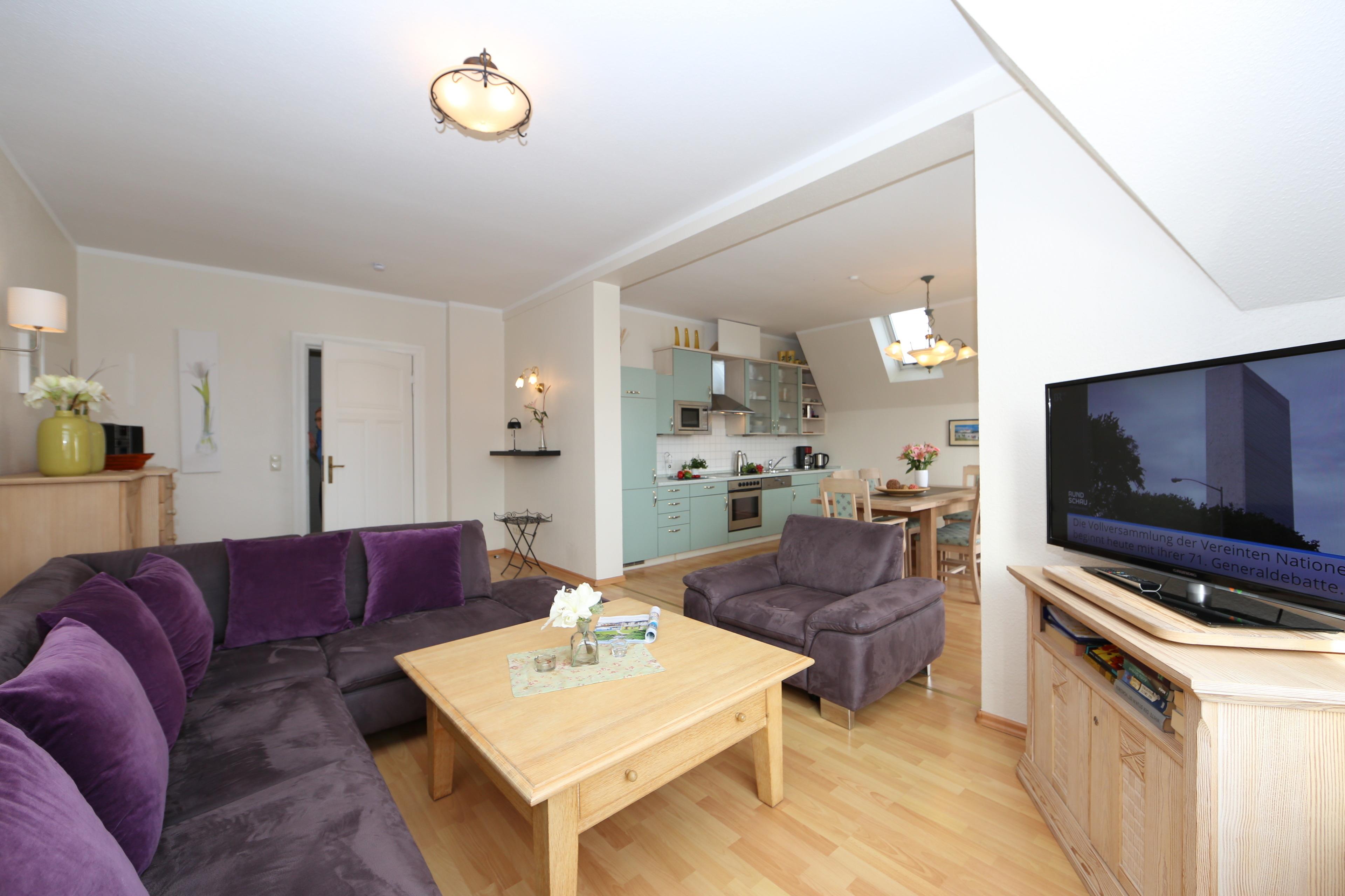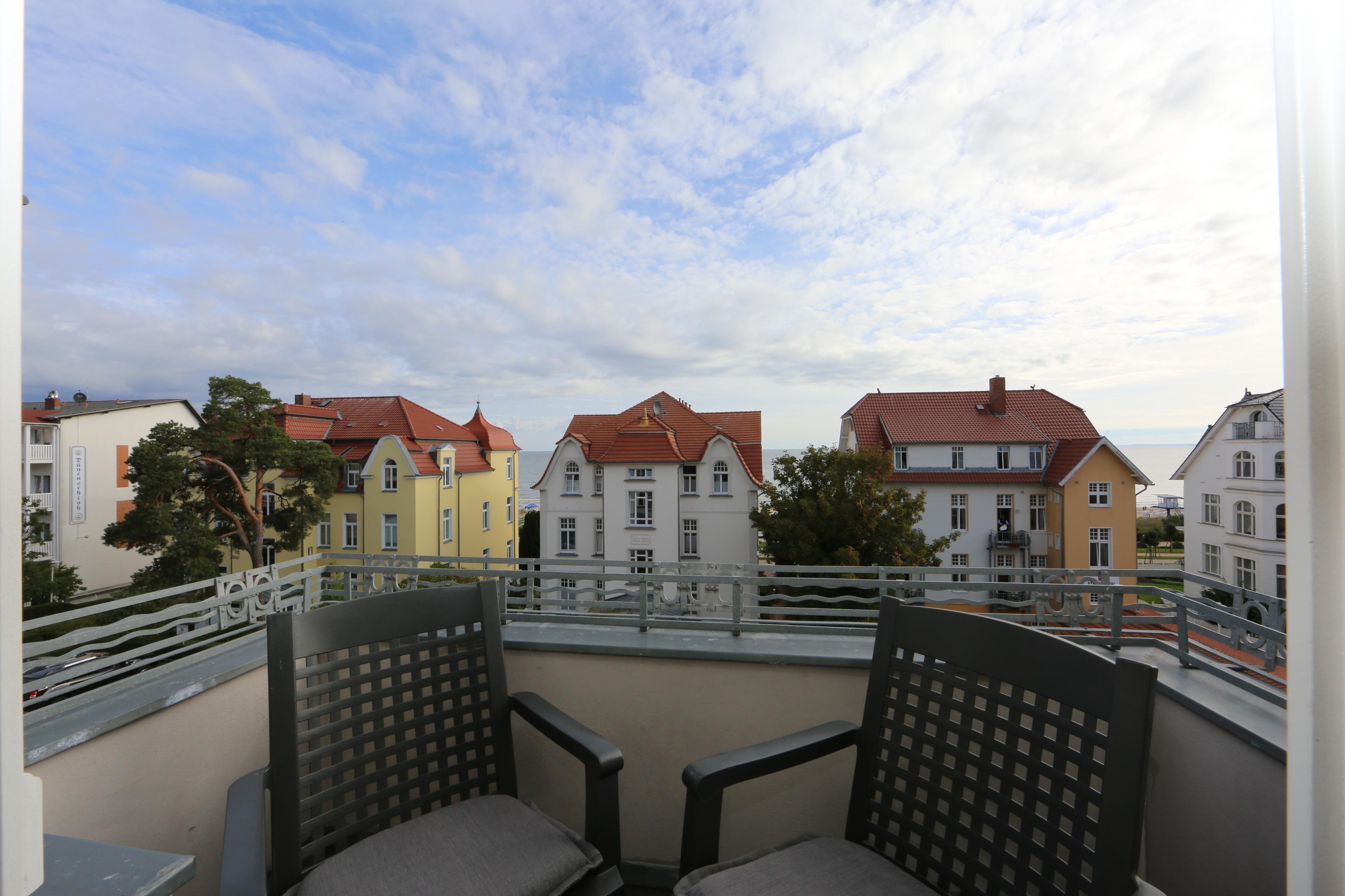 Dieses 105 qm große 3 Zimmer Appartement befindet sich im 2. Obergeschoss. Aus dieser Höhe genießen Sie einen traumhaften Blick auf die Ostsee. Hier können 2-4 Personen Ihren Urlaub ganz nah am Meer verleben. Im großzügigen, zur Ostsee ausgerichteten Wohnraum finden Sie eine gemütliche Polsterecke mit großem Flat TV. Darüber hinaus beherbergt der Wohnraum die Vollküche incl. Kühlschrank, Geschirrspüler, Ceranfeld mit Backofen, Mikrowelle etc. sowie einen großen Essplatz, der viel Platz für gemeinsame Mahlzeiten bietet. An den Essplatz grenzt ein kleiner Balkon zum Meer mit Blick auf die Bansiner Seebrücke. Beide Schlafräume sind jeweils mit einem Doppelbett mit getrennten Matratzen (90 x 200) eingerichtet. Ein großer Kleiderschrank befindet sich in dem vor den Schlafzimmern befindlichen Flur. Von hier aus können Sie auch den südlich ausgerichteten Balkon mit Blick in den Buchenpark begehen, der viele Sonnenstunden verspricht. Ein großes Badezimmer mit Fenster erfreut Sie mit Badewanne und Dusche sowie Waschtisch/WC.