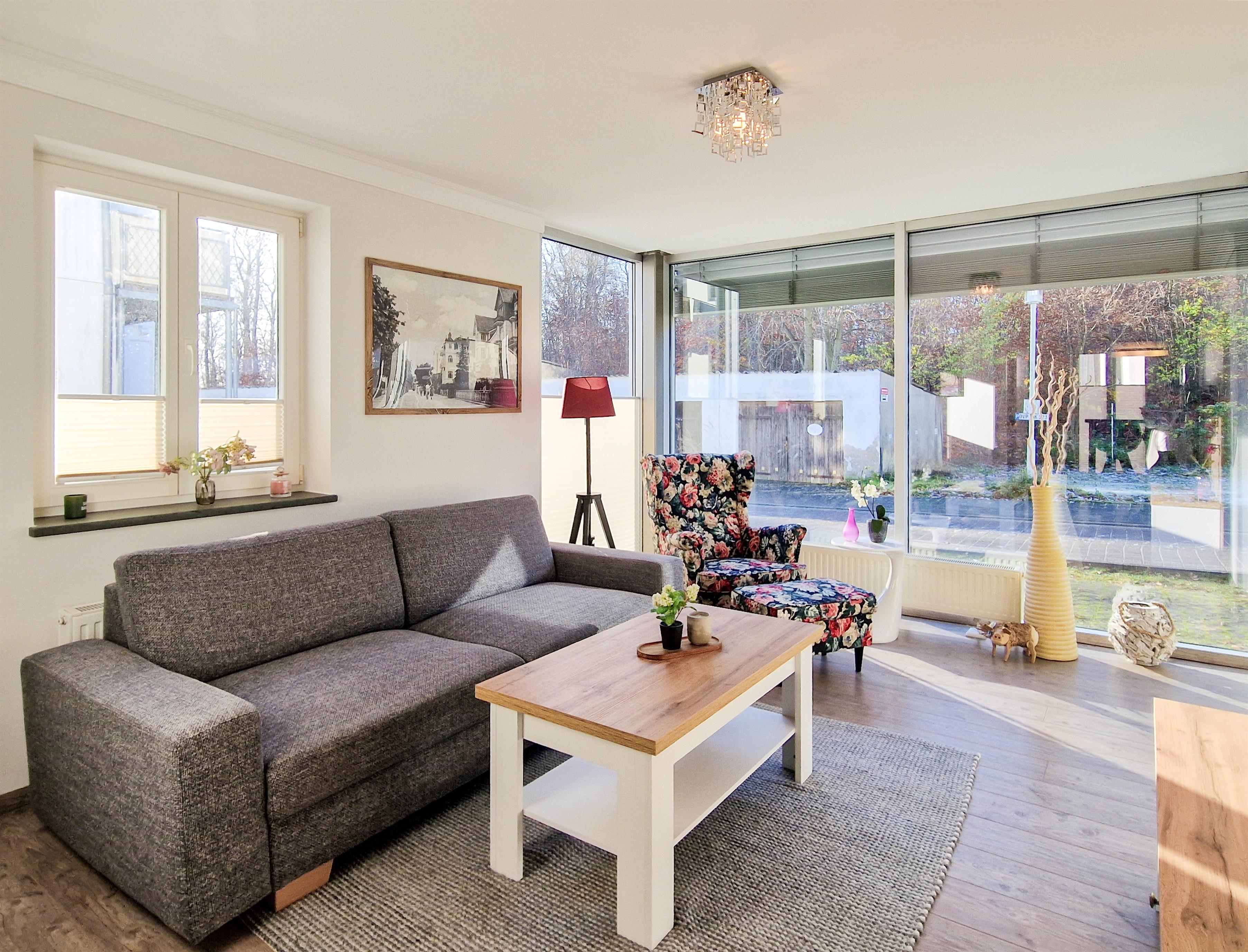 Diese gemütliche 3-Raum-Wohnung liegt im Erdgeschoss mit einer sonnigen Terrasse in Richtung Buchenwald. Im Wohnbereich befinden sich eine Couchecke, Couchtisch und TV. Die an den Wohnbereich angrenzende Küche ist mit einem Bistrotisch und 4 Barhockern eingerichtet und verfügt über Herd mit Backofen, Kühlschrank, Mikrowelle, Geschirrspüler etc. Beide Schlafzimmer sind mit einem Doppelbett mit getrennten Matratzen (80 x 200) sowie einem Kleiderschrank möbliert. Das Bad ist mit einer Dusche mit Echtglasabtrennung und Waschtisch/WC ausgestattet. Ein Pkw-Stellplatz steht Ihnen auf dem Grundstück zur Verfügung. Bitte beachten Sie, dass Kinder erst ab 12 Jahren in dieser Wohnung gestattet sind.