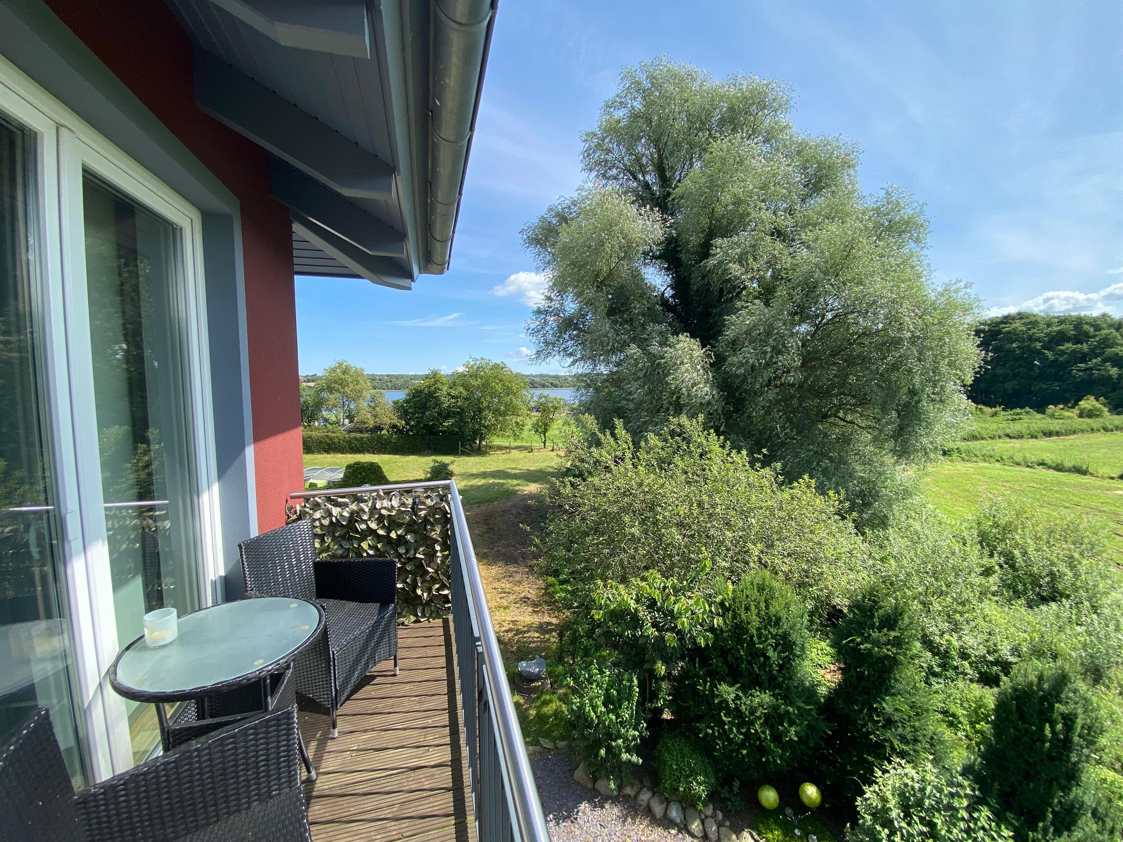 * vom Balkon aus, ein unverwechselbarer Blick auf den Bansiner Gothensee, Wiesen und Wälder