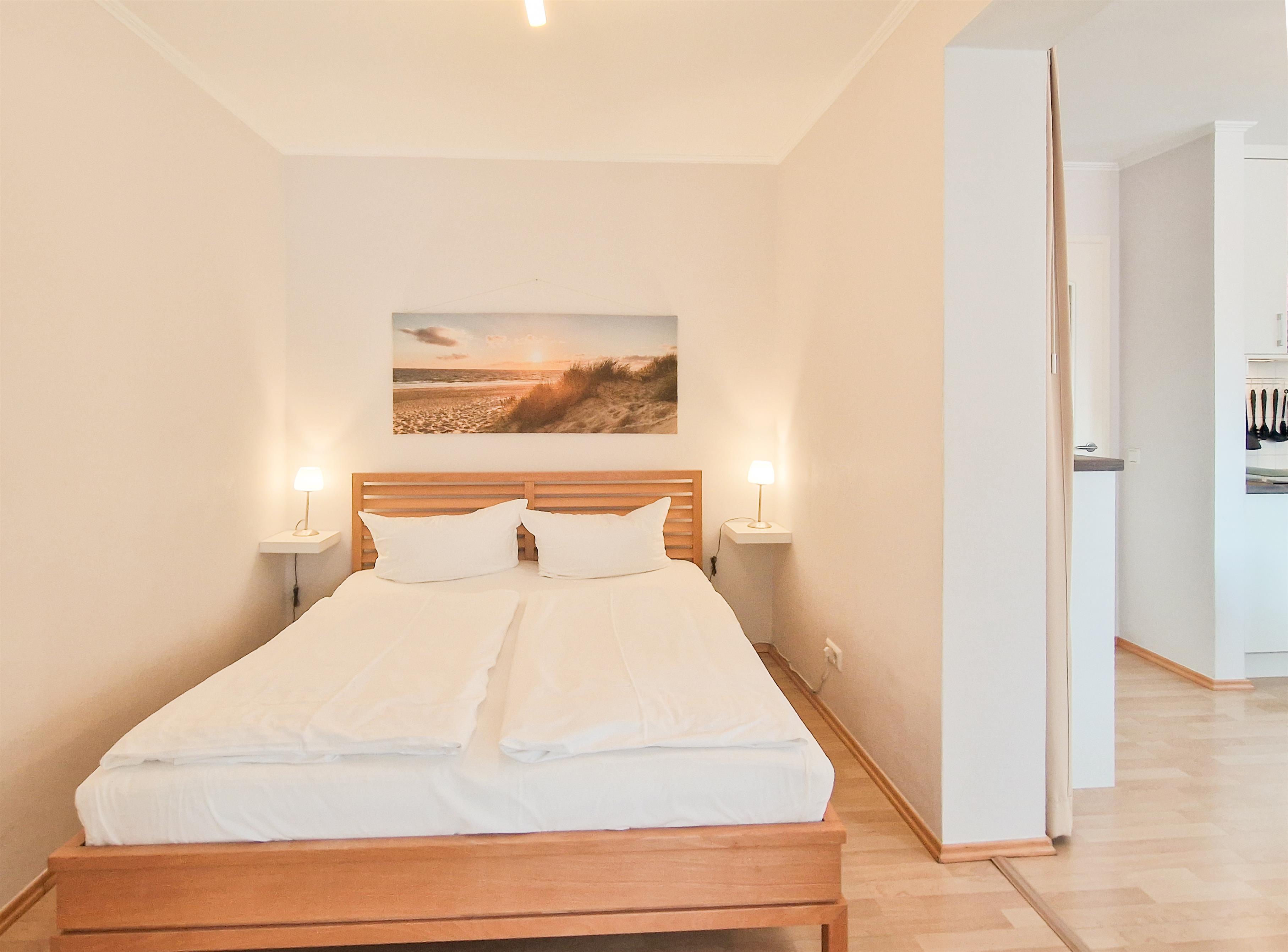 Dieses gemütliche Appartement ist 43 qm groß und liegt im Souterrain. Der Wohnbereich mit offener Pantryküche und einem Esstisch ausgestattet. Die angrenzende Loggia (geschlossen, aber Fenster lassen sich öffnen) ist mit einer gemütlicher Couch mit Schlaffunktion (Liegefläche 135 x 200) sowie eine kleinen Sitzecke mit zwei Sesseln und Flat TV eingerichtet. Der an das Wohnzimmer angrenzende, nicht völlig separate Schlafbereich ist mit einem Doppelbett und einem Kleiderschrank ausgestattet. Das Bad ist mit einer Dusche und Waschbecken/WC ausgestattet. Ein Pkw-Stellplatz befindet sich auf dem Grundstück und ist der Wohnung zugeordnet. Waschmaschine, Trockner und Fahrradabstellraum finden Sie im Keller.