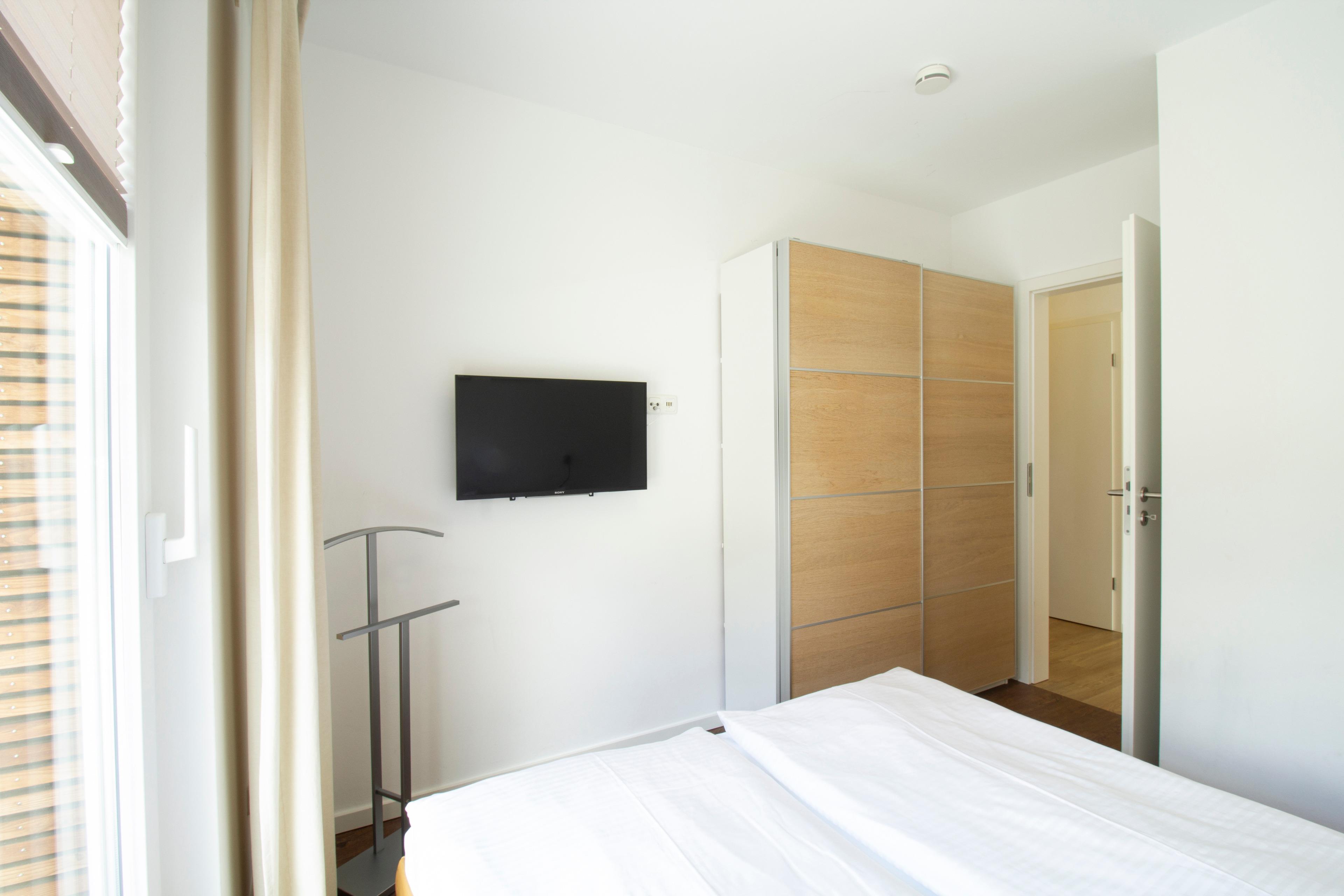 Dieses moderne 3-Zimmer-Appartement befindet sich im 2. Obergeschoss und eignet sich mit seinen 69 m² für maximal 4 Personen. Der lichtdurchflutete Wohnraum ist mit einem gemütlichen Sofa, Sessel und TV eingerichtet. Ebenfalls offen im Wohnraum integriert ist die Vollküche inkl. Backofen, Ceranfeld, Kühlschrank, Mikrowelle, Geschirrspüler etc. und ein großer Essplatz, der zu gemeinsamen Mahlzeiten einlädt. Vom Wohnzimmer gelangen Sie auf die umlaufende Dachterrasse in südöstlicher Ausrichtung, die Sie bereits zum Frühstück ins Freie lockt. Beide Schlafzimmer sind mit einem Doppelbett (140x200 bzw. 160x200) und genügend Schrankraum ausgestattet. Die Dachterrasse zum Südwesten betreten Sie auch über eines der Schlafzimmer. Das komfortable Badezimmer mit Fenster verfügt über eine bodengleiche Dusche mit Echtglasabtrennung und Doppelwaschtisch/WC.