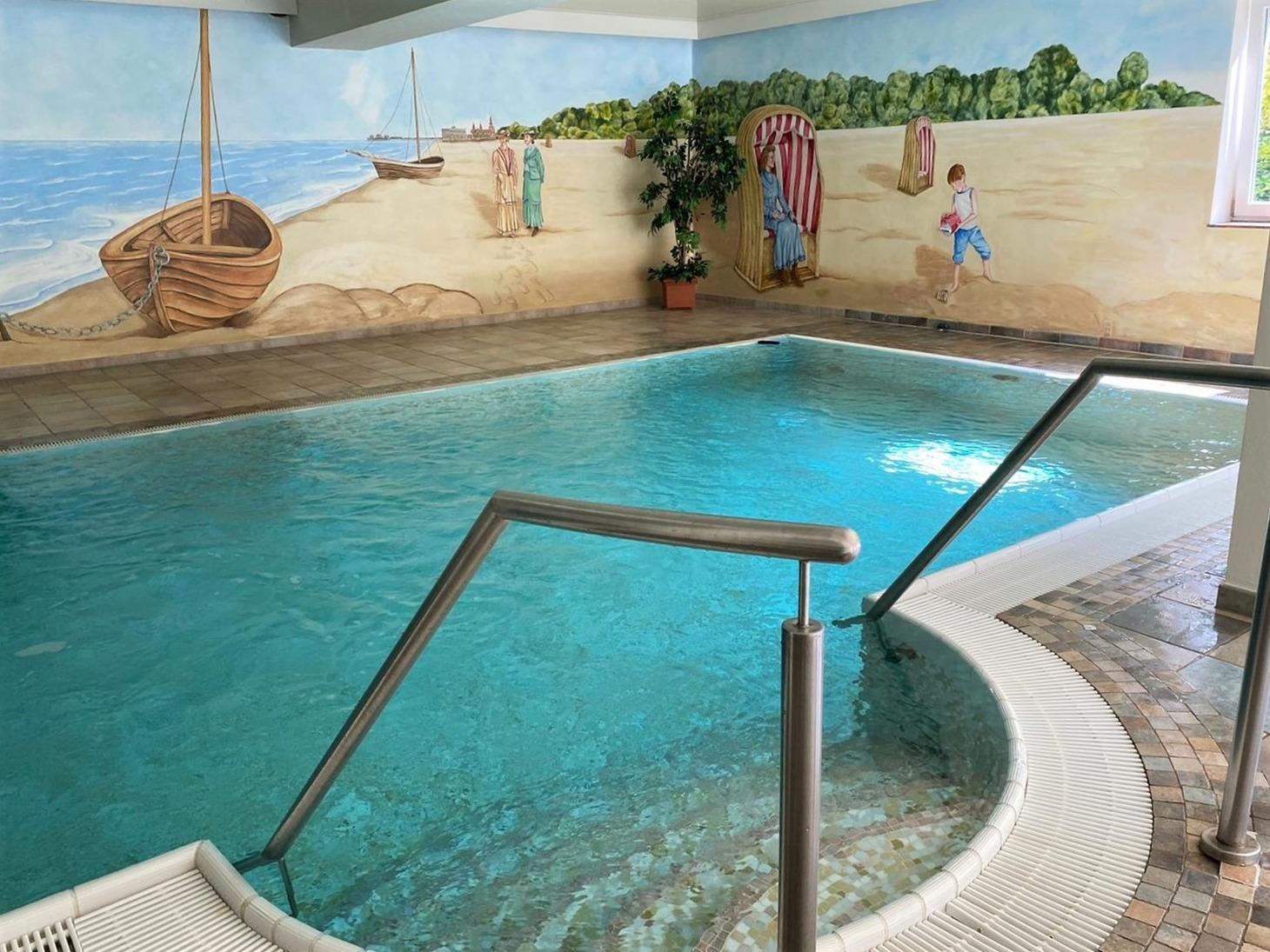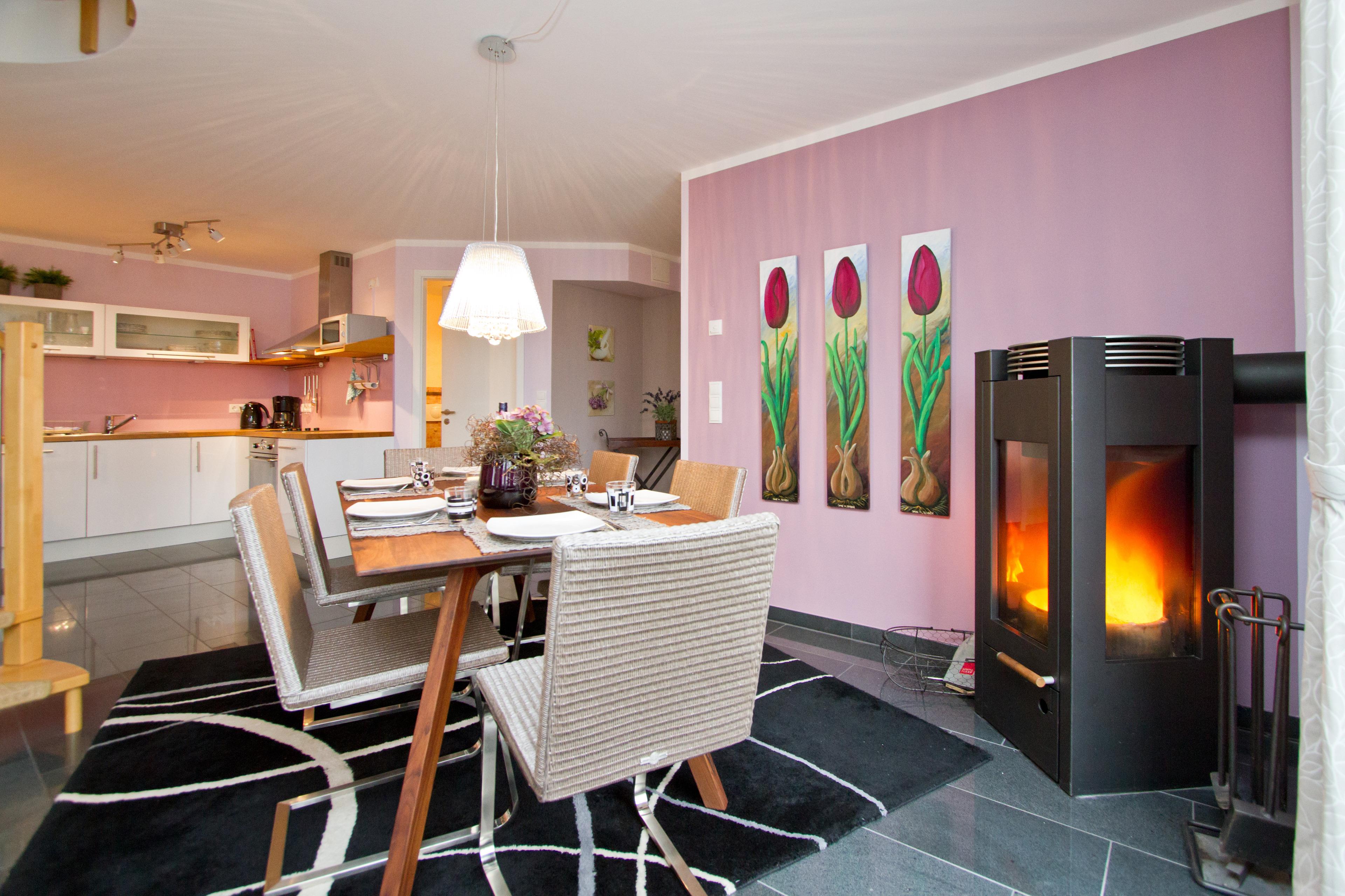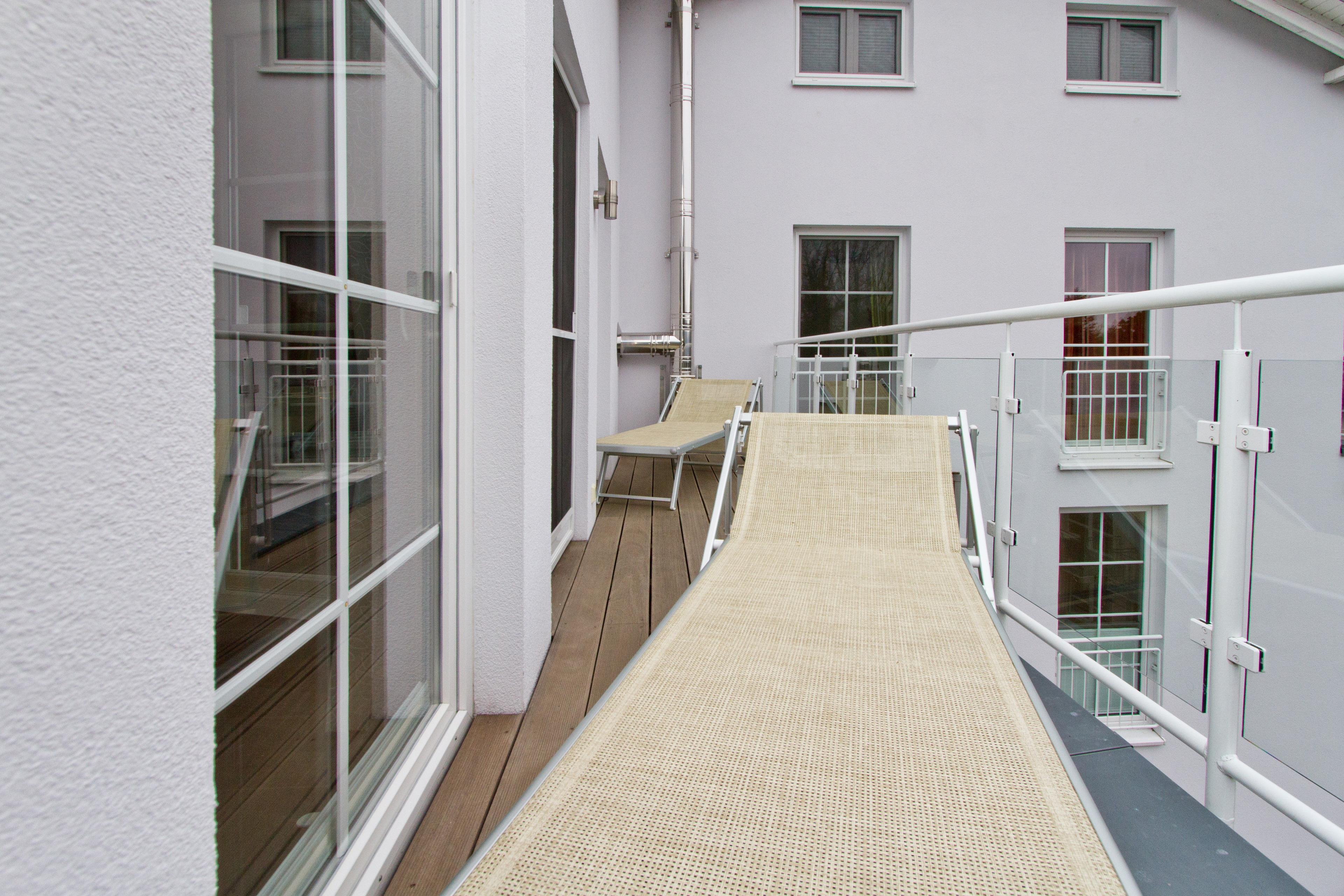 Dieses komfortable und geschmackvoll eingerichtete 4-Zimmer Appartement bietet auf 108 m², verteilt auf zwei Ebenen, viel Platz für einen erholsamen Urlaub am Meer. 4 Erwachsene und 2 Kinder (bis 14 Jahre) finden hier das perfekte Urlaubsdomizil für die ganze Familie oder Freunde. Die ganzjährige Nutzbarkeit des sehr großzügigen Wellnessbereiches trägt ebenfalls zum Erholungswert für die Gäste bei – und das zu jeder Jahreszeit. Der moderne Wohnbereich mit viel Fensterfläche ist mit einer bequemen Sitzgarnitur, Couchtisch, Flat-TV und einem großzügigen Essplatz für gemeinsame Mahlzeiten eingerichtet. An kühleren Tagen sorgt der Kamin zusätzlich für Gemütlichkeit und behagliche Wärme. Die Küche mit Cerankochfeld, Backofen, Mikrowelle, Geschirrspüler, Kühlschrank etc. ist offen im hinteren Wohnbereich integriert. Eines der Highlights dieser Wohnung sind die zwei Balkone, die beide vom Wohnraum zu begehen sind. Der Ostbalkon lockt die Gäste schon zum Frühstück ins Freie, der Südbalkon verspricht viele entspannende Sonnenstunden und einen schönen Blick in den Gartenbereich. Ebenfalls im 3. Obergeschoss steht den Gästen ein Schlafzimmer mit Doppelbett, reichlich Schrankraum und einem zusätzlichen TV zur Verfügung. Das Bad auf der unteren Ebene ist mit einer Dusche mit Echtglasabtrennung und Waschtisch/WC ausgestattet. Über eine Wendeltreppe aus dem Wohnbereich erreichen Sie das 4. Obergeschoss mit zwei weiteren abgeschlossenen Schlafzimmern. Das größere Schlafzimmer ist ähnlich wie das untere mit einem Doppelbett, Kleiderschrank und zusätzlichem TV eingerichtet. Das kleinere Schlafzimmer bietet zwei Kindern ein ausziehbares Doppelbett und einen Kleiderschrank. Im oberen Bereich steht den Gästen ein großzügiges Bad mit Badewanne (mit Duschabtrennung) und Waschtisch/WC zur Verfügung. Einen Pkw-Stellplatz in der hauseigenen Tiefgarage können die Gäste nutzen. Mitgebrachte Fahrräder können sicher im Fahrradkeller abgestellt werden.
