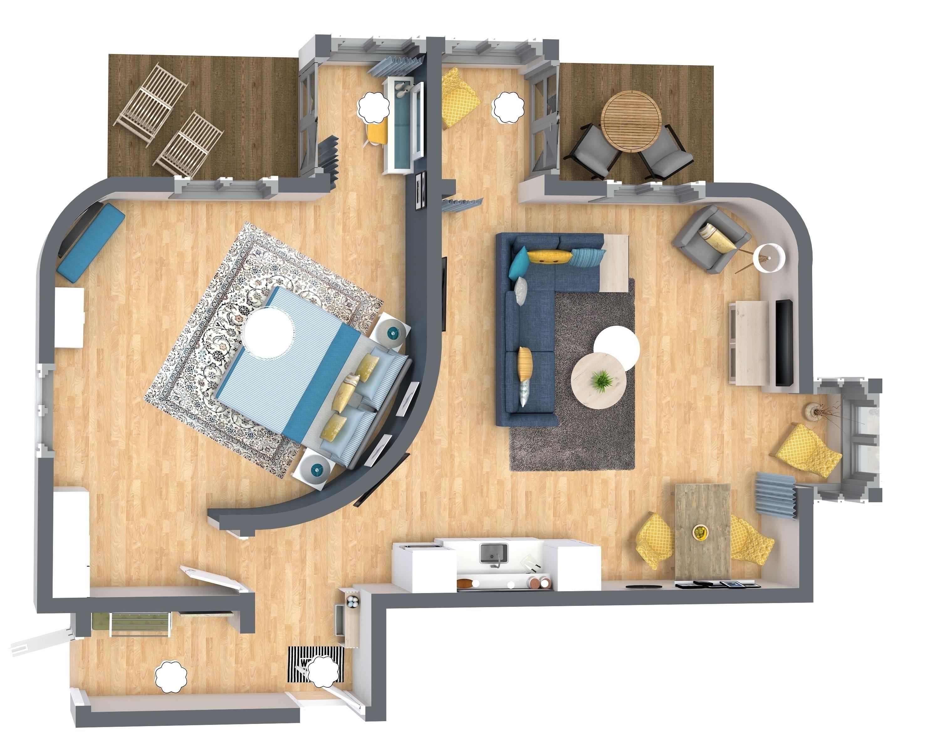 Die mit 79 qm großzügige 2-Zimmer Wohnung im 1. Obergeschoss besticht in jeder Hinsicht durch die tolle Lage und die komfortable Ausstattung. Die der ursprünglichen Architektur entsprechenden Ausstattung der Appartements ist elegant und anspruchsvoll und lässt den Alltag schnell verfliegen. Hochwertige moderne Möbel, gepaart mit Komfort, prägen das Wohn- und Wohlgefühl. Der stilvolle Wohnbereich ist mit einer gemütlichen Sitzecke (mit Schlaffunktion für eine dritte Person) eingerichtet. Die hohen Fenster spenden viel Licht. Der kleine Erker ist ein lauschiges Plätzchen zum Lesen oder Träumen. Hier sitzen Sie in der ersten Reihe, um das Treiben rund um die Konzertmuschel zu beobachten. Ein Flat TV sowie eine Stereoanlage incl. IPod Docking Station sorgen für Unterhaltungsgenuss. Eine kleine Küchenzeile mit Geschirrspüler, Backkofen/Mikrowelle, Kühlschrank und halbem Cerankochfeld sowie ein Essplatz sind ebenfalls offen im Wohnbereich integriert. Im geräumigen Schlafzimmer befinden sich ein Doppelbett mit getrennten Matratzen (90x200, Topper durchgehend) sowie Schrankraum für Ihre Kleidung und Gepäck. Am Sekretär im kleinen Erker schreiben Sie Ihre Urlaubsgrüße. Im modernen, hellen Tageslichtbad entspannen Sie in der Eckbadewanne. Dusche, Waschbecken und WC ergänzen den Komfort. Zwei kleinere Balkone laden zum Verweilen ein, auf einem der Balkone können Sie die Abendsonne genießen, von dem anderen einen Blick auf das Meer erhaschen. Für Ihren Komfort befindet sich ein Aufzug im Haus und ein Fahrradkeller, den Sie nutzen können. Der Pkw- Stellplatz befindet sich im Parkhaus, ca. 5 min fußläufig entfernt.