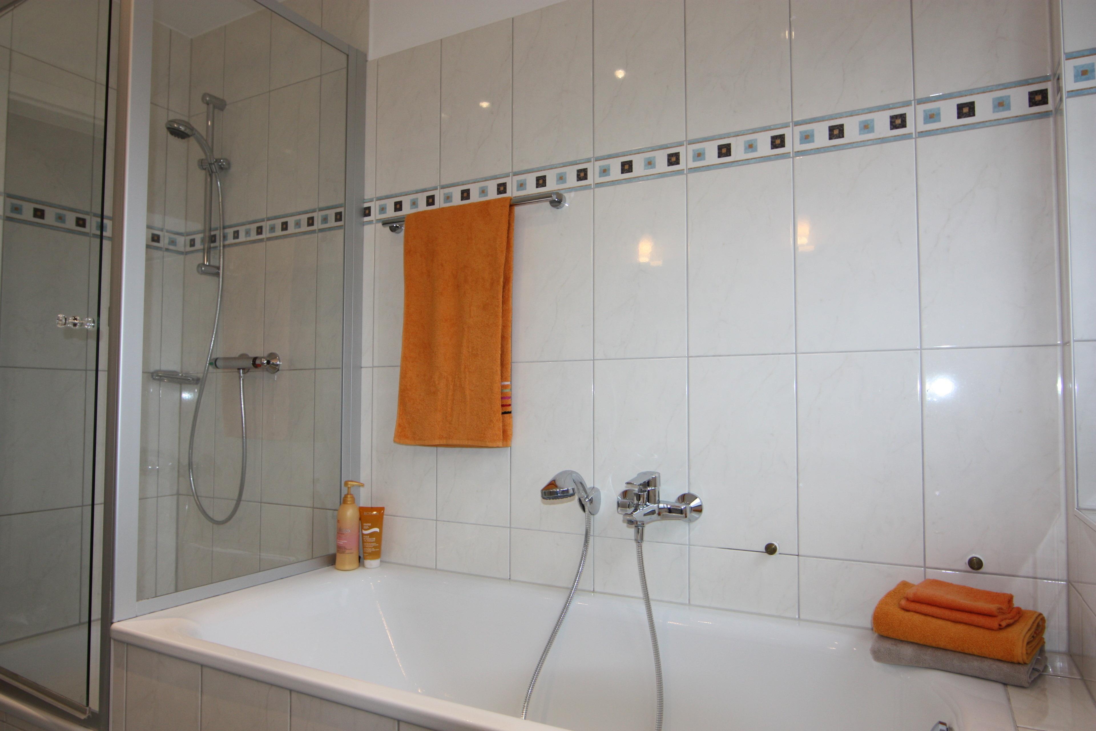 Dieses 60 qm große 3-Zimmer Appartement im Erdgeschoss eignet sich für 2 bis maximal 4 Personen. Im Wohnzimmer finden Sie eine gemütliche Couchecke mit Radio/TV, sowie einen separaten Essplatz. Die Vollküche mit Geschirrspüler, Ceranfeld, Backofen pp. ist ebenfalls offen im Wohnraum integriert. Die zum Süden ausgerichtete Terrasse ist vom Wohnraum zu begehen. Das größere Schlafzimmer ist mit einem Doppelbett mit getrennten Matratzen, das kleinere mit zwei Einzelbetten jeweils 0,90 x 2,00 m und einem Kleiderschrank ausgestattet. Im Wohnzimmer kann die Doppelbettcouch zum Schlafen genutzt werden. Das Bad bietet Dusche, sowie Badewanne und einen Doppelwaschtisch. Das WC mit Waschgelegenheit ist separat. Der Pkw-Stellplatz befindet sich auf dem Grundstück und ist der Wohnung zugeordnet. Im Keller finden Sie einen Fahrrad-Abstellraum, Münzwaschmaschine und Münztrockner.