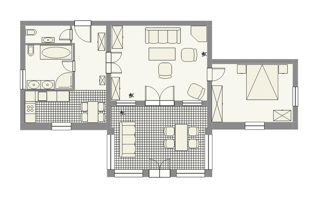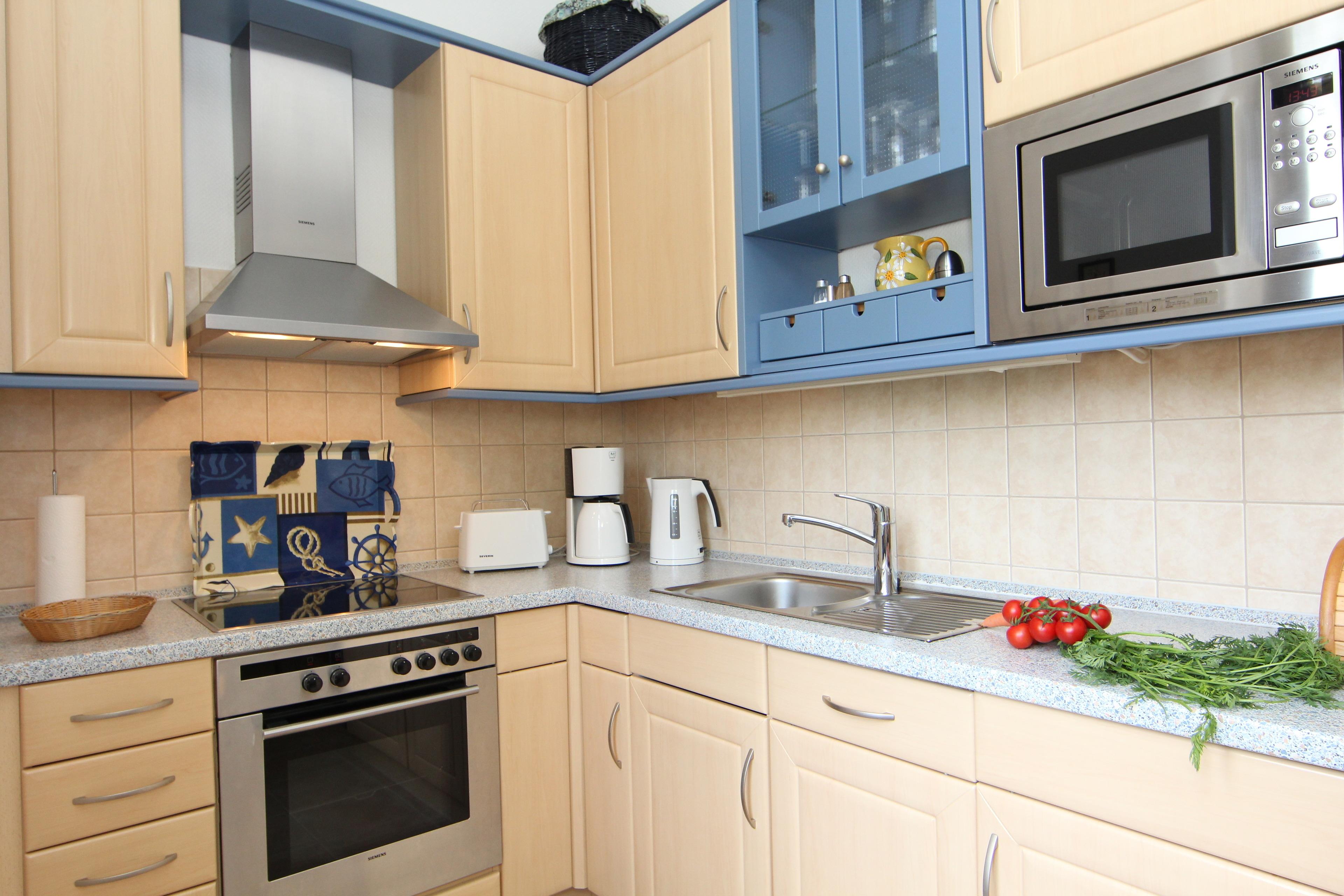 Dieses gepflegte und hochwertig eingerichtete Zwei-Zimmer Appartement verspricht mit seinen 88 qm 2 bis 4 Personen nicht zuletzt durch seine Großzügigkeit einen angenehmen Urlaubsaufenthalt. Es befindet sich im Erdgeschoss auf der erhöhten Seite der Delbrückstraße, so dass Sie selbst aus dem Erdgeschoss einen freien Blick genießen können. Das Wohnzimmer, das in dieser Wohnung eindeutig den Mittelpunkt bildet, ist mit einer bequemen Ledergarnitur eingerichtet. Ein Flat-TV ist selbstverständlich. Die angrenzende Loggia in nord-östlicher Ausrichtung beherbergt einen großen Essplatz sowie eine weitere Couch, die bei Bedarf zum Schlafen genutzt werden kann. Die Loggia mit ihrer riesigen Fensterfront und viel Lichteinfall von drei Seiten lädt zu jeder Tageszeit zum Relaxen ein. Über einige Stufen erreicht man von hier aus die möblierte Terrasse, die von der Straße durch eine Hecke herrlich abgeschirmt wird. Die separate Küche ist mit einer Einbauküche inkl. Backofen, Ceranfeld, Kühlschrank, Geschirrspüler, Mikrowelle pp. und einem zusätzlichen kleinen Essplatz ausgestattet. Das geräumige Schlafzimmer ist mit einem Doppelbett mit getrennten Matratzen (90 x 200) und ausreichend Schrankraum eingerichtet. Im Badezimmer stehen den Gästen Badewanne und Dusche, Doppelwaschtisch und WC zur Verfügung. Darüber hinaus gibt es in der Wohnung eine zusätzliche Gästetoilette. Der Pkw-Stellplatz befindet sich auf dem Grundstück und ist der Wohnung zugeordnet.
