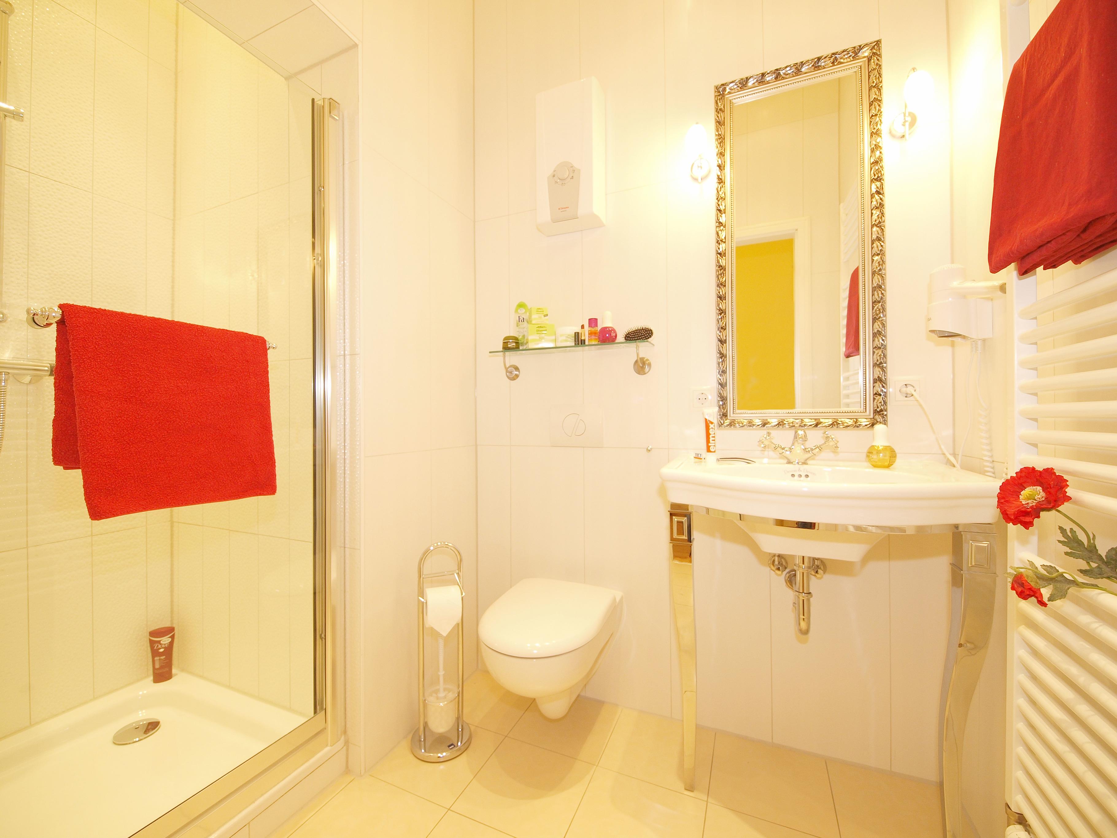 Eine Waschmaschine ist gegen Gebühr nutzbar und befindet sich im Keller (seitlich rechts neben den Fahrradständern). Ihre eigenen oder geliehenen Fahrräder können Sie in einem der jeweiligen Ferienwohnung separat zugeordneten, abschließbaren Fahrradschuppen geschützt unterbringen.
