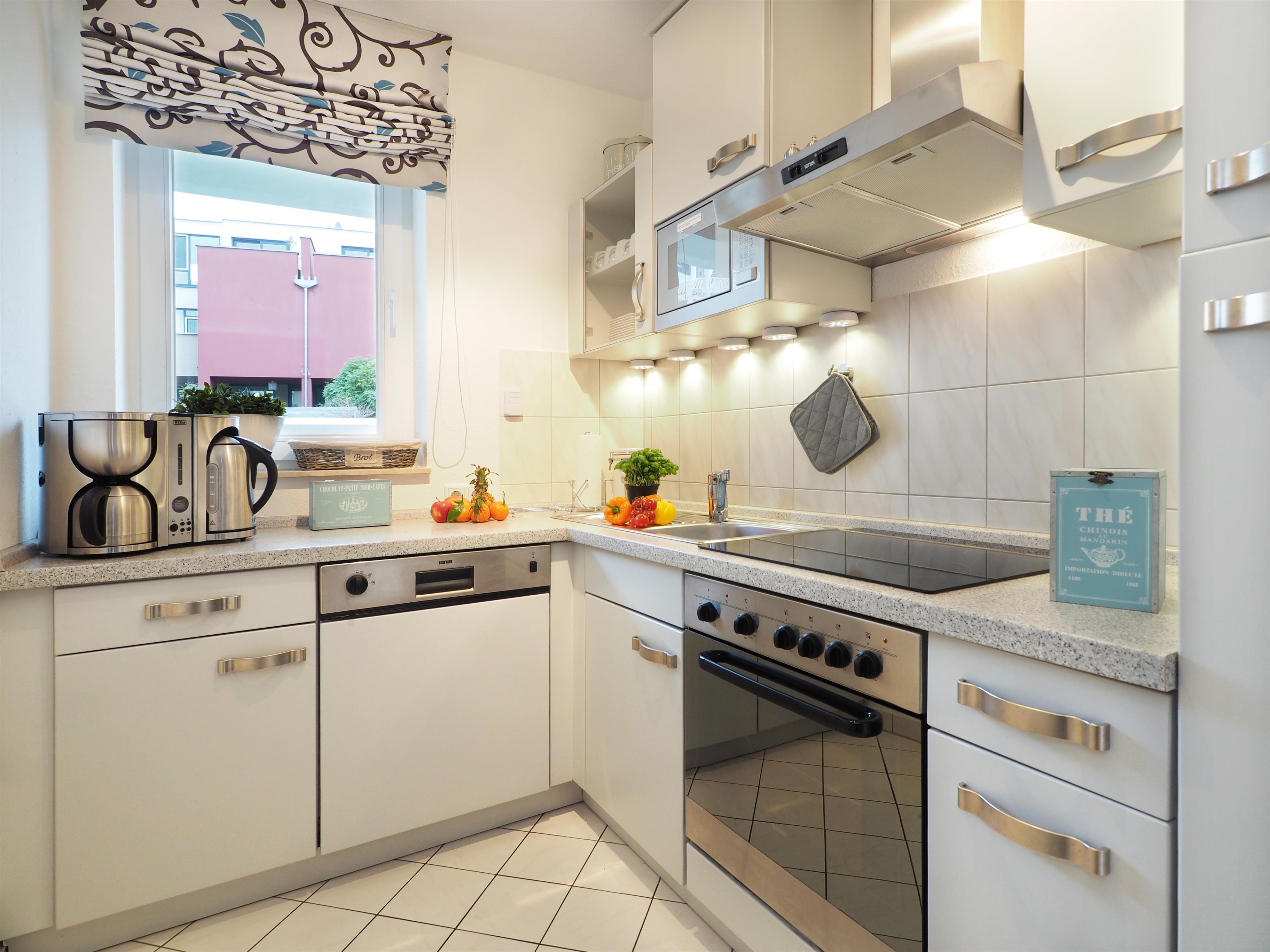 Dieses neu renovierte und gemütlich eingerichtete Zwei-Zimmer-Appartement für 2-4 Personen befindet sich im Erdgeschoss und verfügt über einen vom Wohnzimmer begehbaren überdachten Balkon zur Ostseite. Der großzügige und helle Wohnraum mit seiner gemütlichen Boxspringcouch (Liegefläche 160 x 220) lädt zum Relaxen ein. Die separate und gut ausgestattete Küche verfügt über einen Backofen mit Cerankochfeld, Geschirrspüler, Mikrowelle, Kühl-und Gefrierschrank, Kaffeemaschine etc. Das Schlafzimmer ist mit einem Doppelbett mit getrennten Matratzen (90x200) und ausreichend Schrankraum ausgestattet. Im Bad finden Sie Dusche, Waschtisch und WC, sowie eine Waschmaschine. Ein Pkw-Stellplatz befindet sich auf dem Grundstück und ist der Wohnung zugeordnet, die Fahrräder können die Gäste in einem zur Wohnung gehörenden Schuppen verschließen.