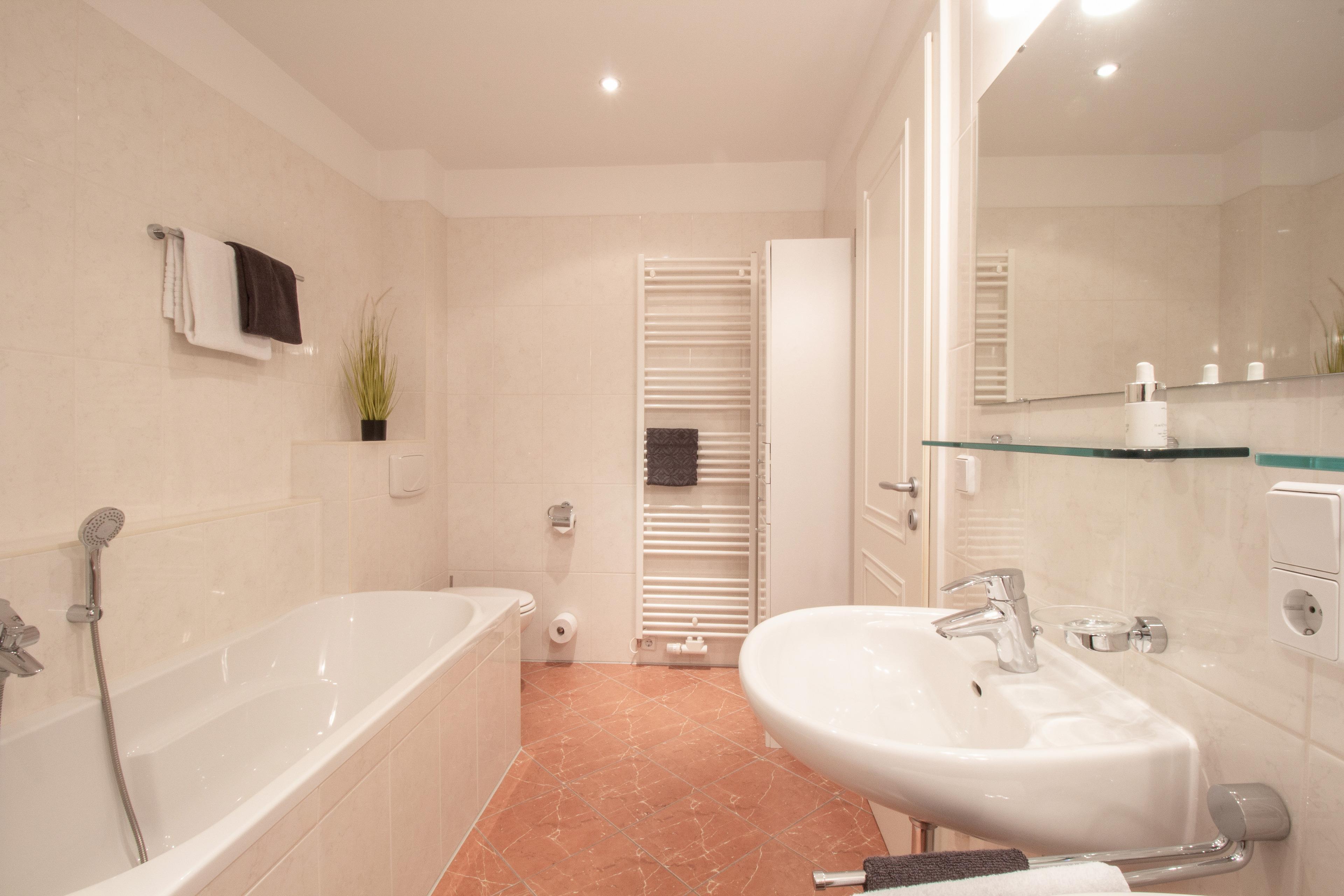Alle Appartements der Villa Jasmin verfügen über einen Balkon und eine Terrasse oder eine Loggia. Kinder freuen sich über den kleinen Spielplatz auf dem Grundstück. Es sind nur ca. 100m bis zum breiten, feinsandigen Strand von Heringsdorf, wo man einen Strandkorb mieten und herrlich baden kann. In nur wenigen Fußminuten erreichen Sie das lebendige Ortszentrum mit seinen zahlreichen Cafés, Restaurants und Einkaufsmöglichkeiten. Von hier aus gelangen Sie umgehend zur Heringsdorfer Seebrücke. Sie ist mit 508 m die längste Seebrücke Deutschlands. Außerdem befinden sich im Zentrum die beliebte Konzertmuschel und der größte Strandkorb der Welt! Waschmaschine und Trockner gegen Gebühr sind im Keller untergebracht. In der Villa Jasmin können Sie einen Fahrradkeller sowie gegen Gebühr Waschmaschine und Trockner nutzen.