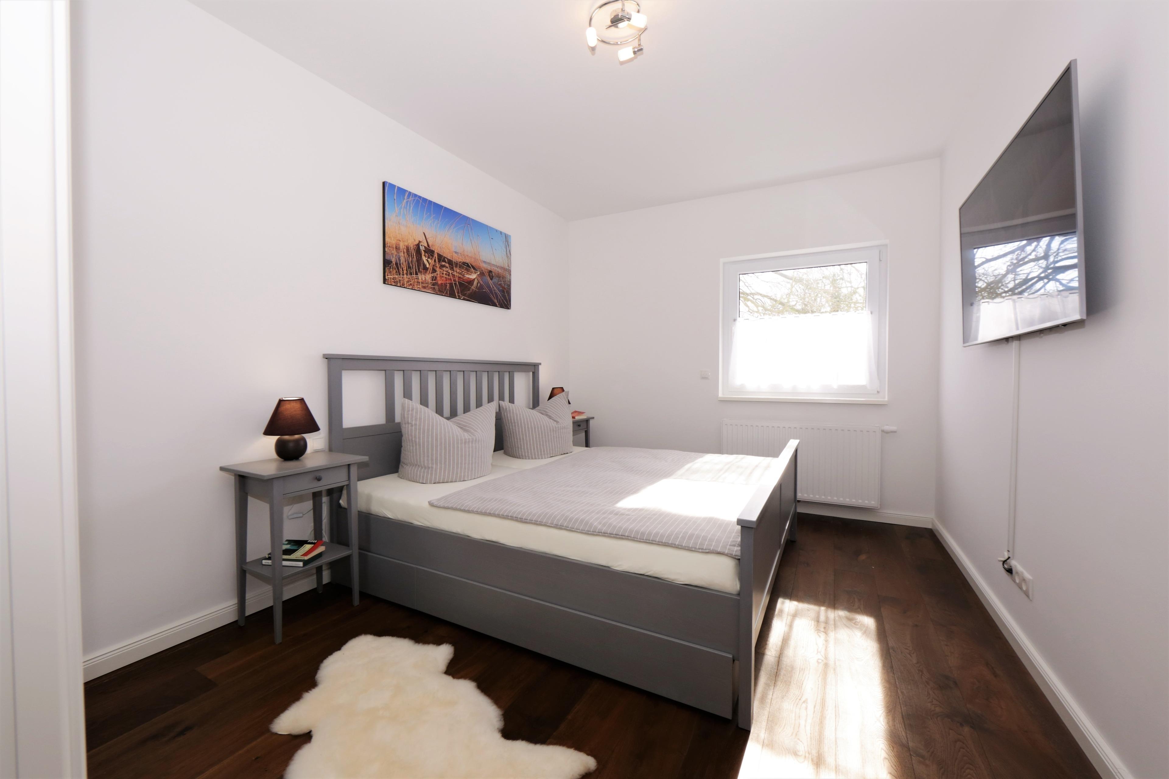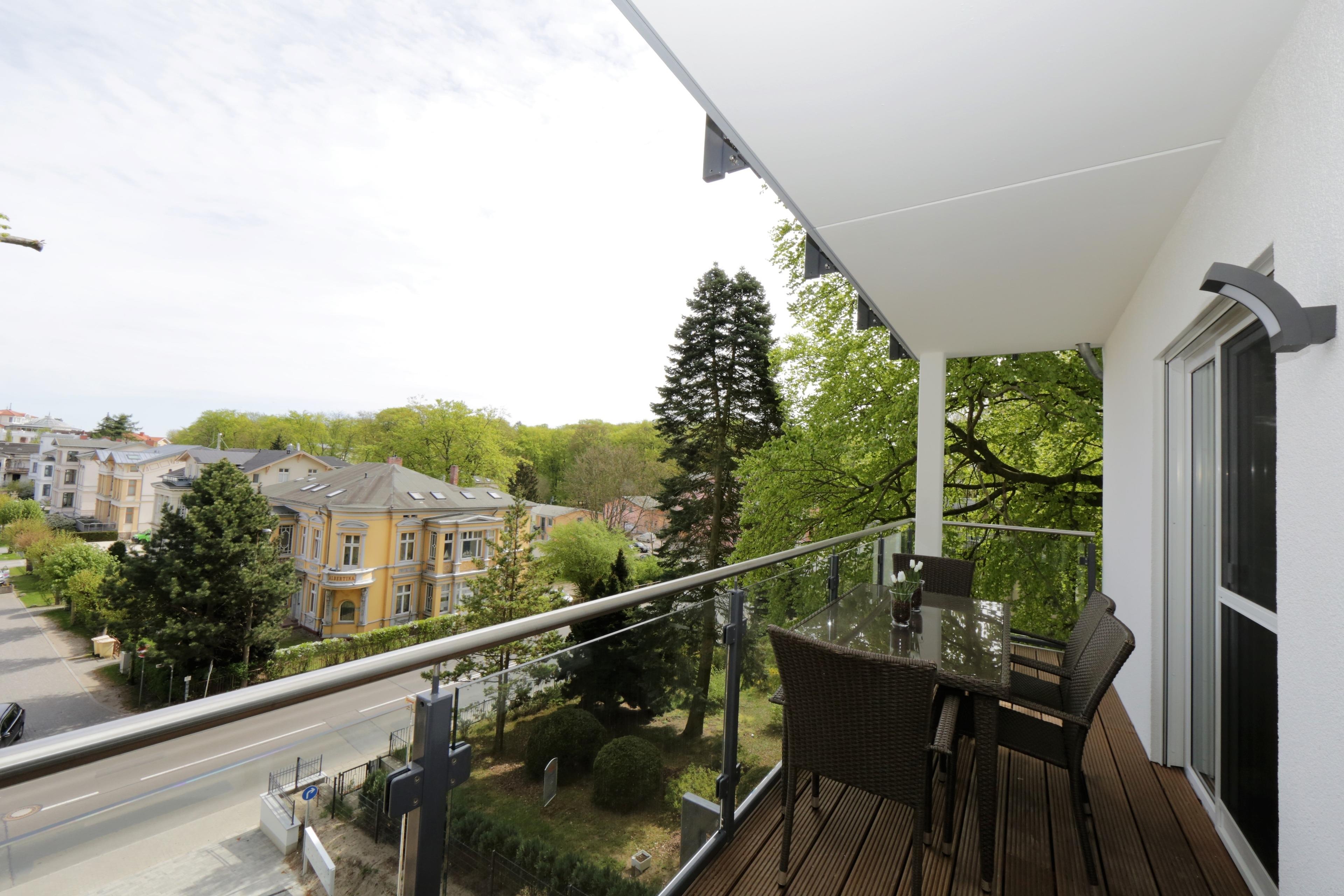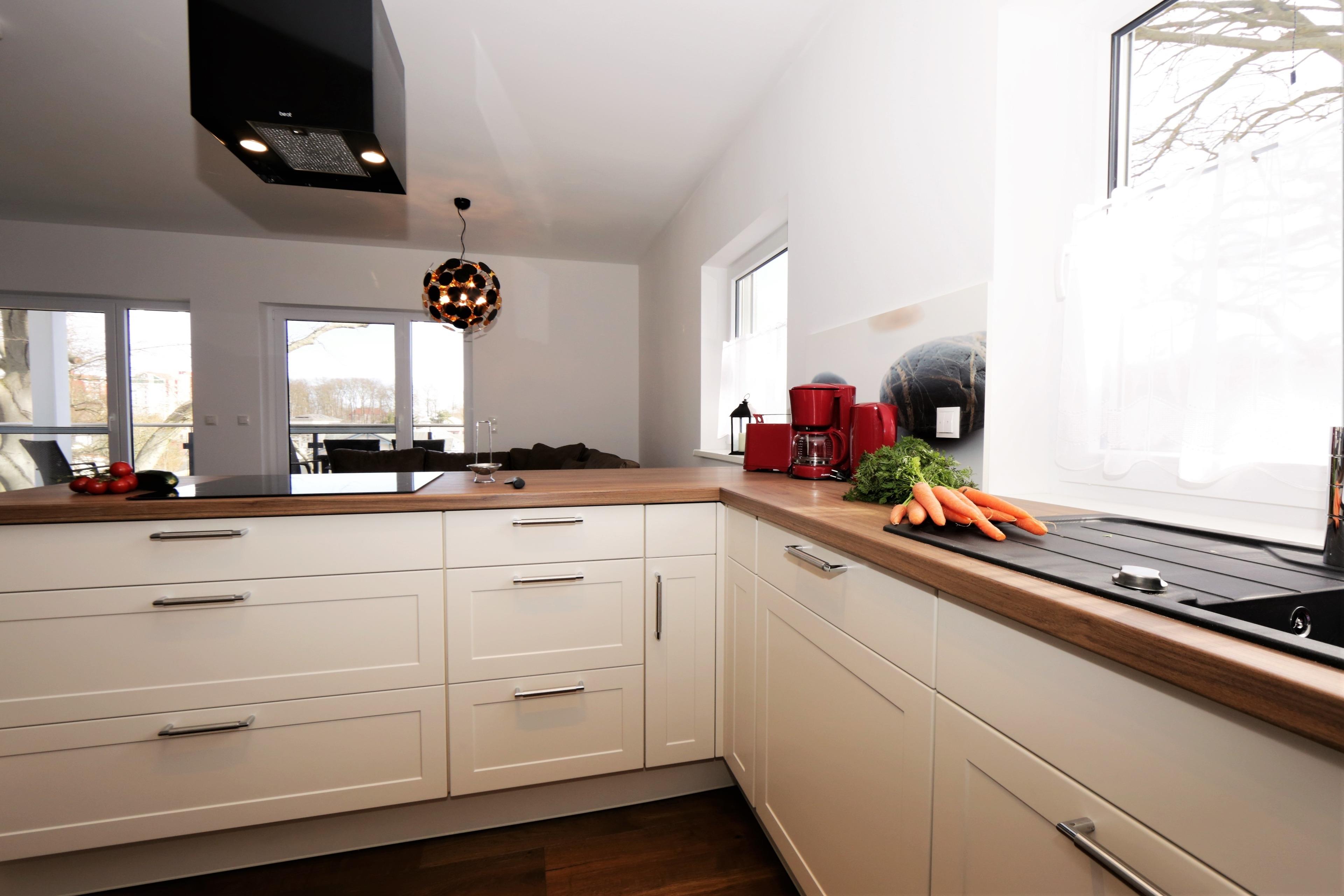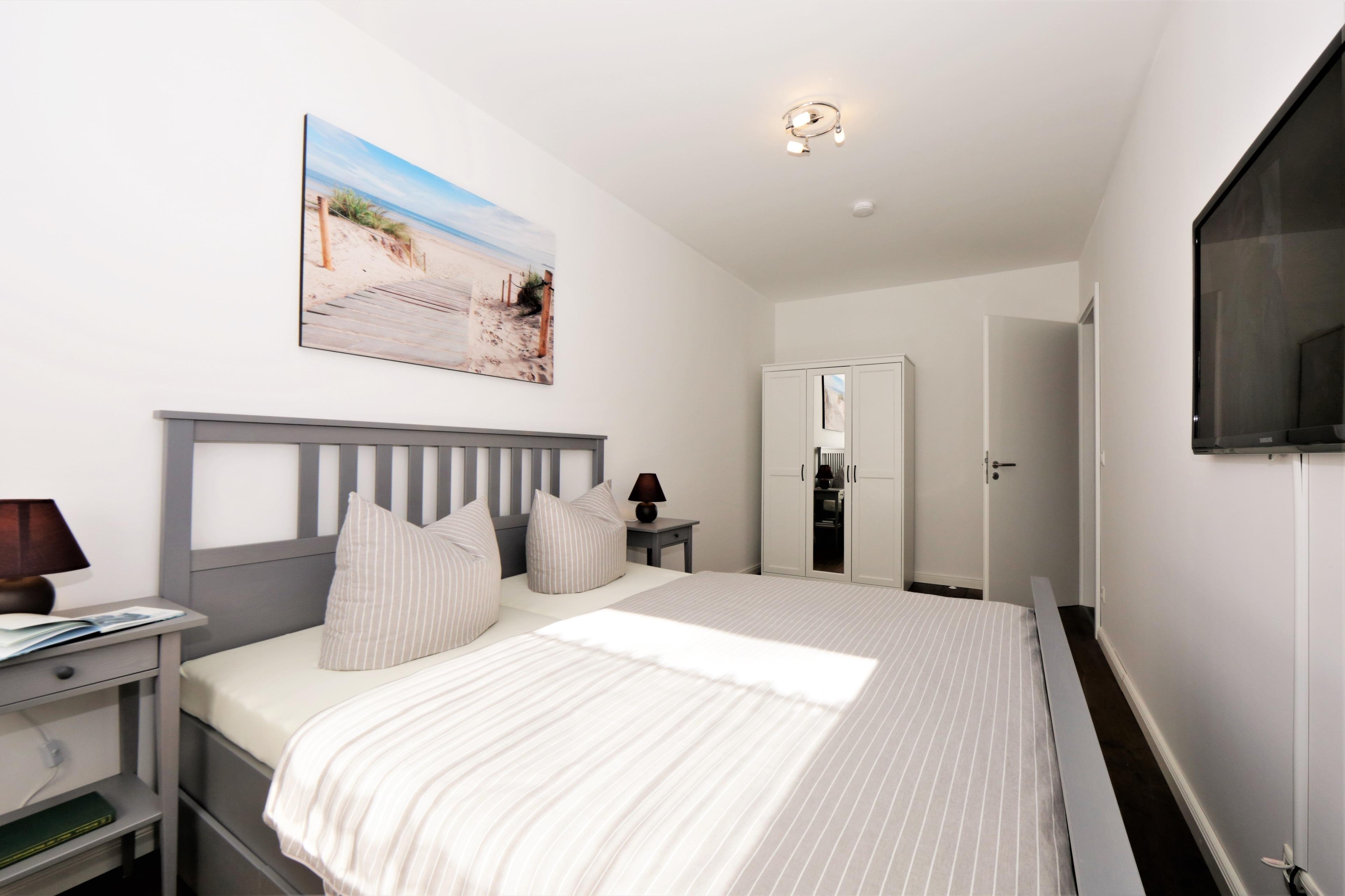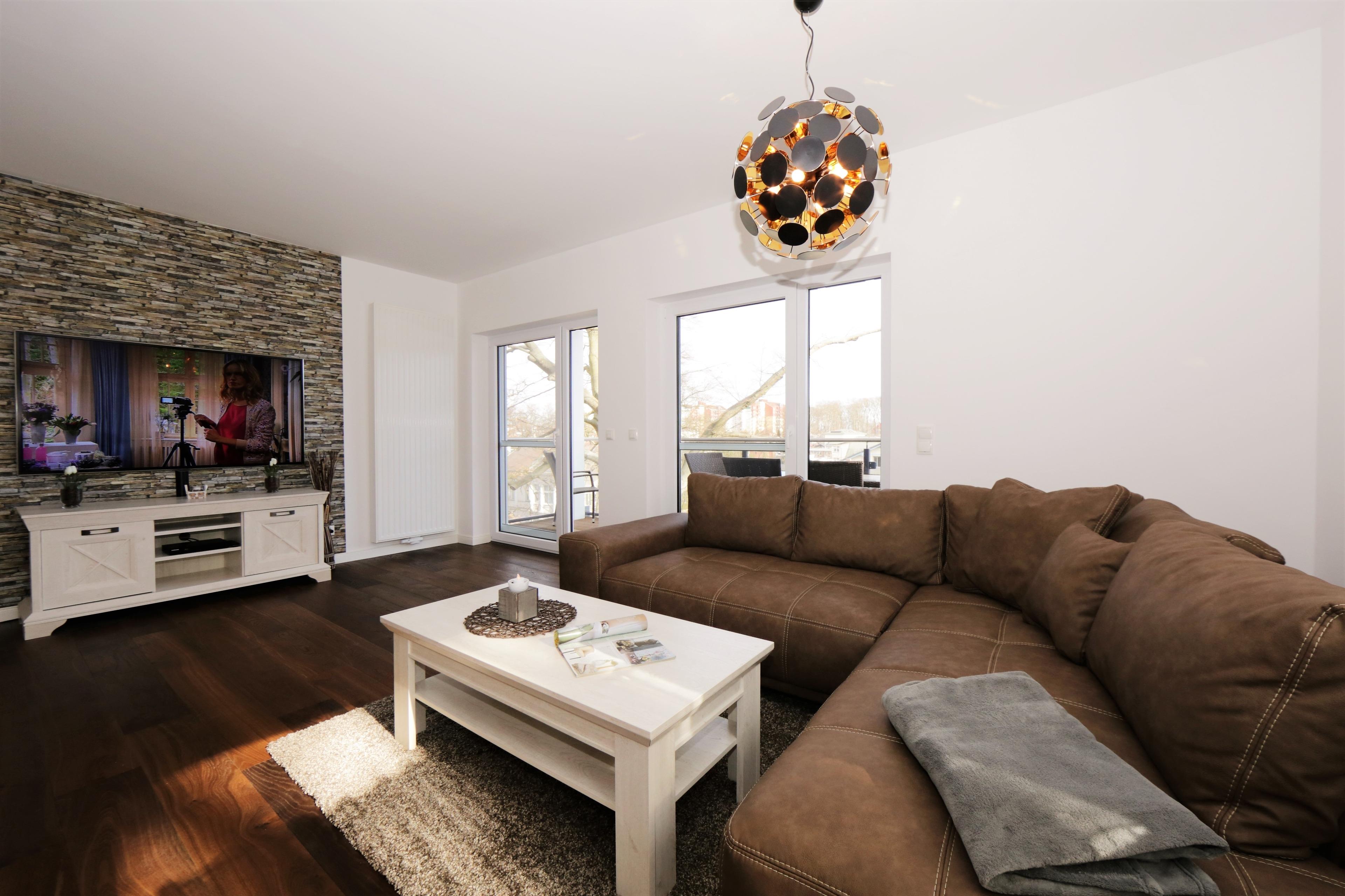 Dieses hochwertige und moderne 90 qm große 3-Zimmer Appartement im 2. Obergeschoss erreichen Sie über den Fahrstuhl. Die Wohnung ist für 4-6 Personen geeignet. Der großzügige Wohnraum ist geschmackvoll eingerichtet und bietet den Gästen eine gemütliche Sitzgruppe mit Schlaffunktion und einen großen Flat TV zum Relaxen. Der Esstisch für 6 Personen ist ebenfalls im Wohnraum integriert und lädt zu gemeinsamen Mahlzeiten ein, die die Gäste in der offenen großzügigen Küche mit Cerankochfeld, Backofen, Geschirrspüler und Kühl-, Gefrierschrank zubereiten können. Der nordöstlich ausgerichtete Balkon mit herrlichem Blick auf das Seebad lockt die Gäste schon zum Frühstück ins Freie. Die beiden hellen Schlafzimmer sind jeweils mit einem komfortablen Doppelbett mit getrennten Matratzen (90 x 200) und einem Kleiderschrank eingerichtet. Das großzügige und moderne Badezimmer ist mit einer ebenerdigen Echtglasdusche und einem Waschtisch und WC ausgestattet. Im Hauswirtschaftsraum stehen Ihnen eine Waschmaschine und ein Waschtrockner zur Verfügung.