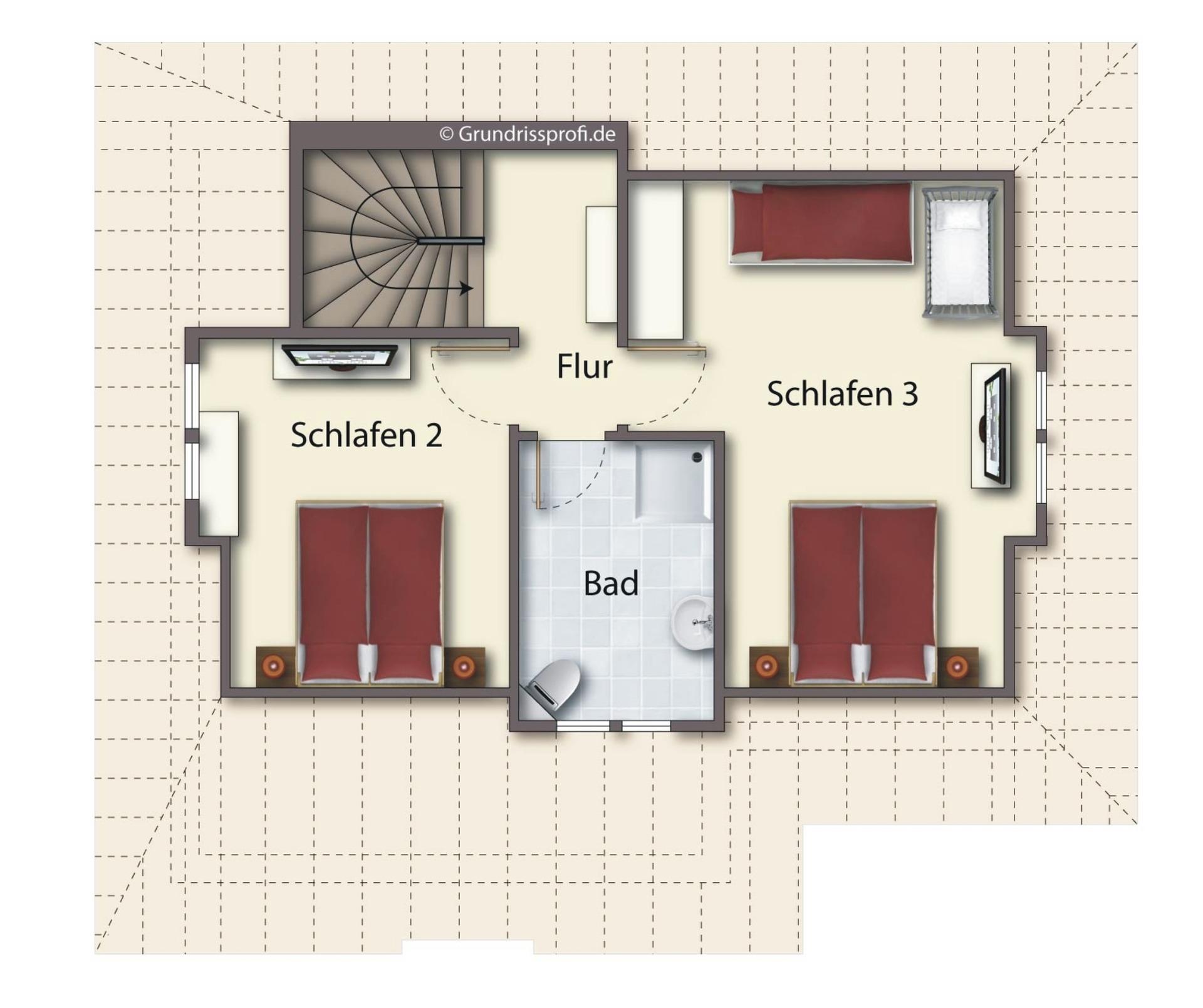Über das Treppenhaus gelangen Sie in das Obergeschoss des Hauses, wo sich zwei weitere Schlafzimmer befinden. Diese bieten ebenfalls viel Raum für Ruhe und Erholung, sowie Privatsphäre mit einen eigenen TV. Das größere der beiden Schlafzimmer ist mit einem Doppelbett ausgestattet, das über zwei getrennte Matratzen verfügt, um maximalen Schlafkomfort zu gewährleisten. Darüber hinaus stehen in diesem Zimmer ein zusätzliches Einzelbett sowie ein Kinderbett bereit, sodass hier bis zu vier Personen Platz finden – ideal für Familien oder kleine Gruppen.