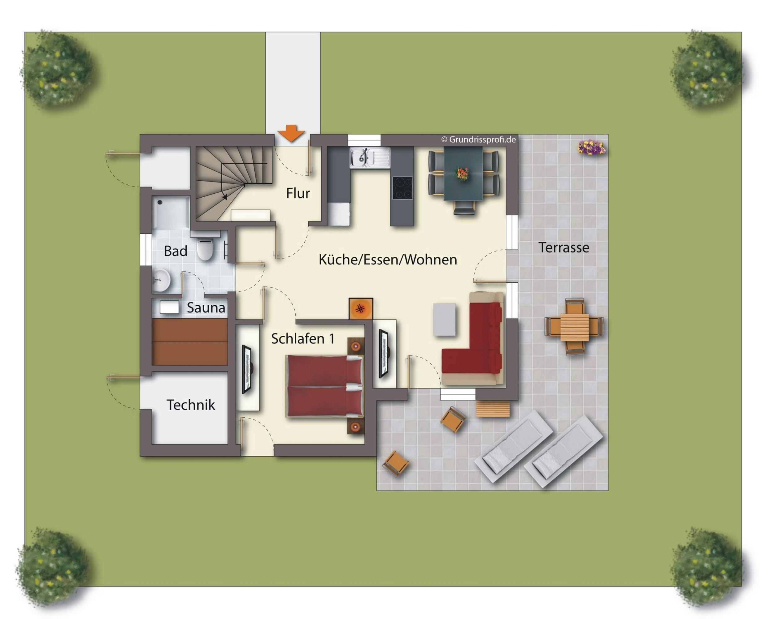 Ein weiteres Highlight des Erdgeschosses ist das moderne Duschbad, das direkt an das Schlafzimmer angrenzt. Es bietet nicht nur eine erfrischende Dusche, sondern beherbergt auch eine hochwertige Sauna. Diese lädt zu erholsamen Stunden ein, in denen Sie die wohltuende Wärme genießen und Körper sowie Geist entspannen können. Ein Saunagang nach einem Tag an der frischen Luft ist der perfekte Ausklang, um das Wohlbefinden zu steigern und den Urlaub so richtig zu genießen.