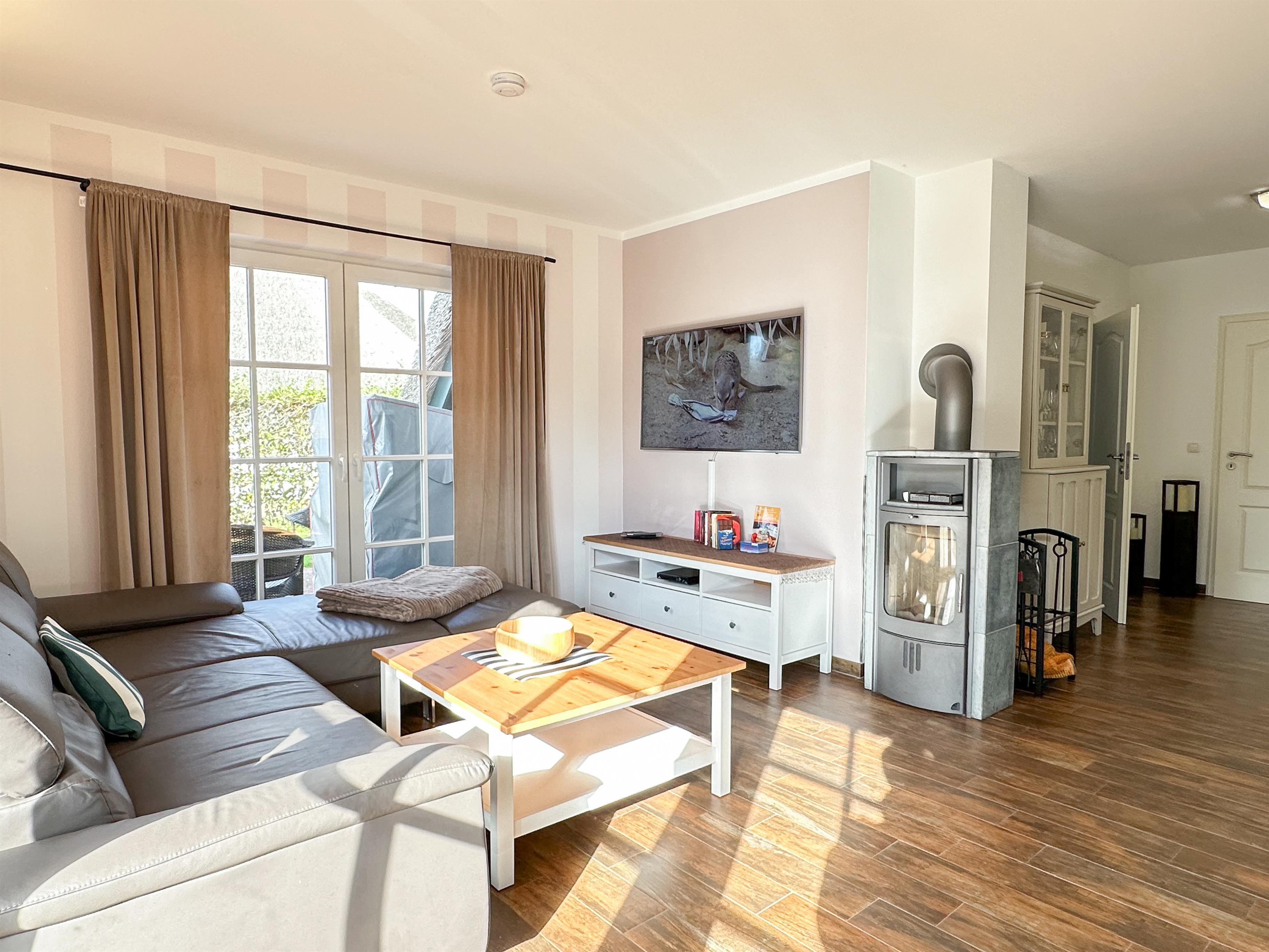 Das Fischers Hus ist ein wunderschönes Urlaubsdomizil für bis zu 7 Personen. Die 110 qm Wohnfläche verteilen sich über zwei Ebenen. Der lichtdurchflutete Wohnbereich stellt den Mittelpunkt des Hauses dar. Beim Betreten Wohnbereichs empfängt Sie sofort ein Gefühl der Entspannung. Die Ledergruppe bietet Platz, um nach einem ereignisreichen Tag gemütlich die Beine hochzulegen und zur Ruhe zu kommen. Hier können Sie gemeinsam mit Ihren Liebsten entspannen, ein gutes Buch lesen oder vor dem modernen Flat-TV den Abend ausklingen lassen. Für eine besonders behagliche Atmosphäre sorgt der Kaminofen, der nicht nur zusätzliche Wärme spendet, sondern auch das Ambiente mit seinem knisternden Feuer verzaubert. An kühleren Tagen bietet er den perfekten Ort, um sich mit einer heißen Tasse Tee oder einem Glas Wein zurückzulehnen und die wohlige Gemütlichkeit zu genießen.