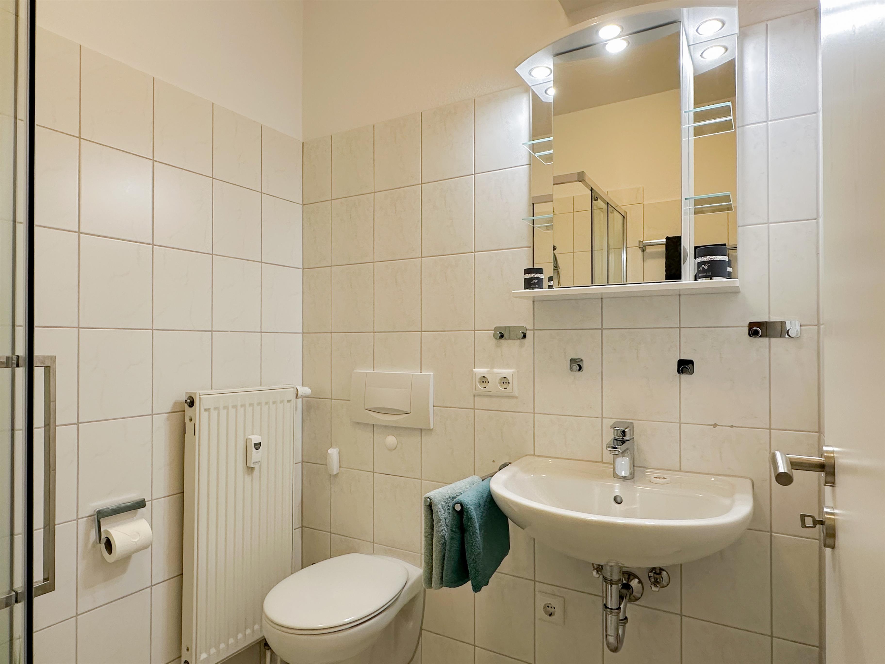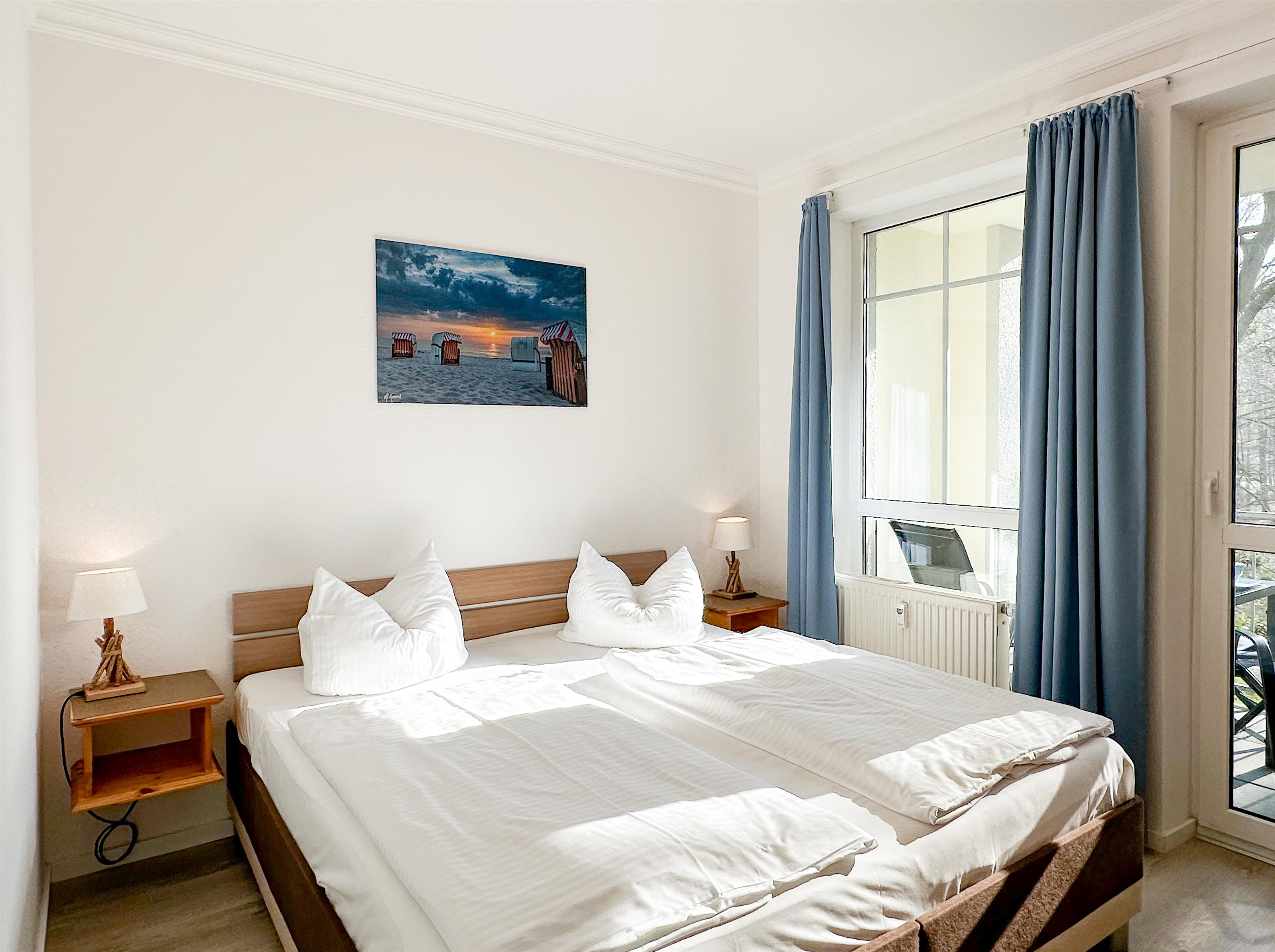 Dieses 45 qm große gemütliche 2-Zimmer-Appartement für 2-3 Personen befindet sich im Erdgeschoss und bietet Ihnen einen schönen Blick in den Buchenpark von Heringsdorf. Im Wohnraum steht den Gästen ein Sofa (mit Schlaffunktion Liegefläche 140 x 200) und zwei Sessel sowie ein Essplatz für gemeinsame Mahlzeiten zur Verfügung. TV und Radio/CD sind selbstverständlich. Die im Wohnraum offen integrierte Einbauküche mit Fenster verfügt über ein Cerankochfeld, Geschirrspüler, Kühlschrank mit Gefrierfach, Backofen etc. Das Schlafzimmer ist mit einem Doppelbett mit getrennten Matratzen (90 x 200) und ausreichend Schrankraum ausgestattet. Für einen erholsamen Schlaf lassen sich die Fenster im Schlaf- und Wohnbereich verdunkeln. Den geschützten Balkon zum Süd-Westen können Sie über das Wohn- als auch das Schlafzimmer betreten. Hier kann der Blick durch den alten Baumbestand bis über den Teich schweifen. Genießen Sie die ruhige Atmosphäre auf der Rückseite der Delbrückstraße. Das innenliegende Bad ist mit einer Dusche und Waschbecken/WC ausgestattet. Ein Pkw-Stellplatz befindet sich auf dem Nachbargrundstück. Zum Be- und Entladen steht ein Platz vor dem Haus zur Verfügung. Fahrräder können im Fahrradkeller abgestellt oder im überdachten Fahrradständer angeschlossen werden.
