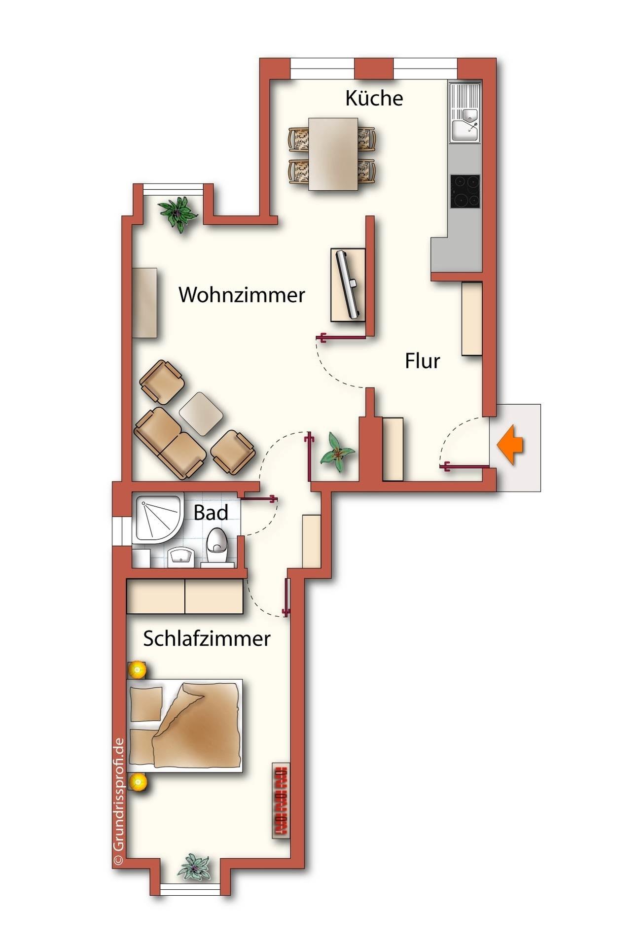 Dieses 51 qm große 2 Zimmer Appartment lädt mit seinem Midcentury Mobiliar und Meeresblick im Schlafzimmer zum Verweilen ein. Im Wohnzimmer lädt eine gemütliche Couch mit Sessel zum Entspannen und Fernsehen ein. Die Mahlzeiten können die Gäste an einen großzügigen Tisch im Küchenbereich einnehmen. Die Küchenzeile mit Geschirrspüler, Backofen mit integrierter Mikrowelle p.p ist offen im Wohnbereich integriert. Das Schlafzimmer verfügt über ein Doppelbett mit getrennten Matratzen (90x200), einen Schrank und einem zarten Schreibtisch zum Nachsinnen. Vom Schlafzimmer aus können sie die Ostsee sehen. Das kleine Bad verfügt über Dusche, Waschbecken und WC. Ein Flat-TV ist selbstverständlich. Waschmaschine und Trockner sind im Haus vorhanden. Ein Pkw-Stellplatz befindet sich auf dem Grundstück und ist der Wohnung zugeordnet.
