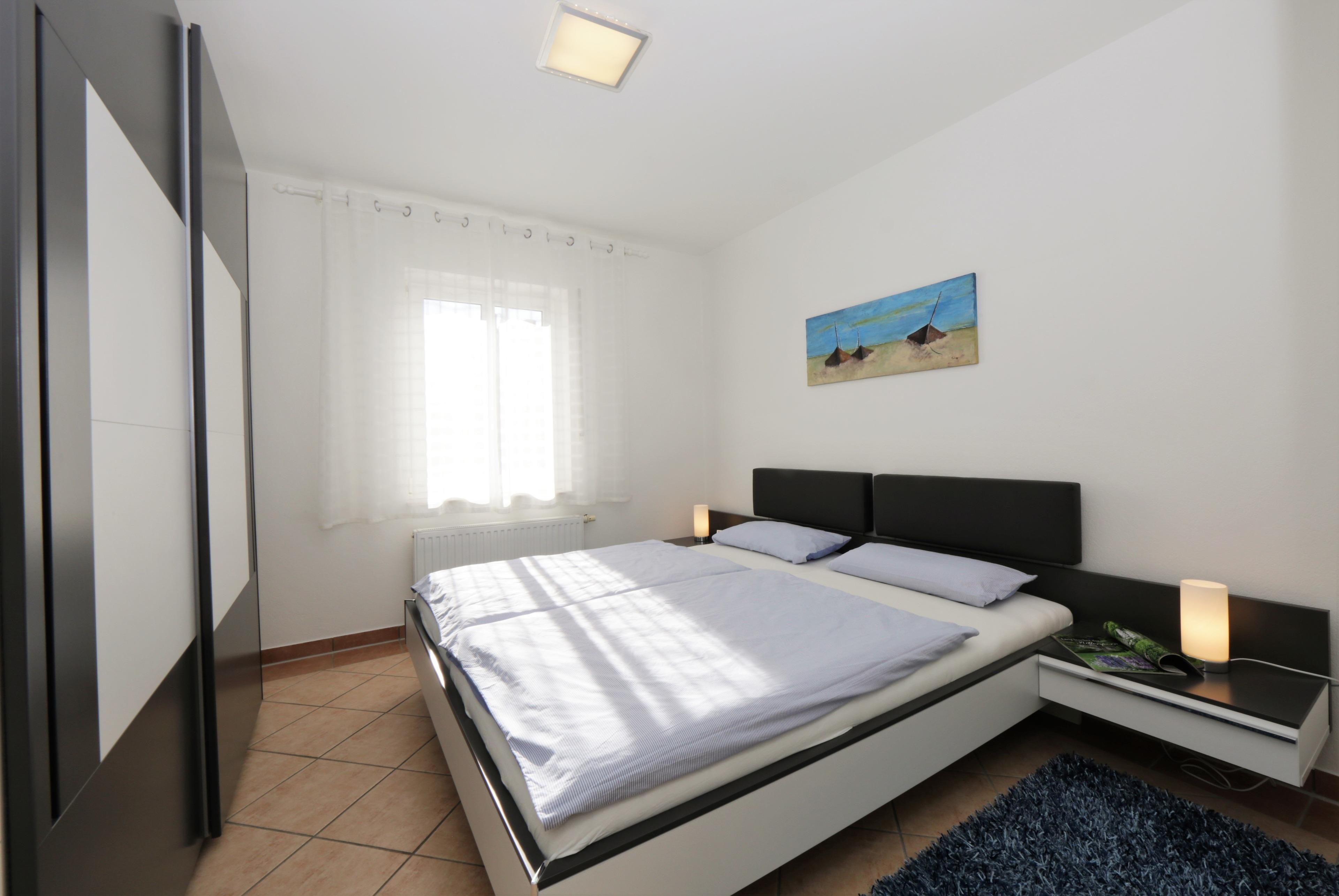 Dieses 65 qm große und modern eingerichtete 3-Zimmer-Appartement liegt im 1. Obergeschoss und verfügt über einen Balkon in nordöstlicher Ausrichtung. Jahreszeitlich bedingt können Sie von hier aus einen Blick auf die Ostsee erhaschen. Der helle Wohnraum ist mit einer bequemen Ledergarnitur und einem separaten Essplatz für 4 Personen eingerichtet. Flat TV und Radio/CD sind selbstverständlich. Die Küchenzeile incl. Kühlschrank mit Gefrierfach, Geschirrspüler, Cerankochfeld, Backofen und Mikrowelle ist offen im Wohnbereich integriert. Das größere Schlafzimmer ist mit einem Doppelbett mit getrennten Matratzen (90 x 200) und einem Kleiderschrank eingerichtet, das kleinere mit zwei Einzelbetten (90 x 200), Kleiderschrank und einem zusätzlichen Flat-TV. Im Tageslichtbad steht den Gästen sowohl Badewanne als auch Dusche und Waschbecken/WC zur Verfügung. Ein Pkw- Stellplatz befindet sich auf dem Grundstück und ist der Wohnung zugeordnet. Im Keller befinden sich Waschmaschine/Trockner und ein Keller zum Abstellen der Fahrräder (steile Wendeltreppe).