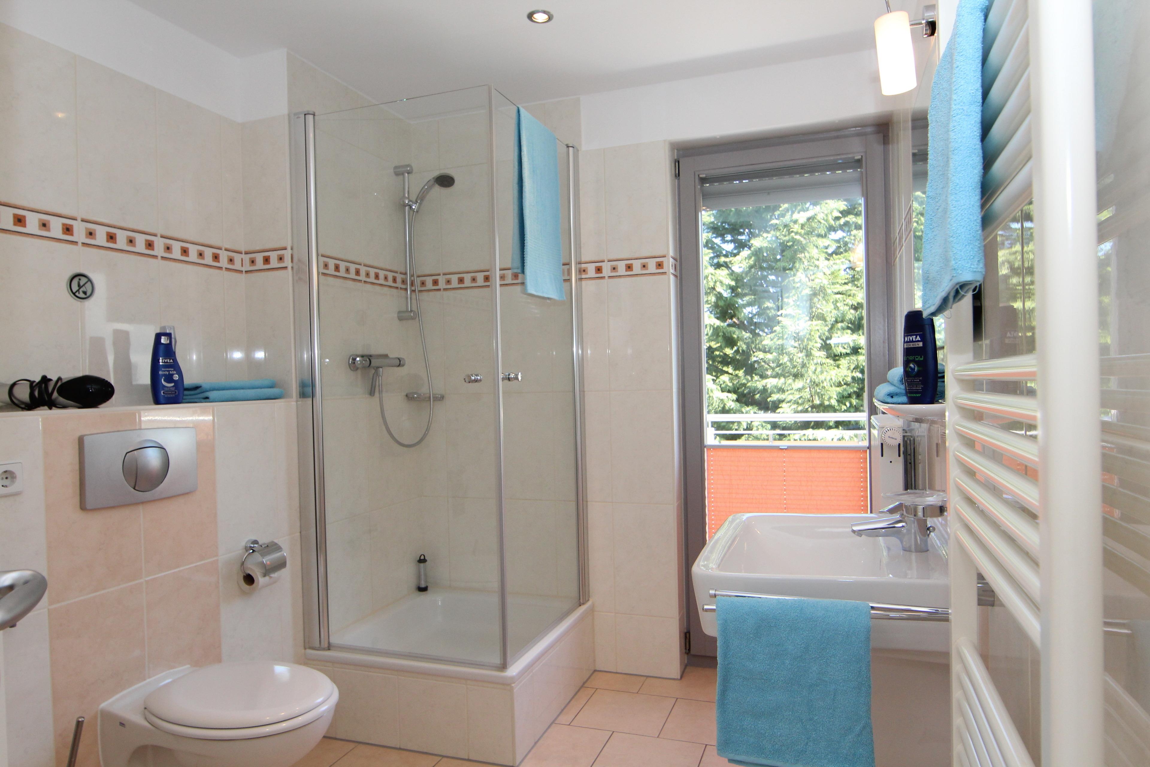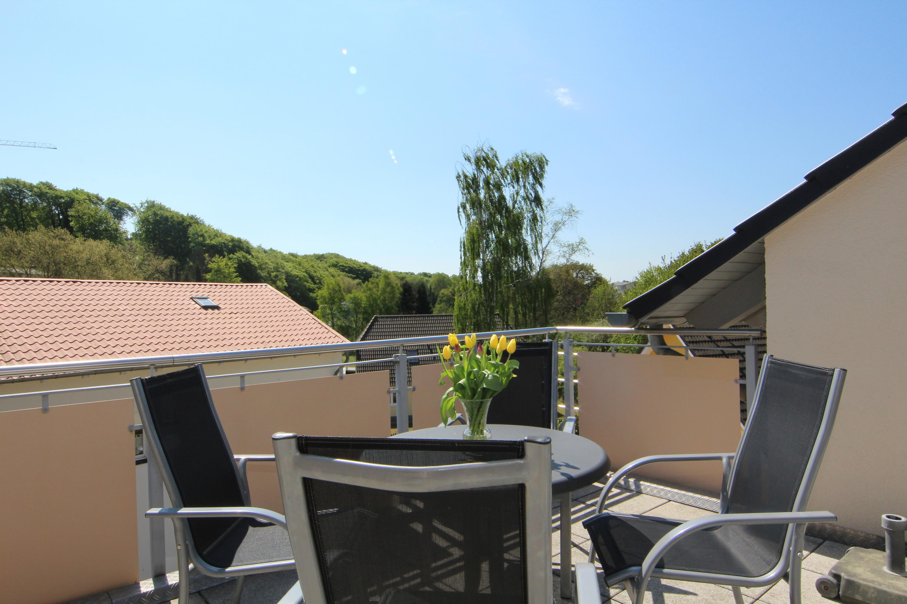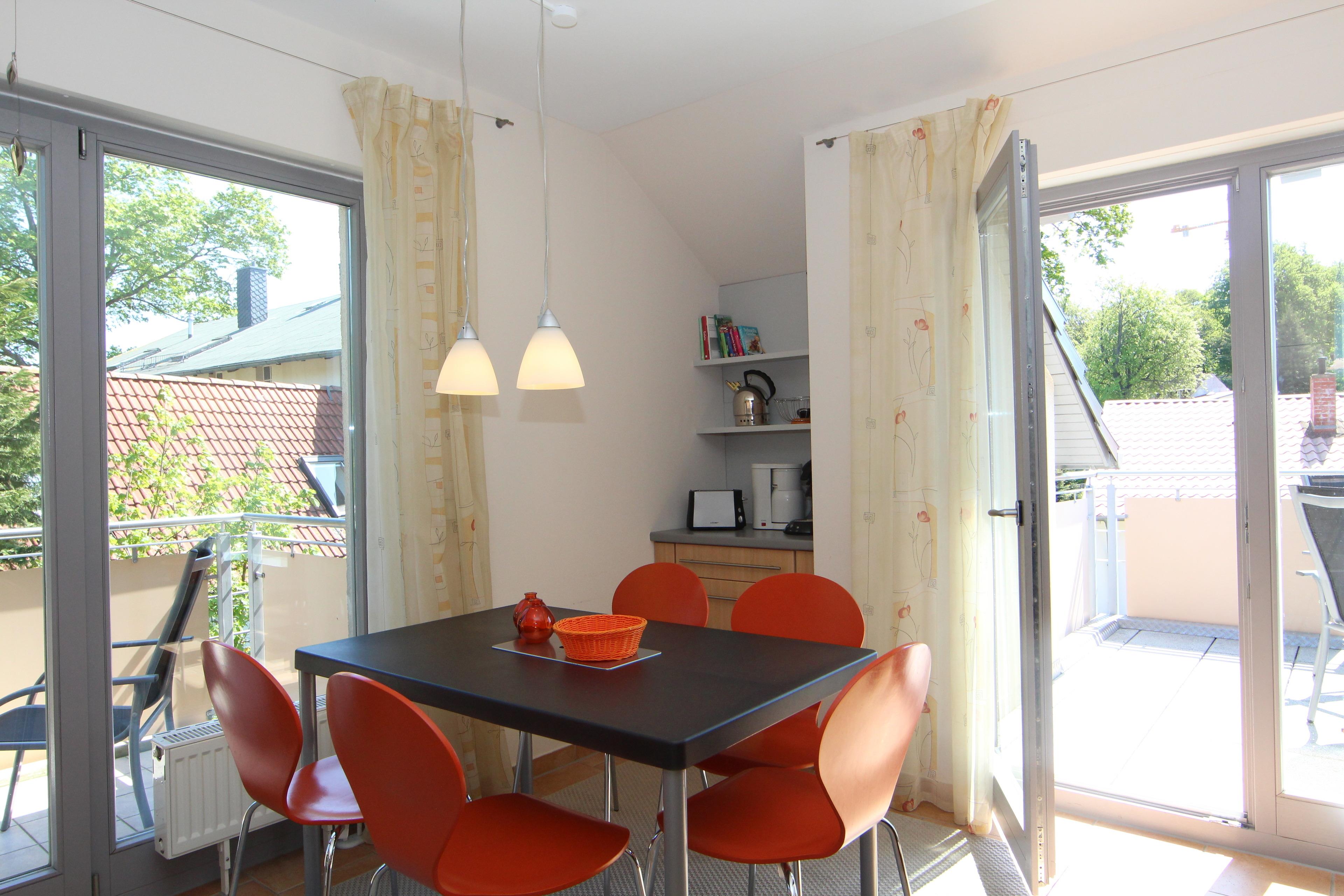 Diese 70 qm große und modern eingerichtete 3-Zimmer Maisonette verspricht 2 bis max. 4 Gästen einen erholsamen Urlaub. Auf der unteren Ebene steht Ihnen ein heller großzügiger Wohnraum zur Verfügung, der mit einer modernen Sitzgarnitur eingerichtet ist. Flat-TV, Radio/CD sowie DVD sind hier selbstverständlich. Ebenfalls im Wohnbereich integriert sind eine Vollküche incl. Spülmaschine, Backofen, Ceranfeld, Mikrowelle, Kühlschrank etc. und ein Essplatz für 5 Personen. An diesen Bereich grenzt ein Balkon zum Osten. Das Highlight jedoch ist die südlich ausgerichtete Dachterrasse, die viel Sonnenschein verspricht. Auf der oberen Ebene finden die Gäste zwei Schlafzimmer. Ein Schlafzimmer ist mit einem Doppelbett mit getrennten Matratzen (90 x 200) und ausreichend Schrankraum eingerichtet. Das zweite Schlafzimmer ist ein Durchgangszimmer und mit zwei Einzelbetten eingerichtet. Auf beiden Wohnebenen steht ein Bad mit Dusche bzw. Badewanne und Waschbecken/WC zur Nutzung bereit. Auf dem abgeschlossenen Grundstück steht ein Parkplatz zur Verfügung, der der Wohnung zugeordnet ist.