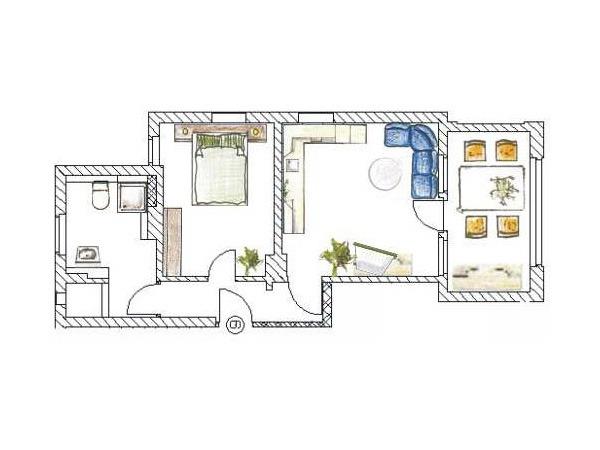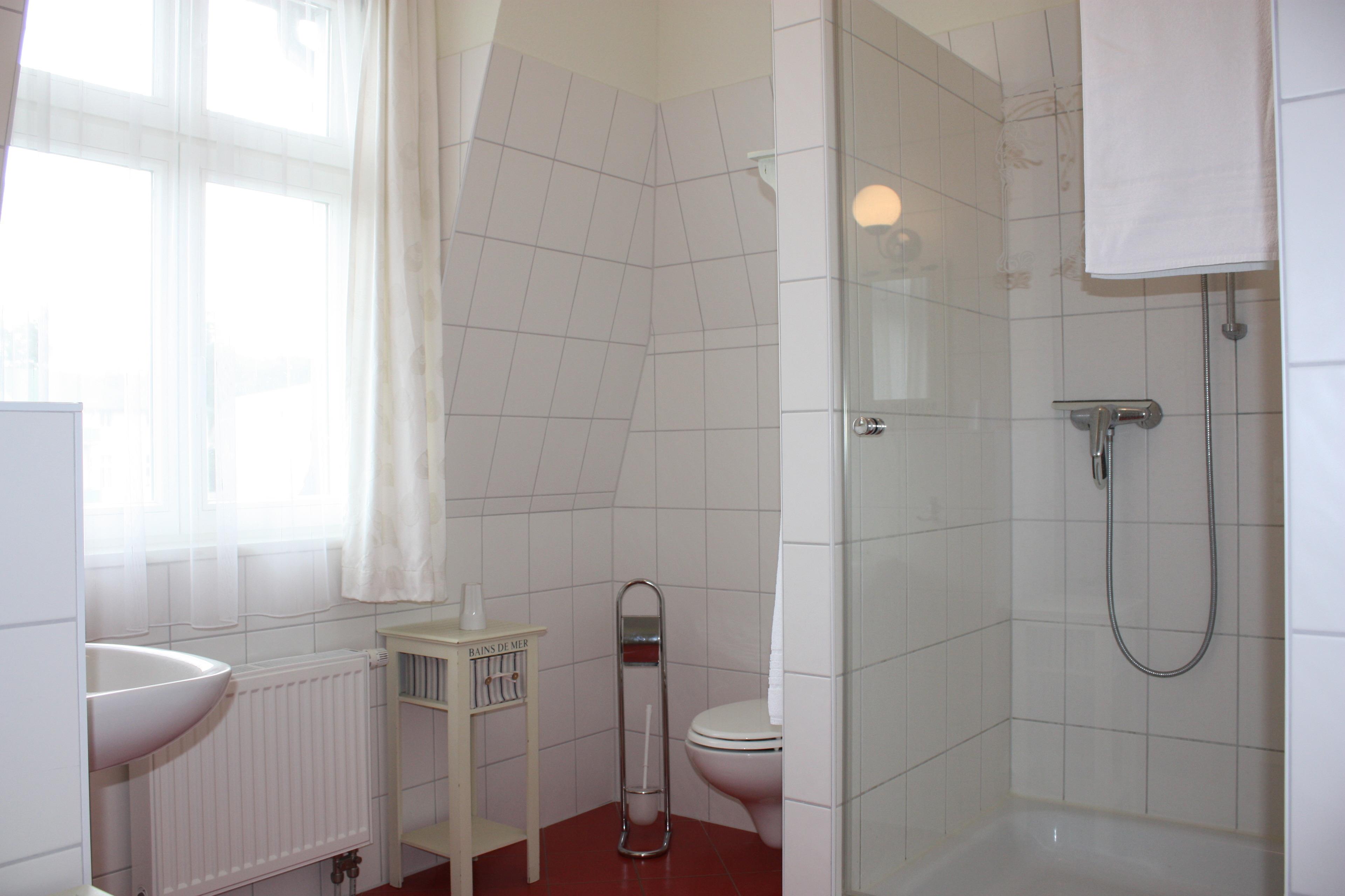 Dieses ca. 60 qm große 2-Zimmer-Appartement liegt im 2. Ober- bzw. Dachgeschoss und ist für 2-4 Personen geeignet. Im gemütlichen Wohnraum finden die Gäste eine Sitzgarnitur mit Flat-TV sowie die offene Vollküche inclusive Geschirrspüler, Cerankochfeld, Kühlschrank, Mikrowelle etc. An dem großen Esstisch in der geräumigen lichtdurchfluteten, geschlossenen Loggia (Fenster lassen sich öffnen), die zum Süden gerichtet ist, können die Mahlzeiten eingenommen werden. Das Schlafzimmer ist mit einem Doppelbett mit getrennten Matratzen (90 x 200) und reichlich Schrankraum ausgestattet. Im Badezimmer mit Fenster stehen Dusche, Waschbecken/WC zur Verfügung.