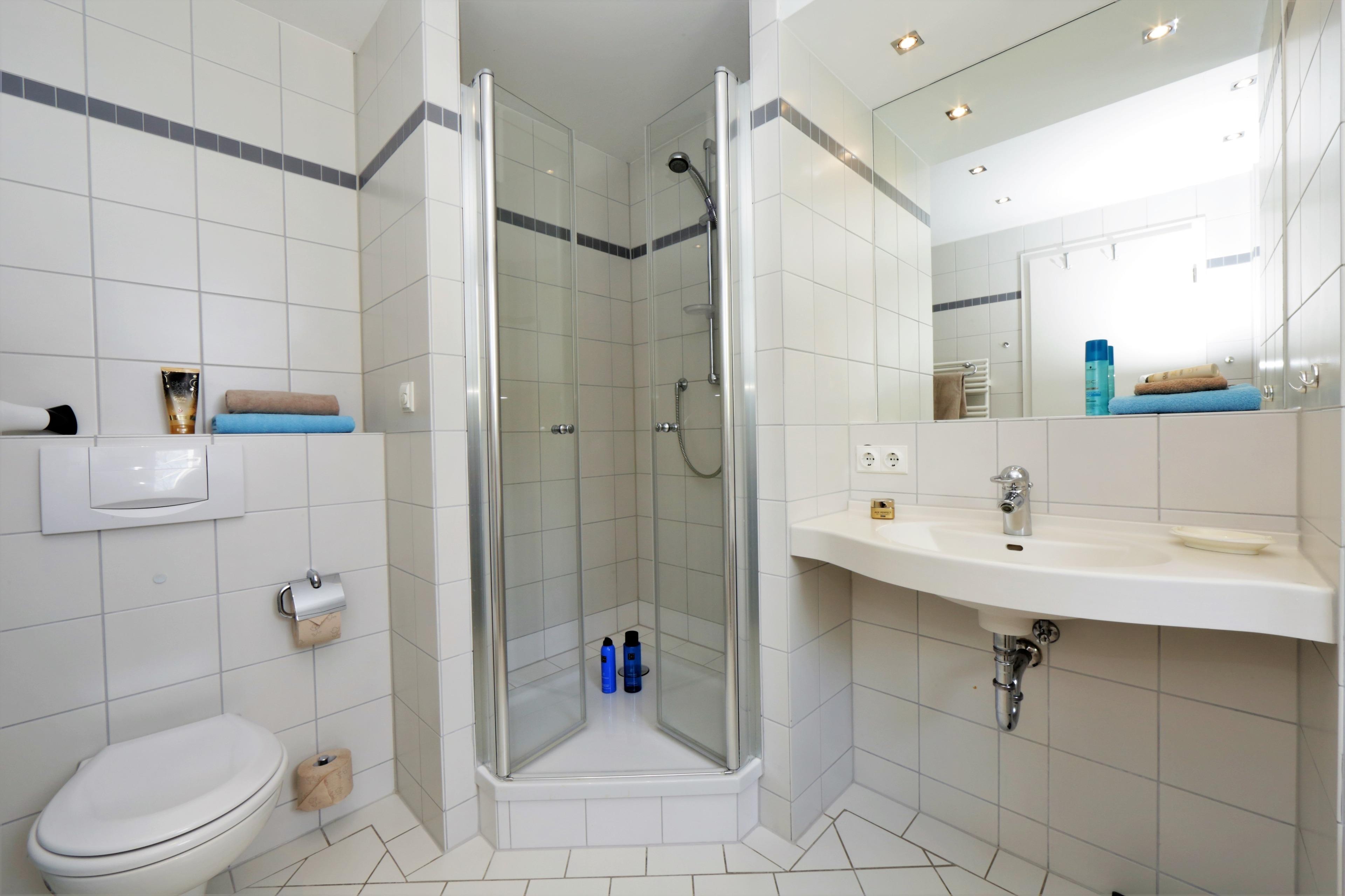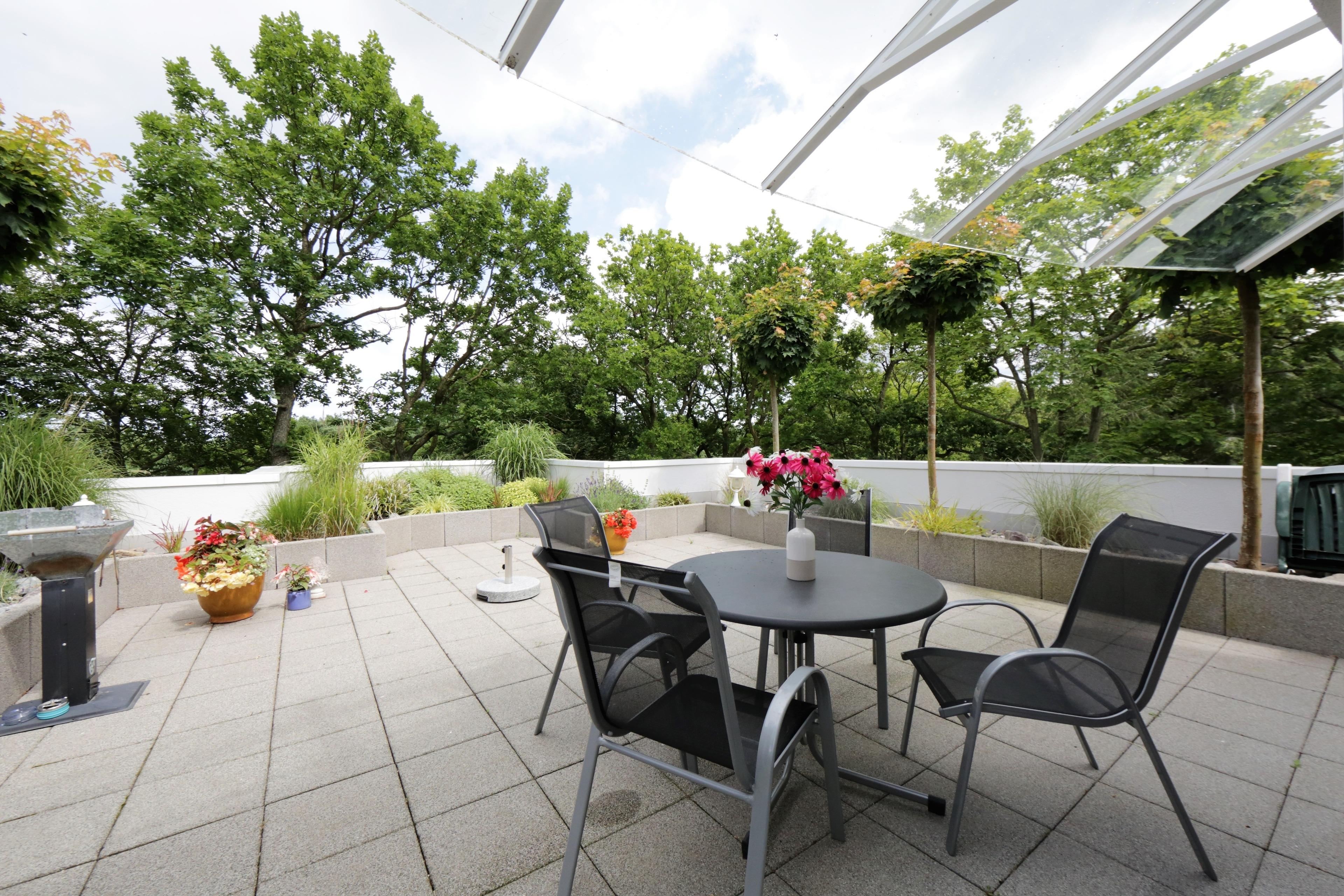 Dieses außergewöhnliche Appartement besticht nicht nur durch seine 1A Lage, sondern auch durch seine geschmackvolle und hochwertige Ausstattung. Erreichen können Sie dieses 111 qm große 3-Zimmer Appartement in der 3. Etage über einen Fahrstuhl. Sie betreten die Wohnung über einen kleinen Vorraum mit Garderobe und können durch die Glastür bereits den großzügigen Wohnbereich einsehen. Im Wohnraum erwartet Sie eine opulente Leder-Sitzgarnitur, Flat-TV und Radio/CD. Die große CD-Sammlung ist breit gefächert. Im Erker desselben Raumes steht ein Esstisch für 4 Personen, der zu Mahlzeiten in gemütlicher Atmosphäre einlädt. Zubereiten können Sie die Mahlzeiten in der vom Wohnraum abgehenden, separaten Küche mit einem Fenster. Die moderne Vollküche verfügt über alle Annehmlichkeiten wie Backofen mit Induktionsfeld, Geschirrspüler, Kühlschrank, Mikrowelle etc. Das Highlight dieser Wohnung ist die ca. 40 qm große Dachterrasse zur Seeseite von der aus Sie die Ostsee erahnen können. Mit ihrer ganzjährigen Bepflanzung stellt die Terrasse eine kleine Oase dar. Der Größe der Terrasse ist es zu verdanken, dass sie trotz ihrer Ausrichtung lange von der Sonne verwöhnt werden. Lassen auch Sie sich verwöhnen! Diese Wohnung verfügt darüber hinaus über zwei geräumige Schlafzimmer, ausgestattet mit jeweils einem Doppelbett mit getrennten Matratzen (100 x 200) und reichlich Stauraum. Den Schlafzimmern ist jeweils ein Bad zugeordnet, das mit Dusche und Waschtisch/WC ausgestattet ist. Das größere Bad bietet zusätzlich eine Badewanne. Der gesamte Wohn- und Schlafbereich ist mit Echtholzparkett ausgelegt. Ein Stellplatz für Ihr Fahrzeug befindet sich auf dem Grundstück und ist der Wohnung zugeordnet. Waschmaschine, Trockner und Fahrradabstellraum finden Sie im Keller.